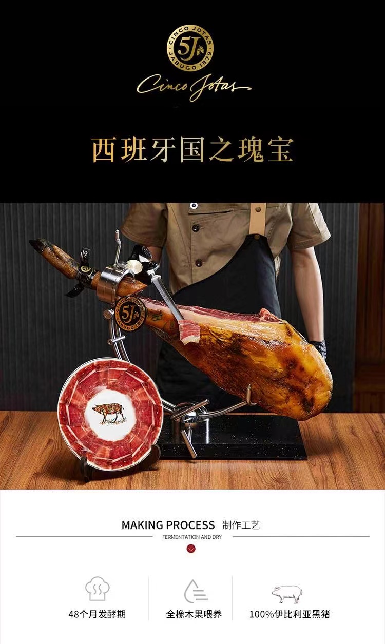 西班牙伊比利亚火腿 香肠 5J 小何塞 IB黑标至尊 48个月和60个月的黑橡果喂养 正关进口 |百里食