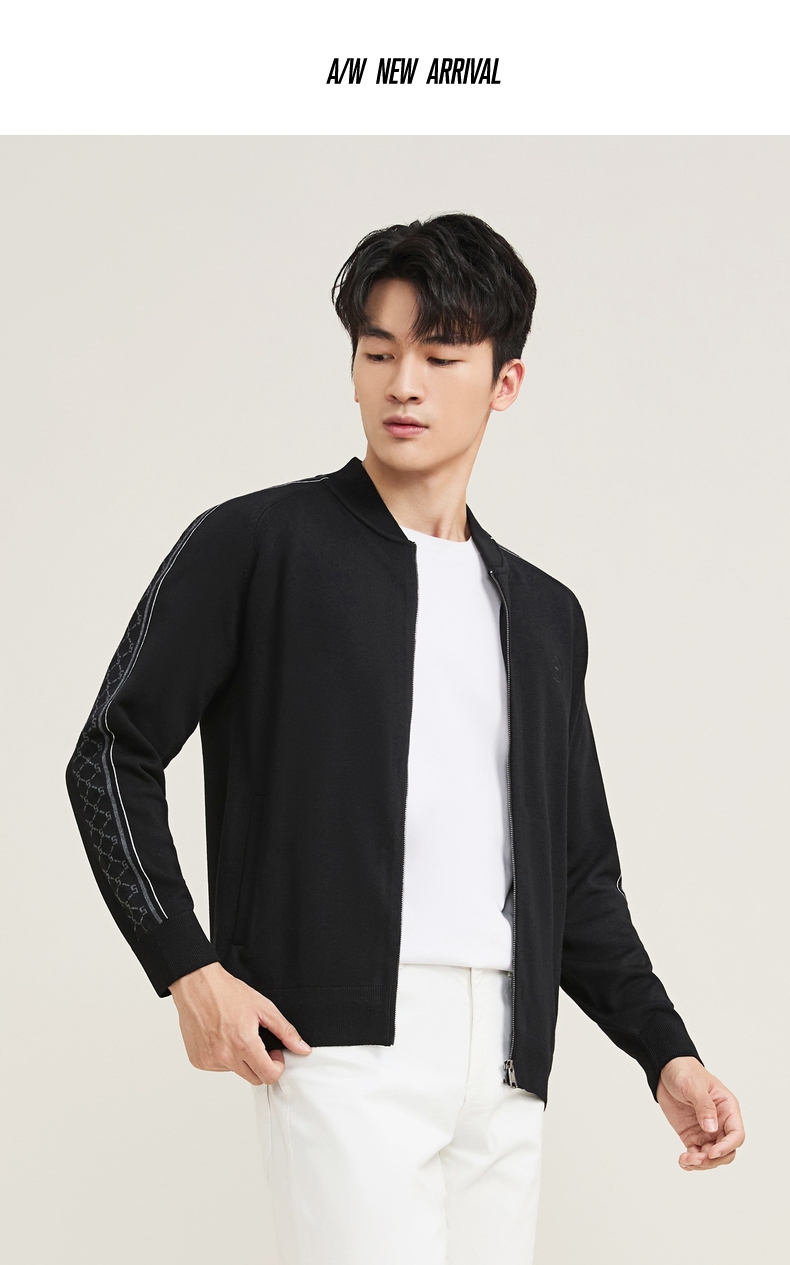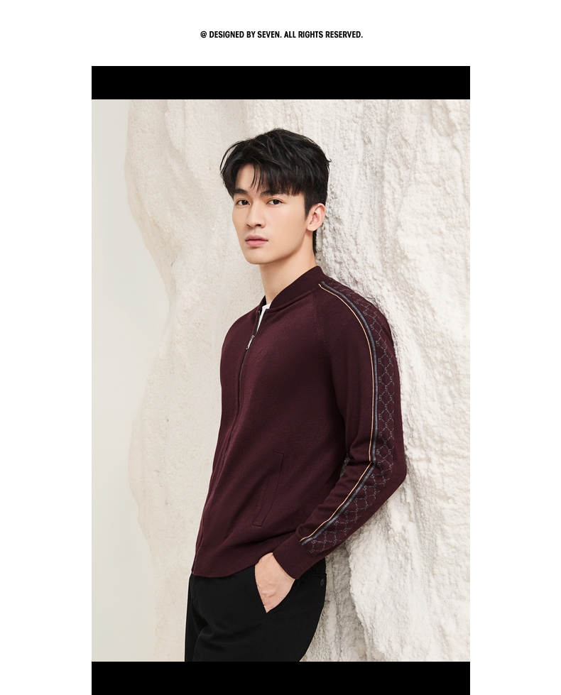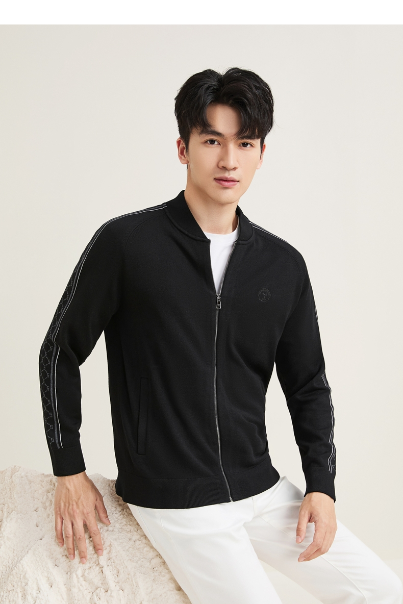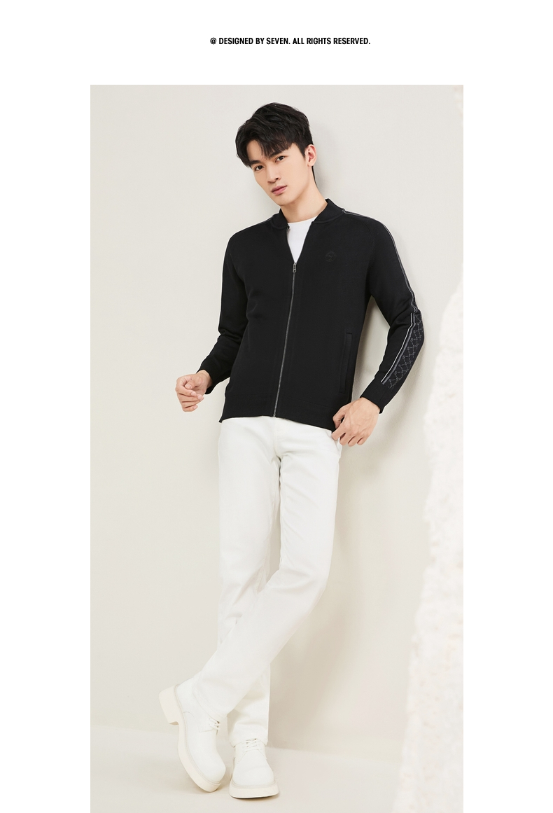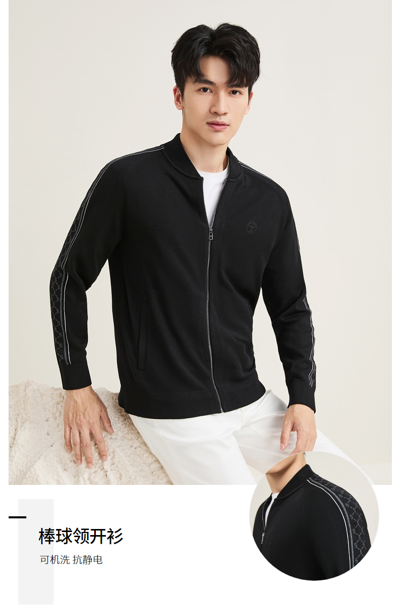 【可机洗/抗静电】柒牌男装弹力保暖2025秋季棒球领开衫针织衫129Y70080
