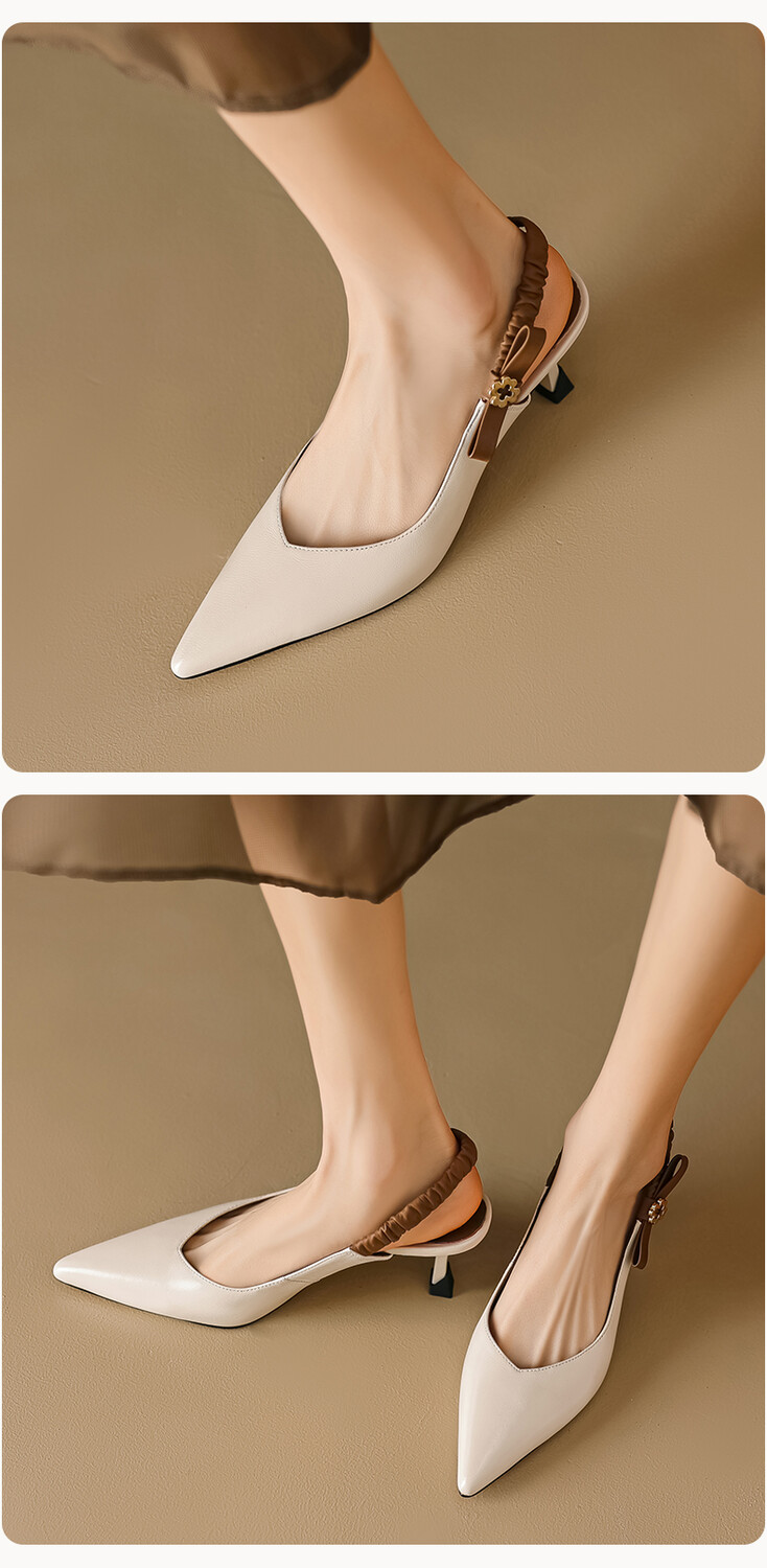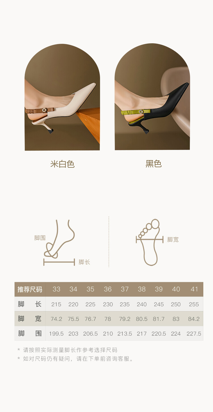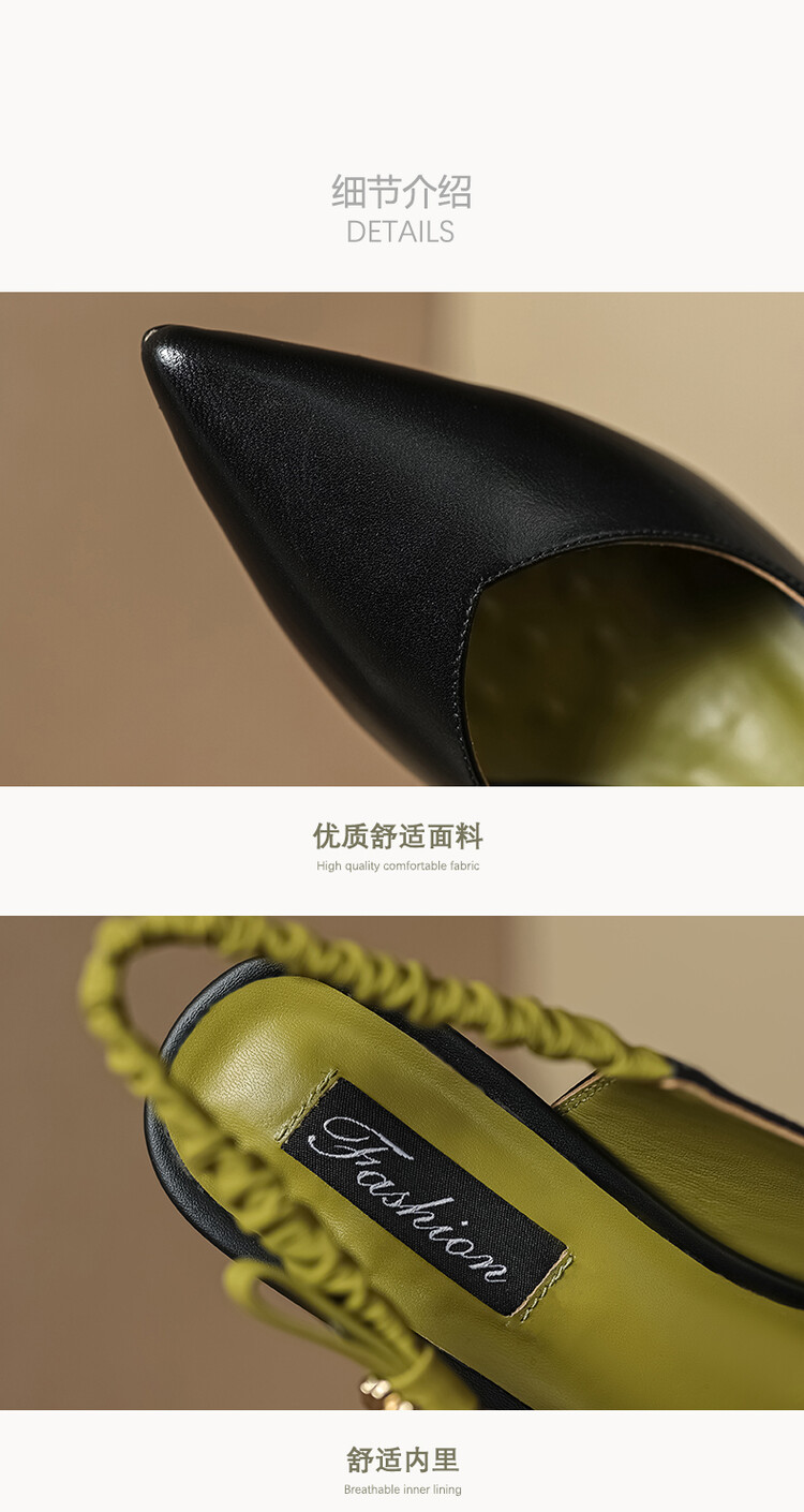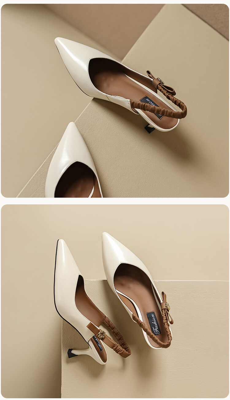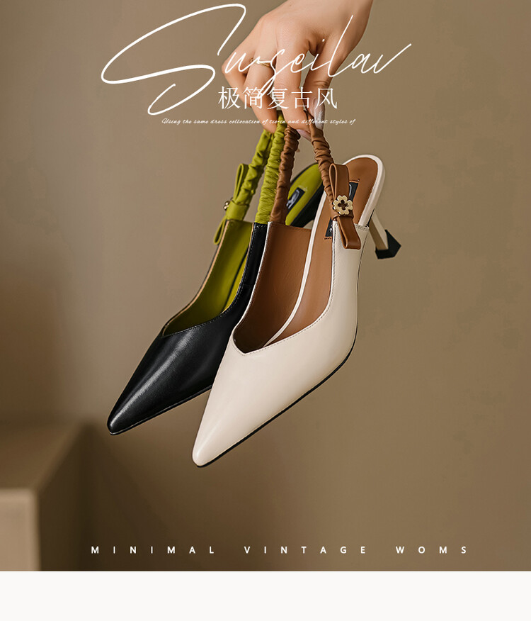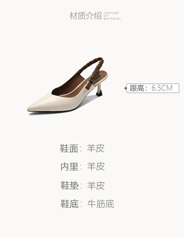 【预售5天】春夏季淑女复古法式尖头鞋细高跟包头凉鞋女米白色全皮真皮女鞋JL&AM8012