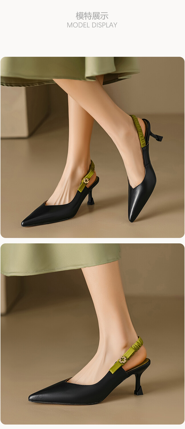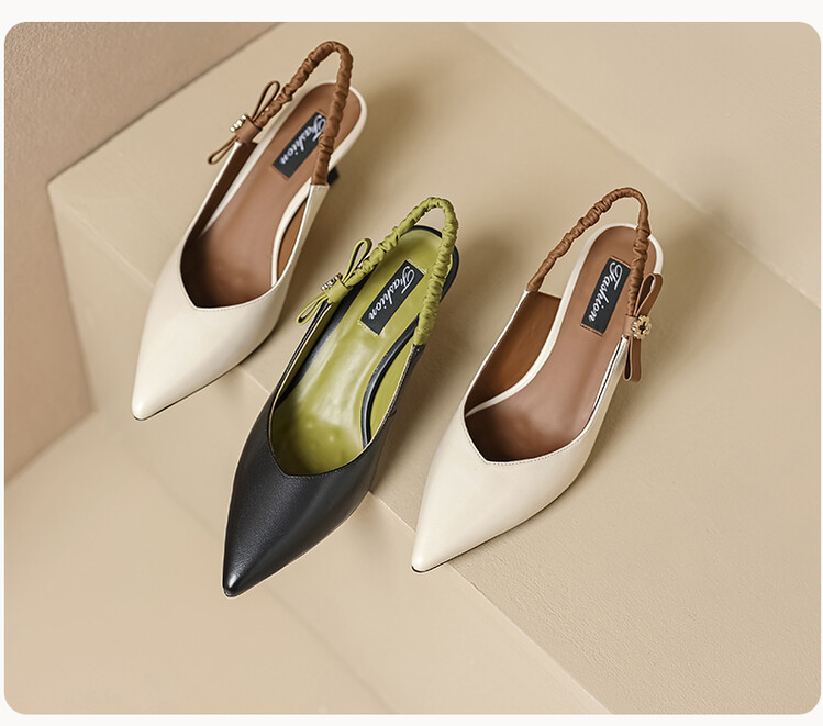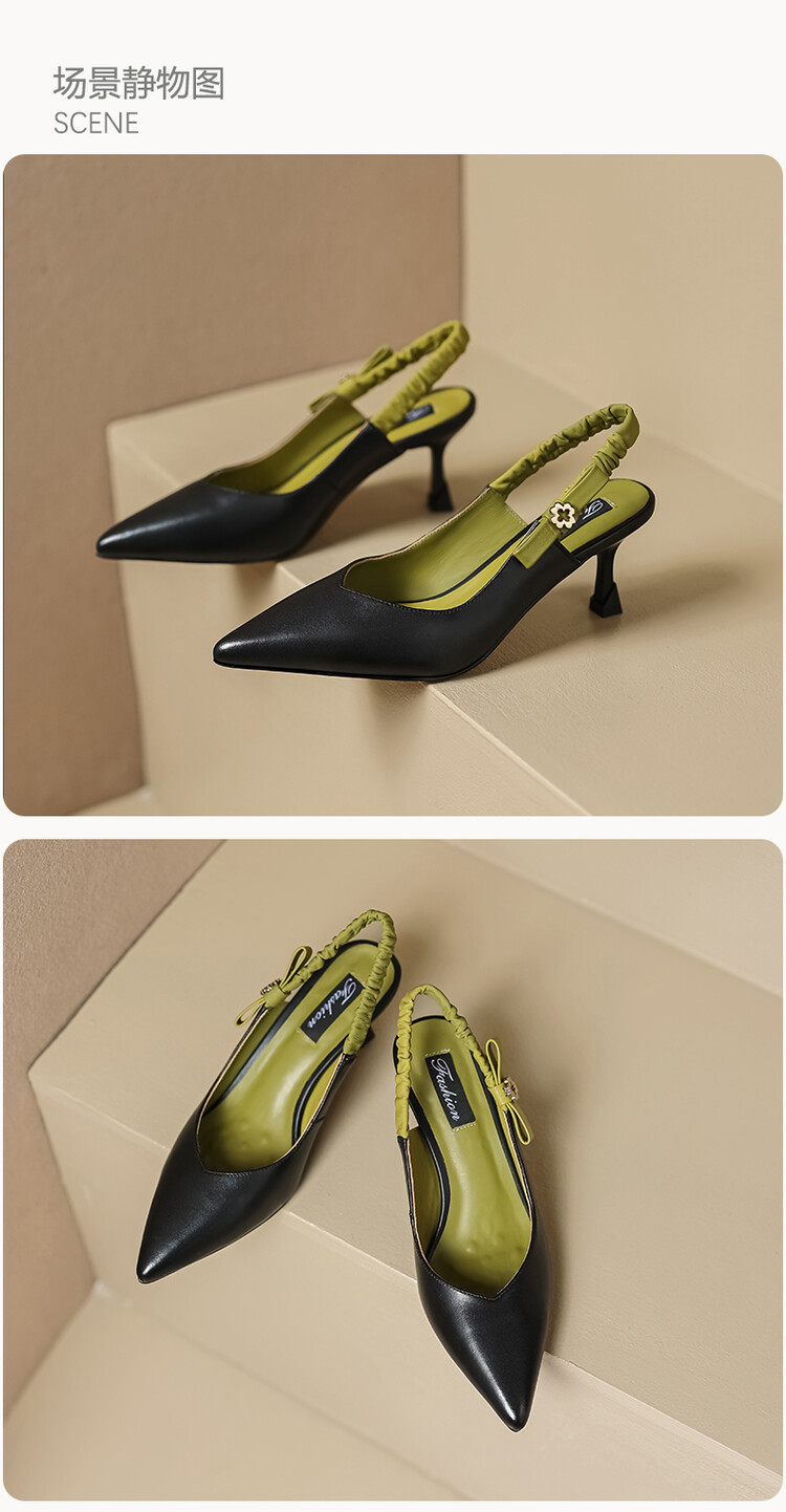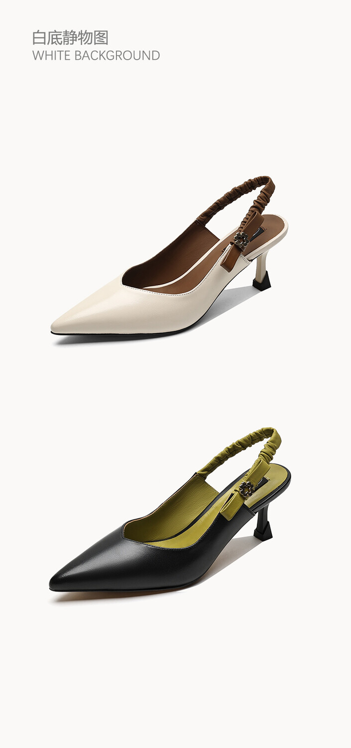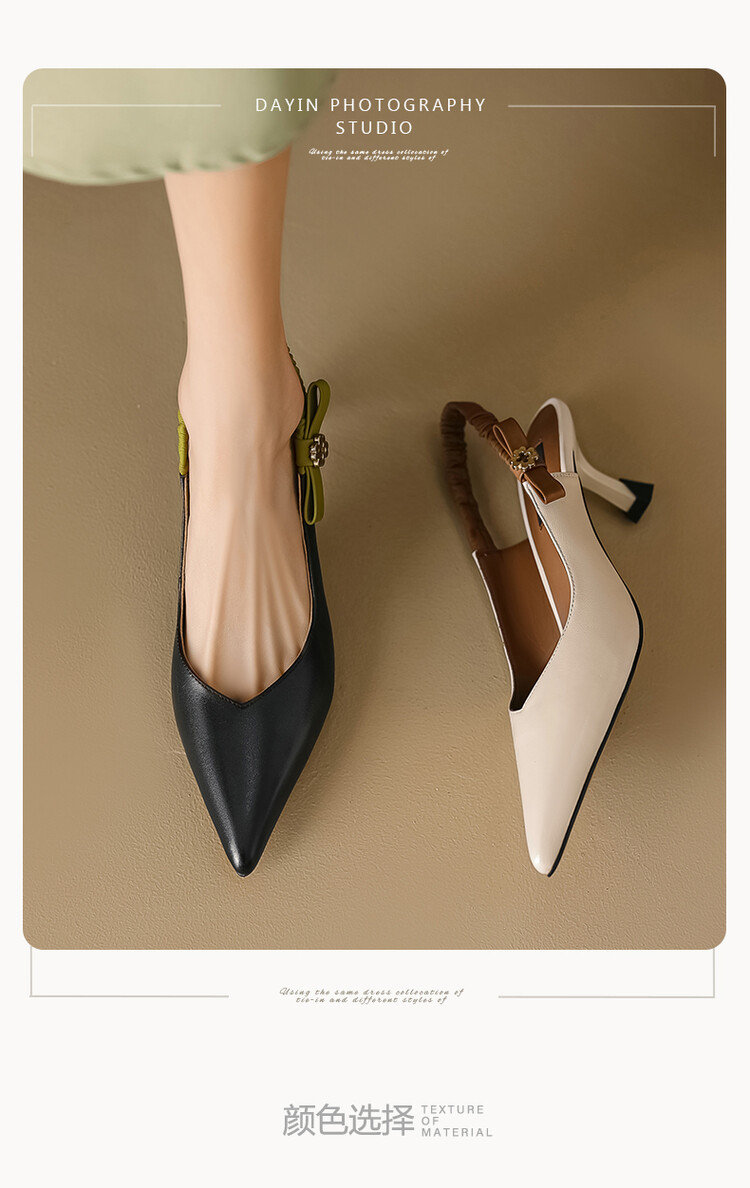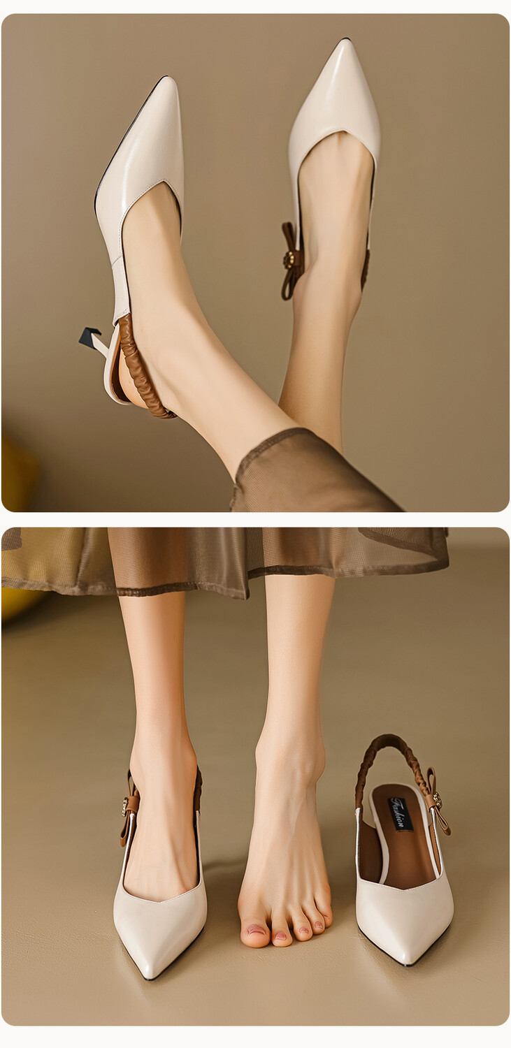 【预售5天】春夏季淑女复古法式尖头鞋细高跟包头凉鞋女米白色全皮真皮女鞋JL&AM8012