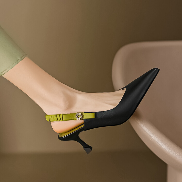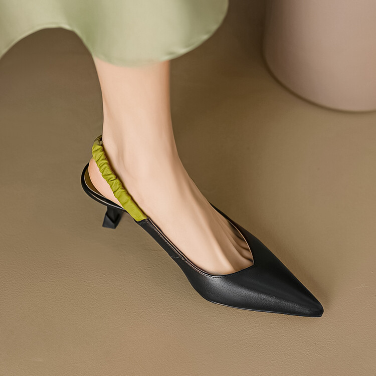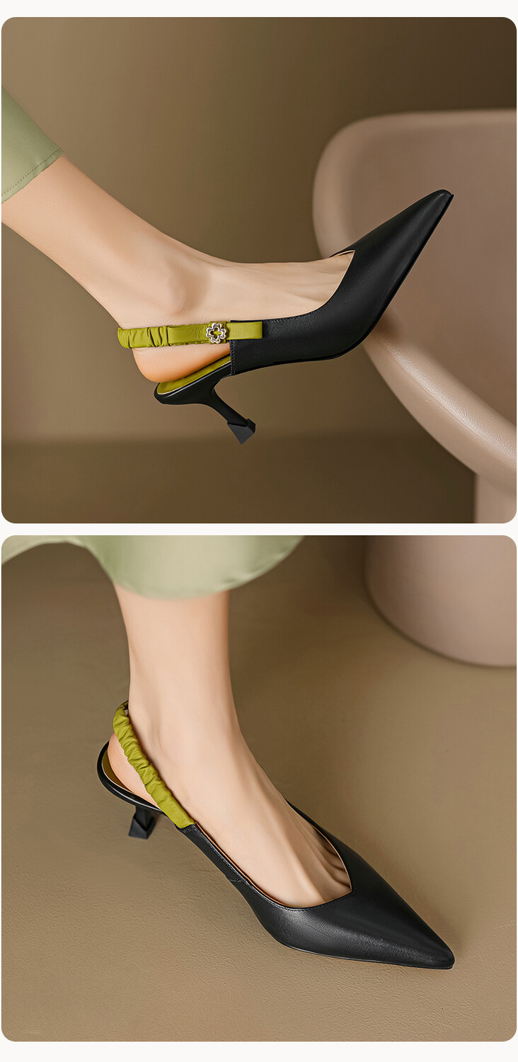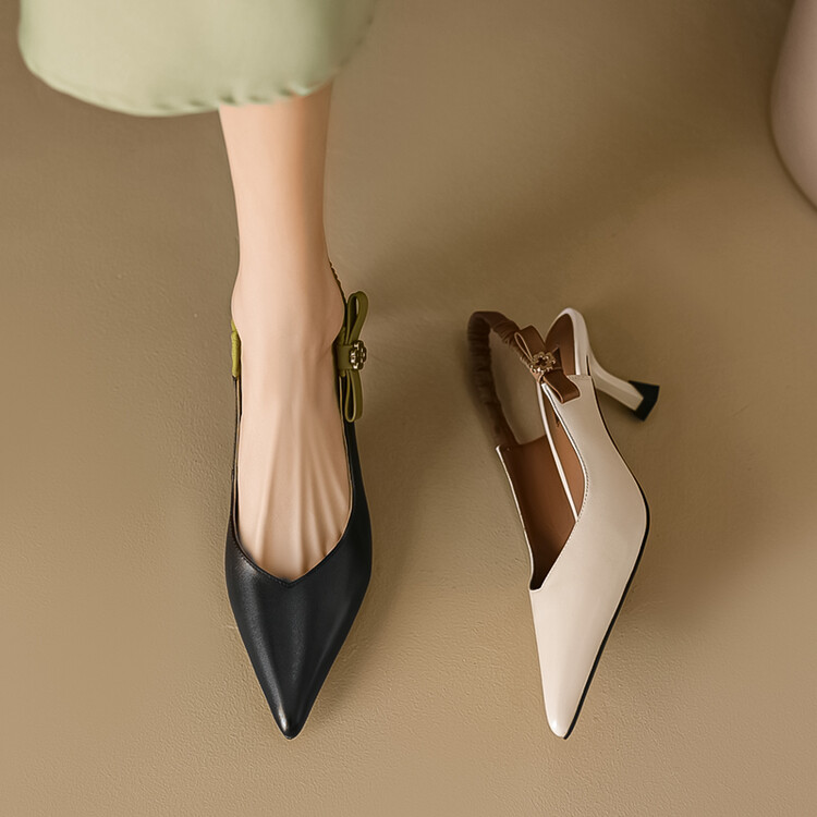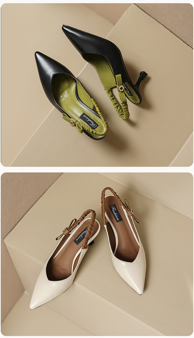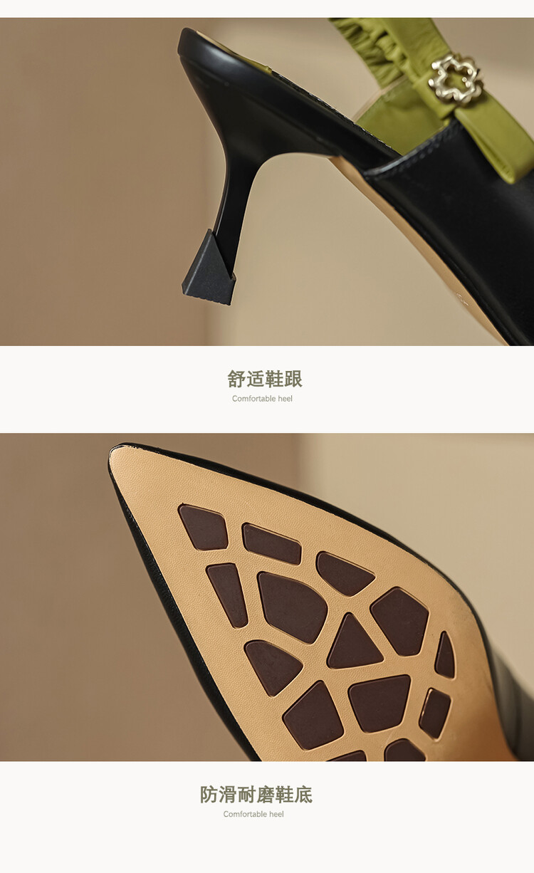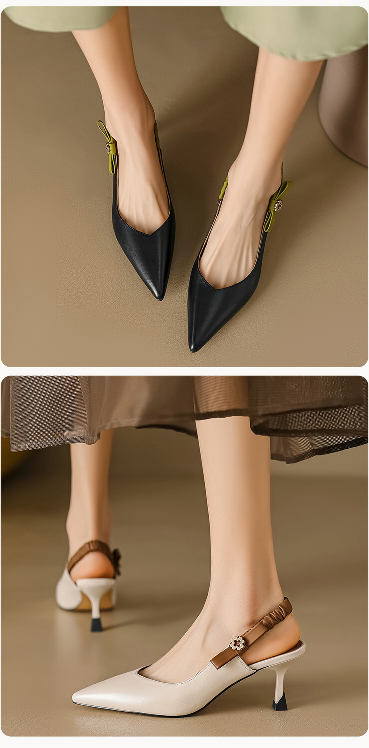 【预售5天】春夏季淑女复古法式尖头鞋细高跟包头凉鞋女米白色全皮真皮女鞋JL&AM8012