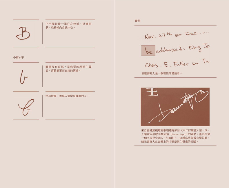 字母作為符號,本身承載理性定義,但其形狀、排列和書寫風格卻會影響人們的情感反應,反映人們的個性特質。某些筆跡代表為人保守,某些筆跡代表為人勇於創新。