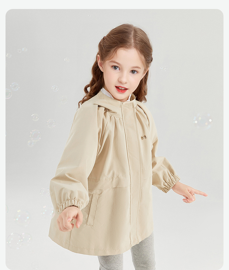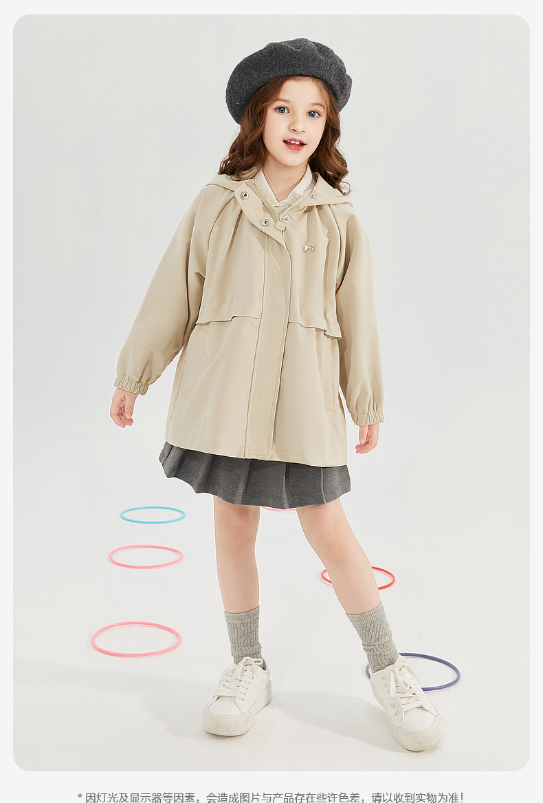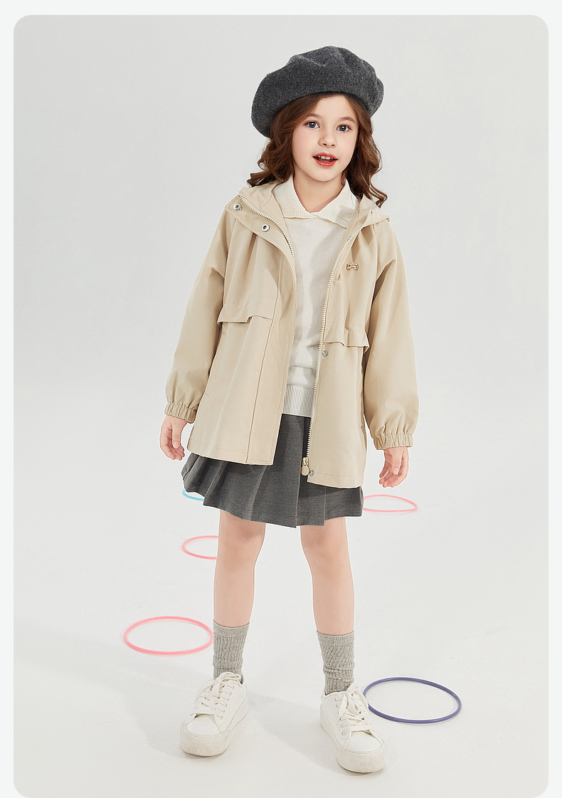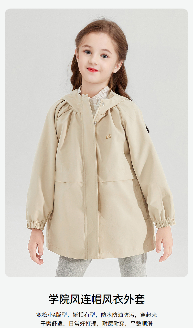 笛莎Deesha 童装女童外套2024秋季新款连帽风衣外套