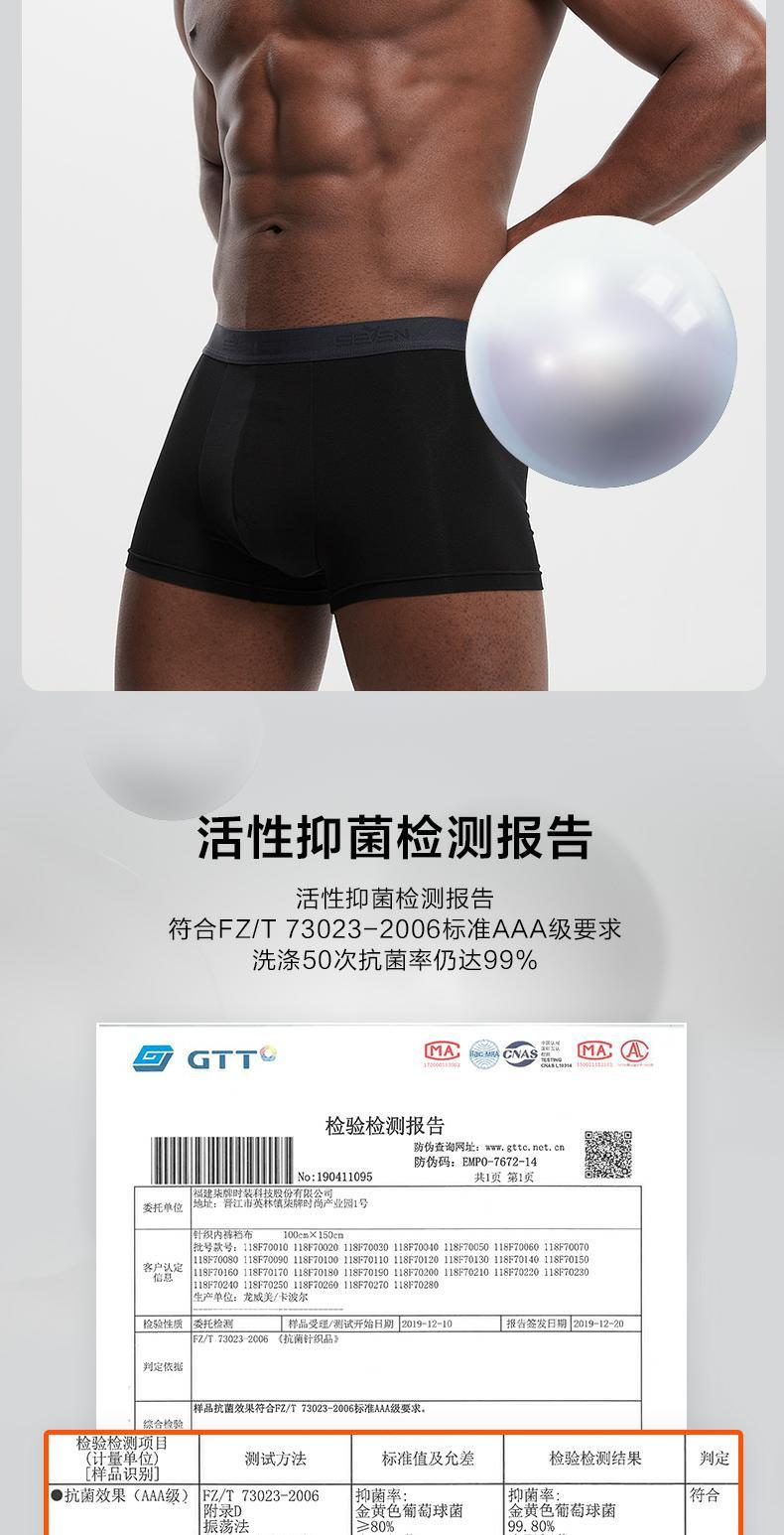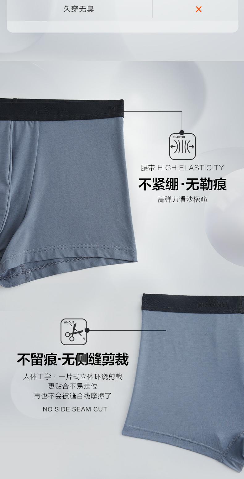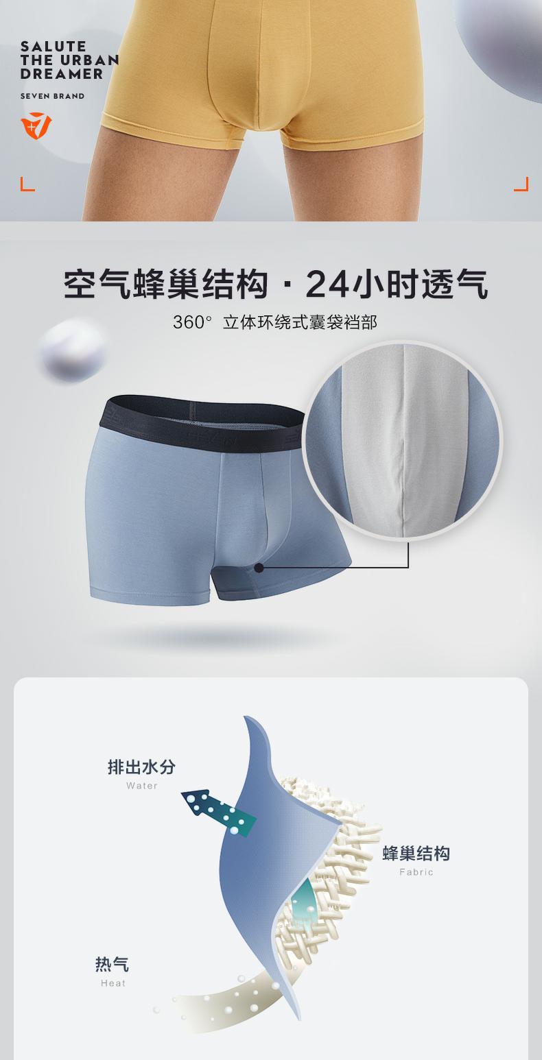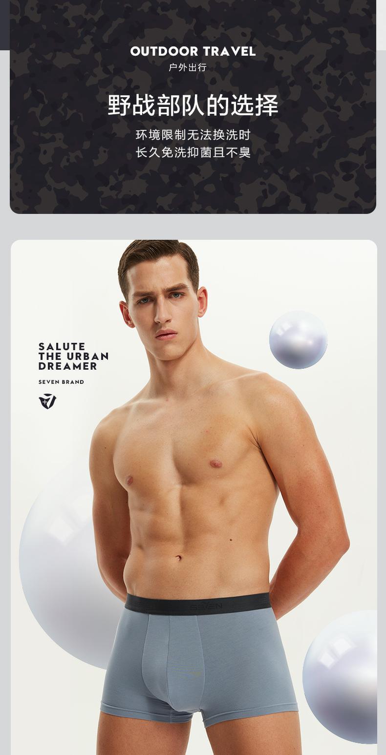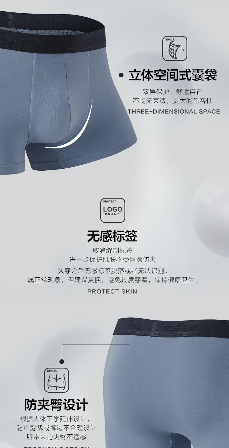 【礼盒3条装】柒牌男士内裤新款莫代尔透气无痕平角裤弹力抗菌四角短裤男 118F70110