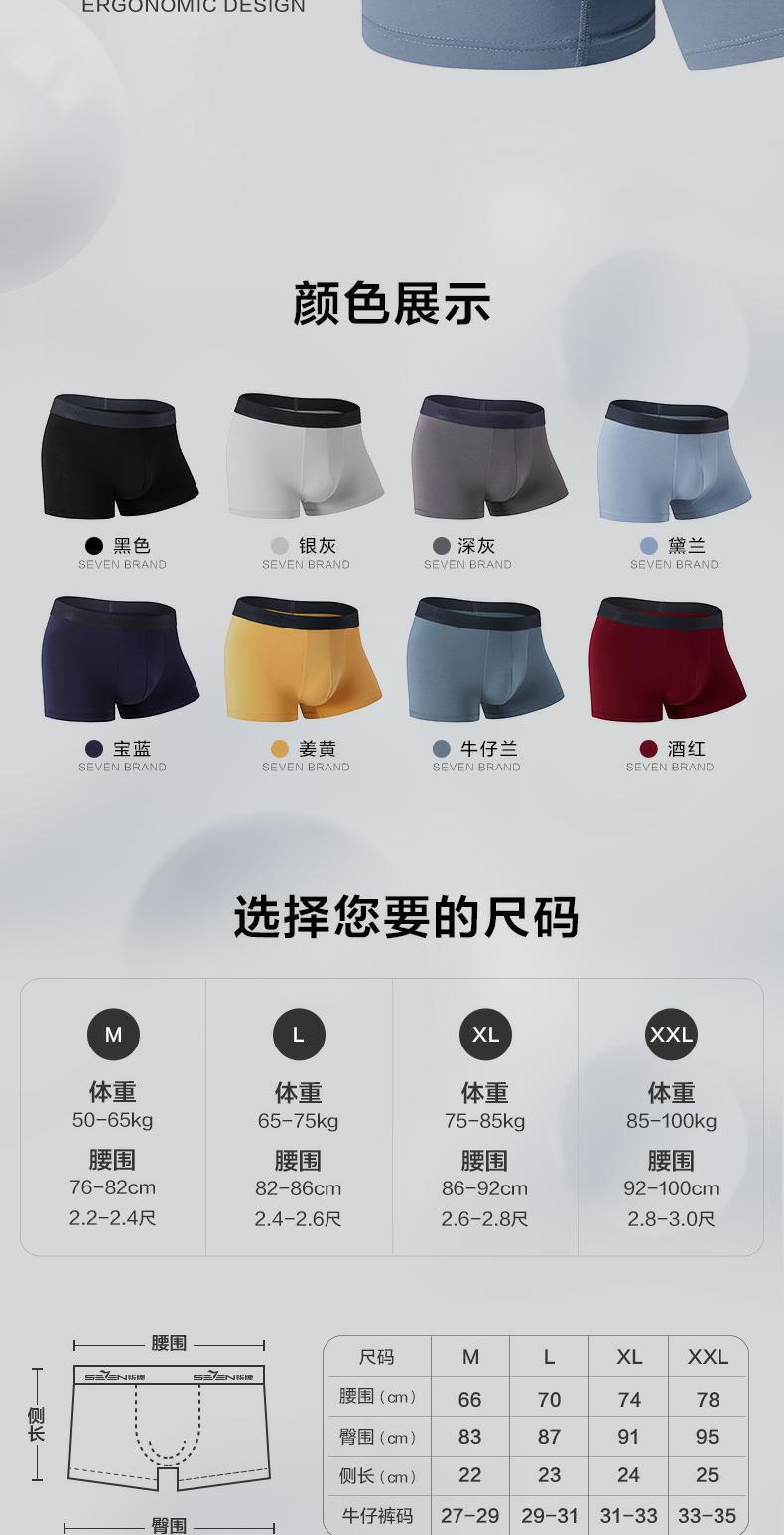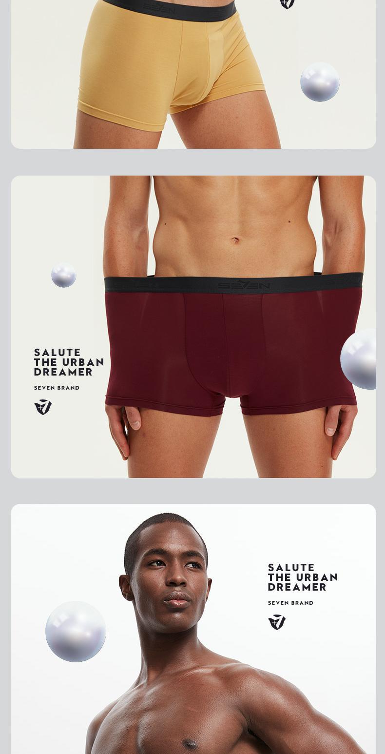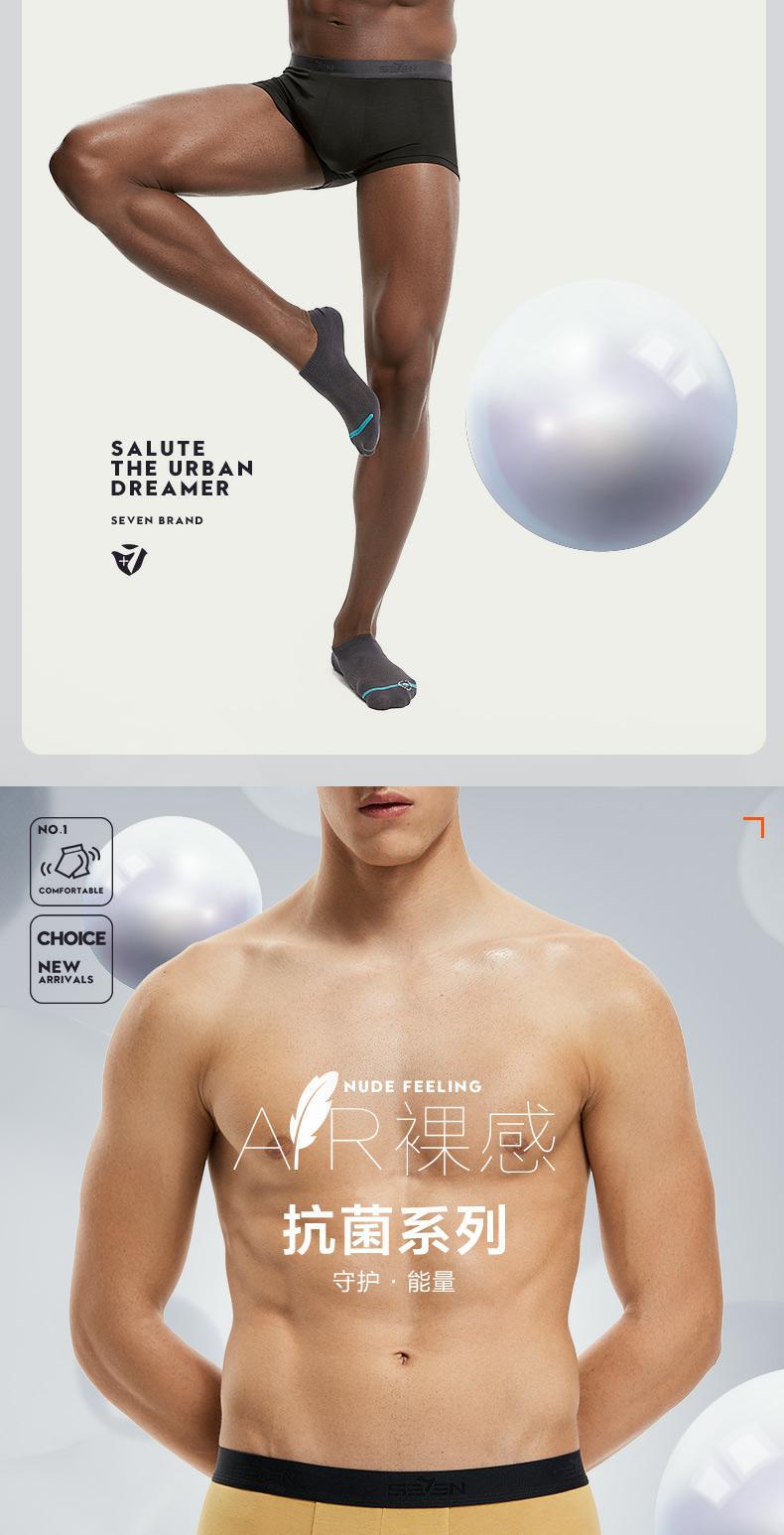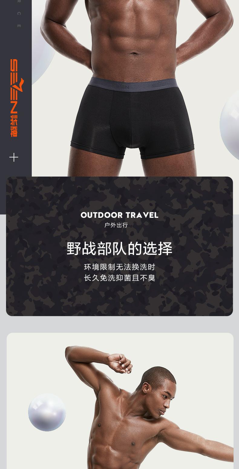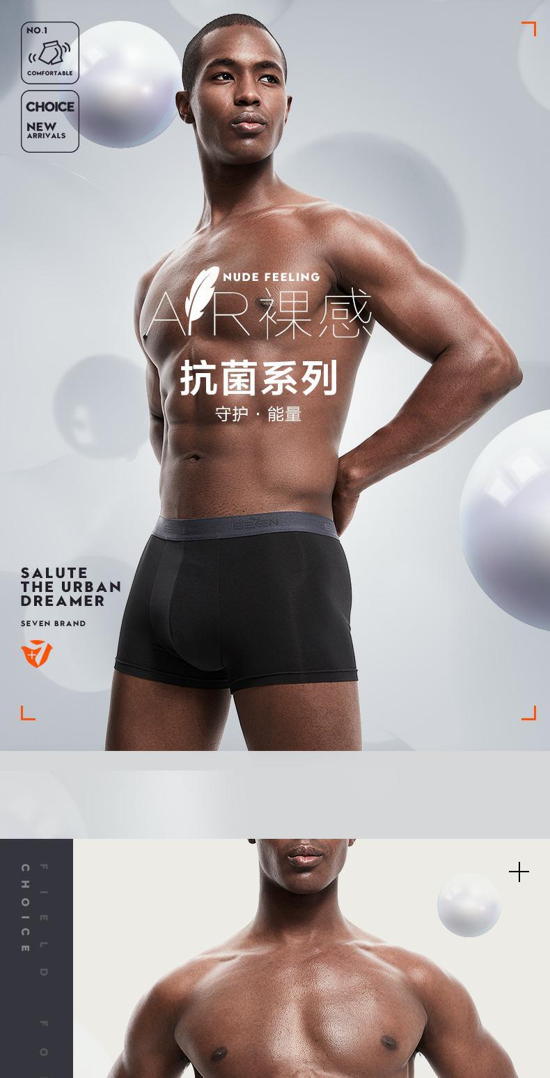【礼盒3条装】柒牌男士内裤新款莫代尔透气无痕平角裤弹力抗菌四角短裤男 118F70110