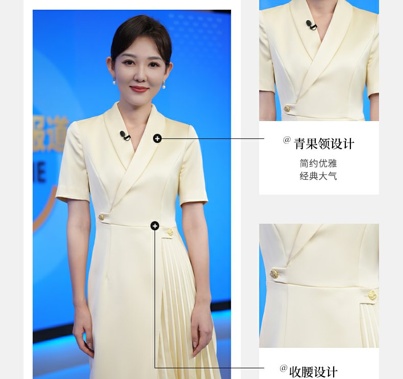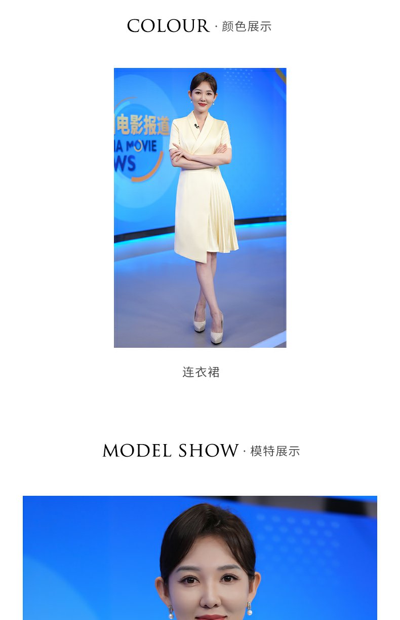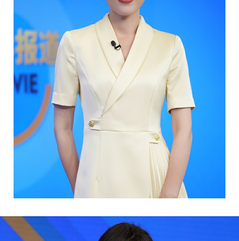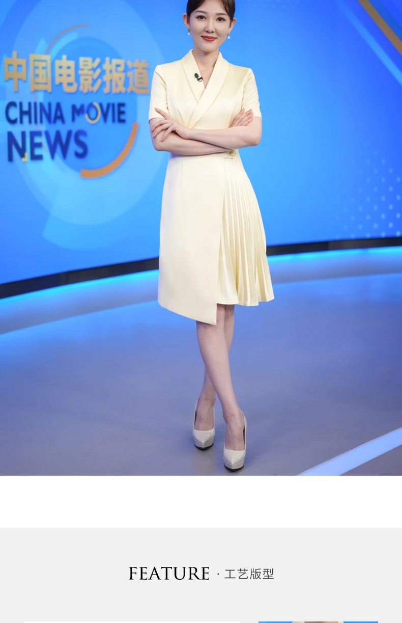 IWY/黄色西装连衣裙女气质轻奢法式百褶裙上镜主持人正装232009Q1