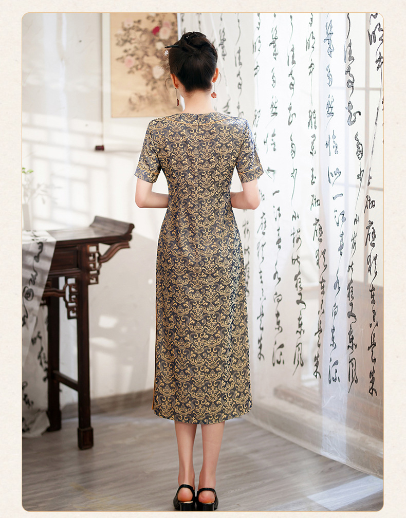V领复古改良旗袍 日常可穿复古立领气质碎花裙SYG630