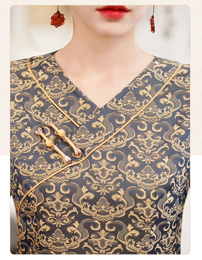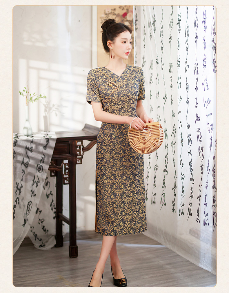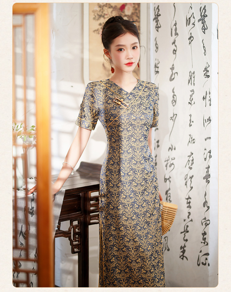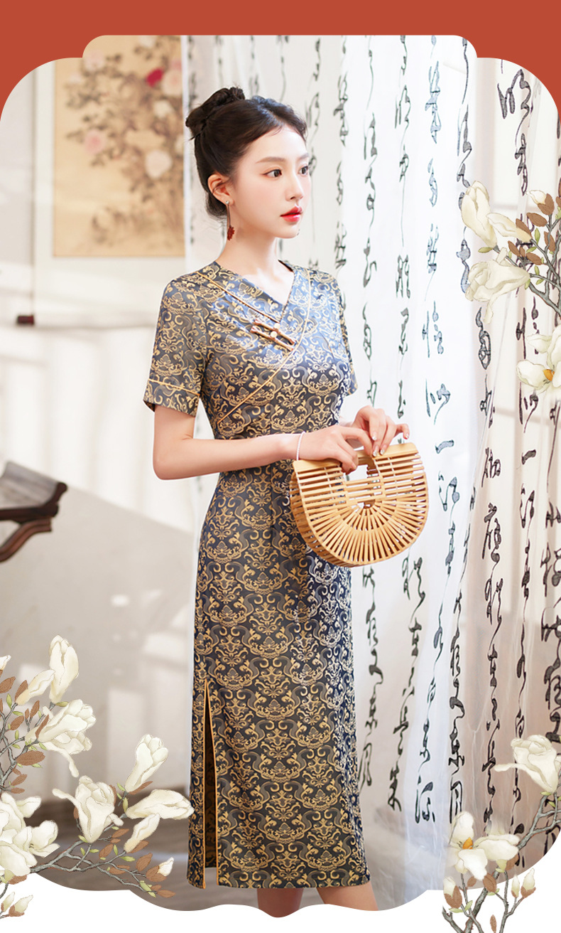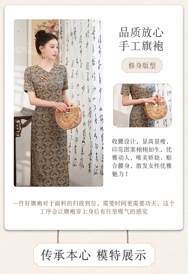 老上海复古改良新中式长款七分袖旗袍大摆裙2023冬新款旗袍GX-21804