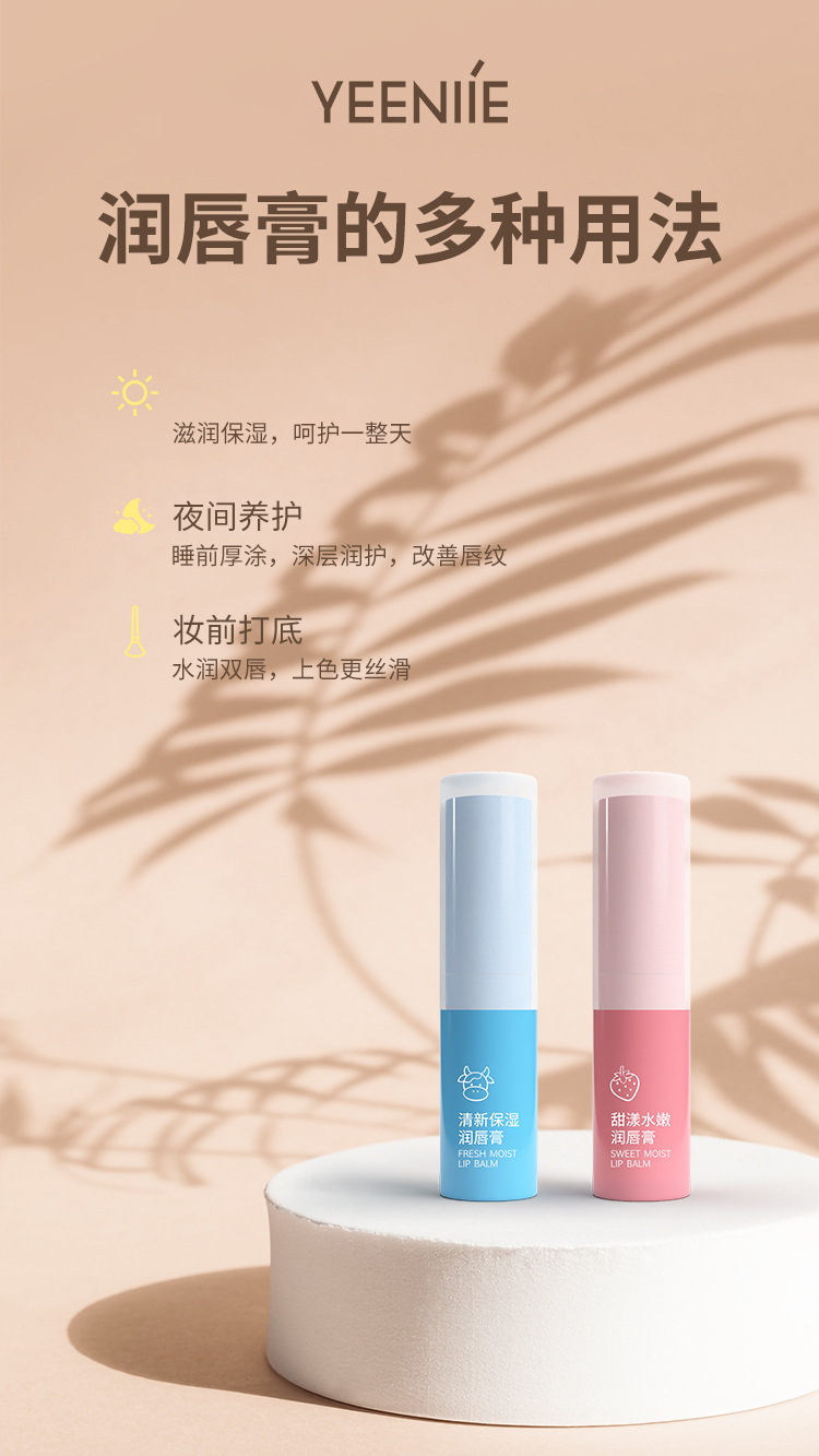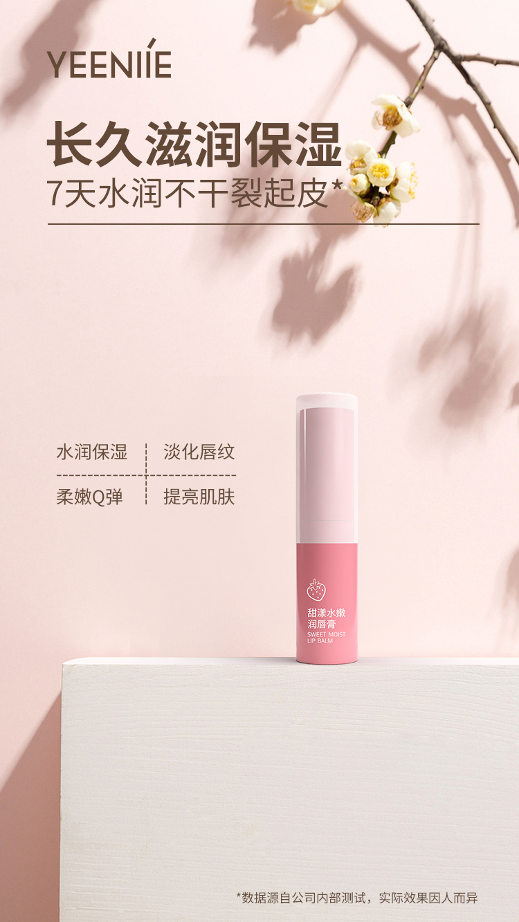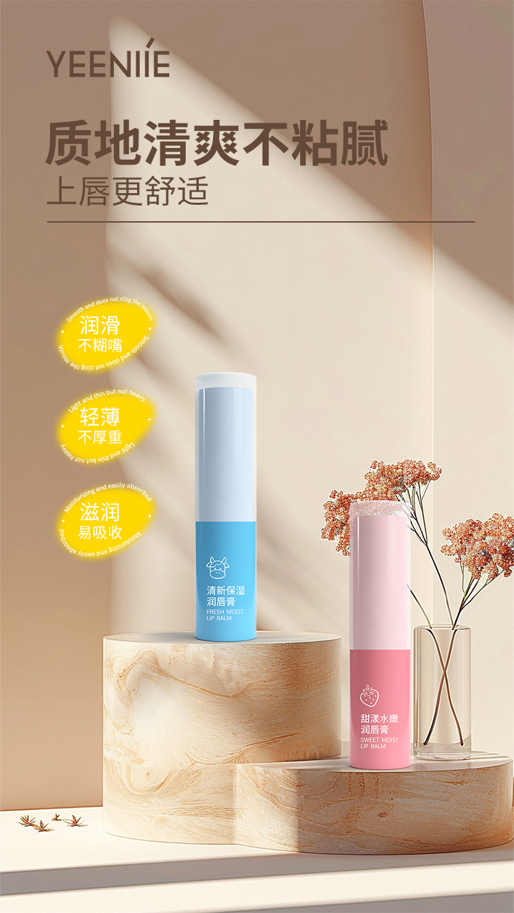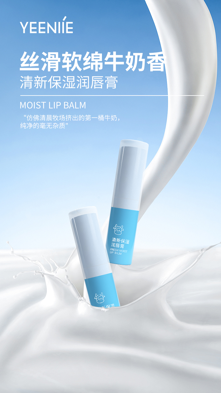 宜奈儿清新保湿润唇膏(牛奶香)甜漾水嫩润(草莓香) 3g(250550-250549)