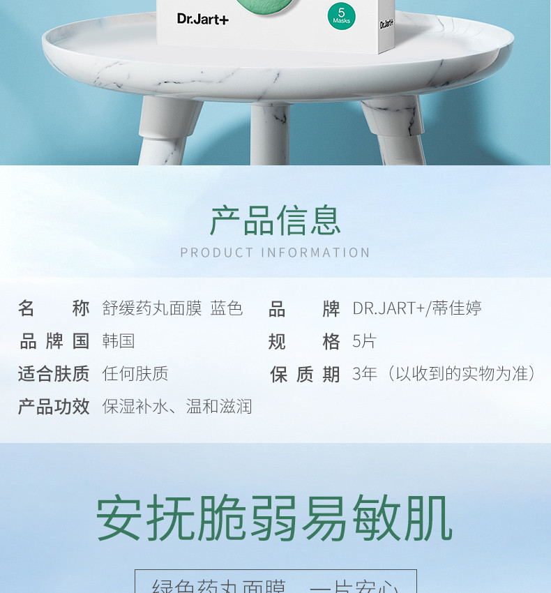 DR.JART+/蒂佳婷 舒缓抗敏药丸面膜 绿色 5片