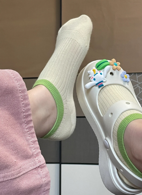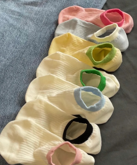 💕挖到宝啦,这么舒服可爱的船袜 谁能拒绝? 这么舒服可爱的船袜 没有小仙女能拒绝吧,冰淇淋色系颜值担当 袜口撞色一整个爱住,拼着穿真的好特别呀~