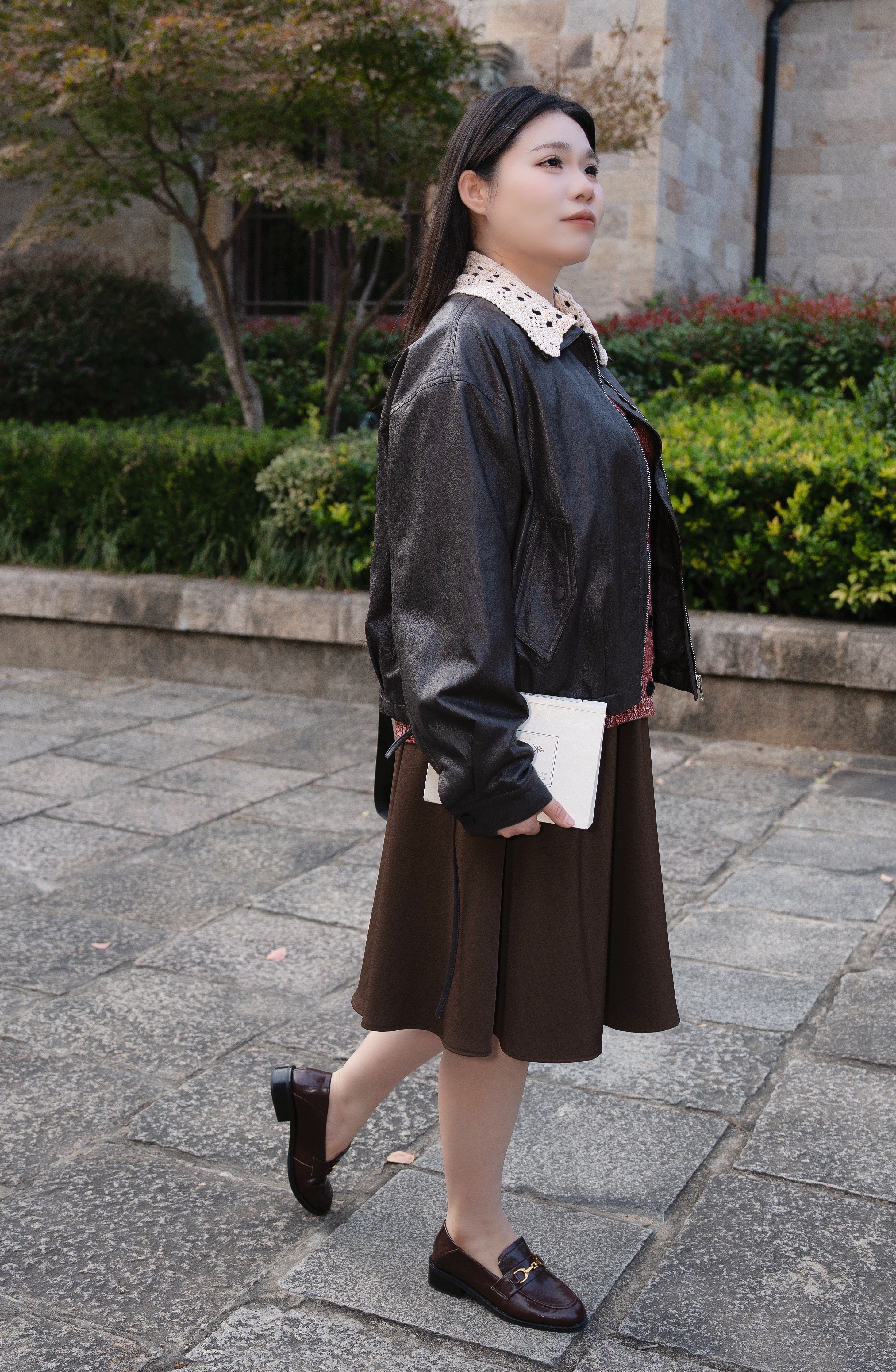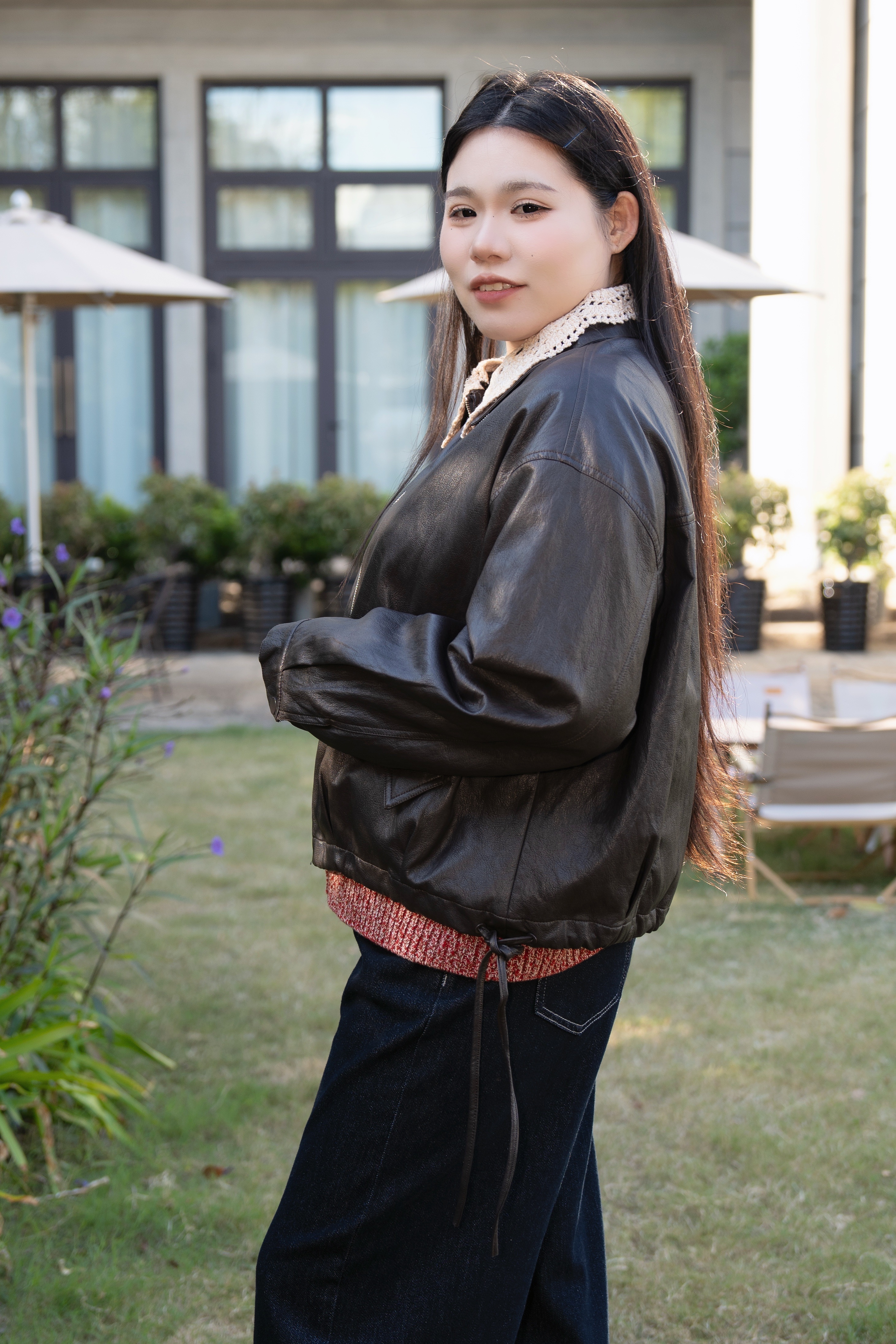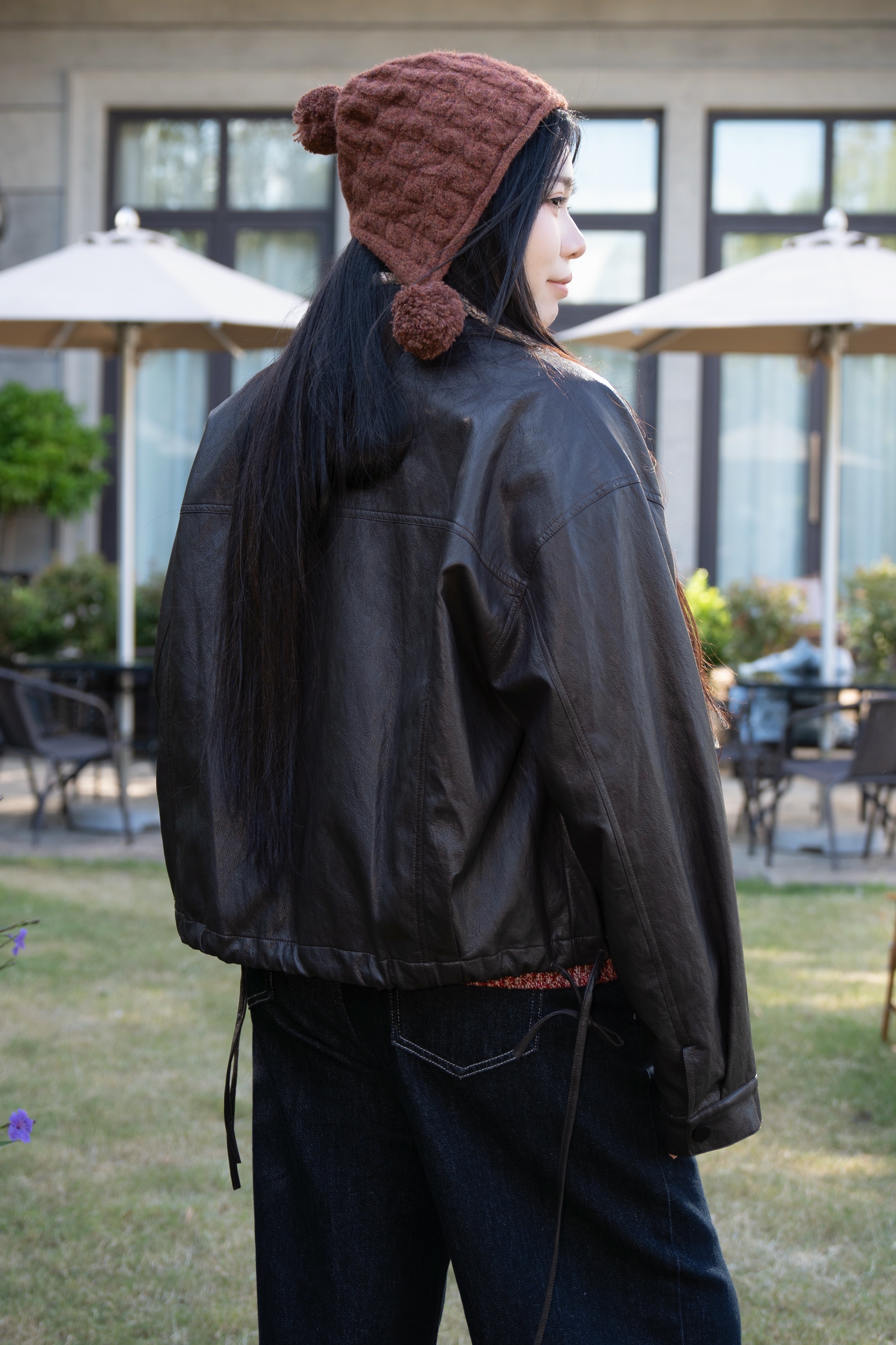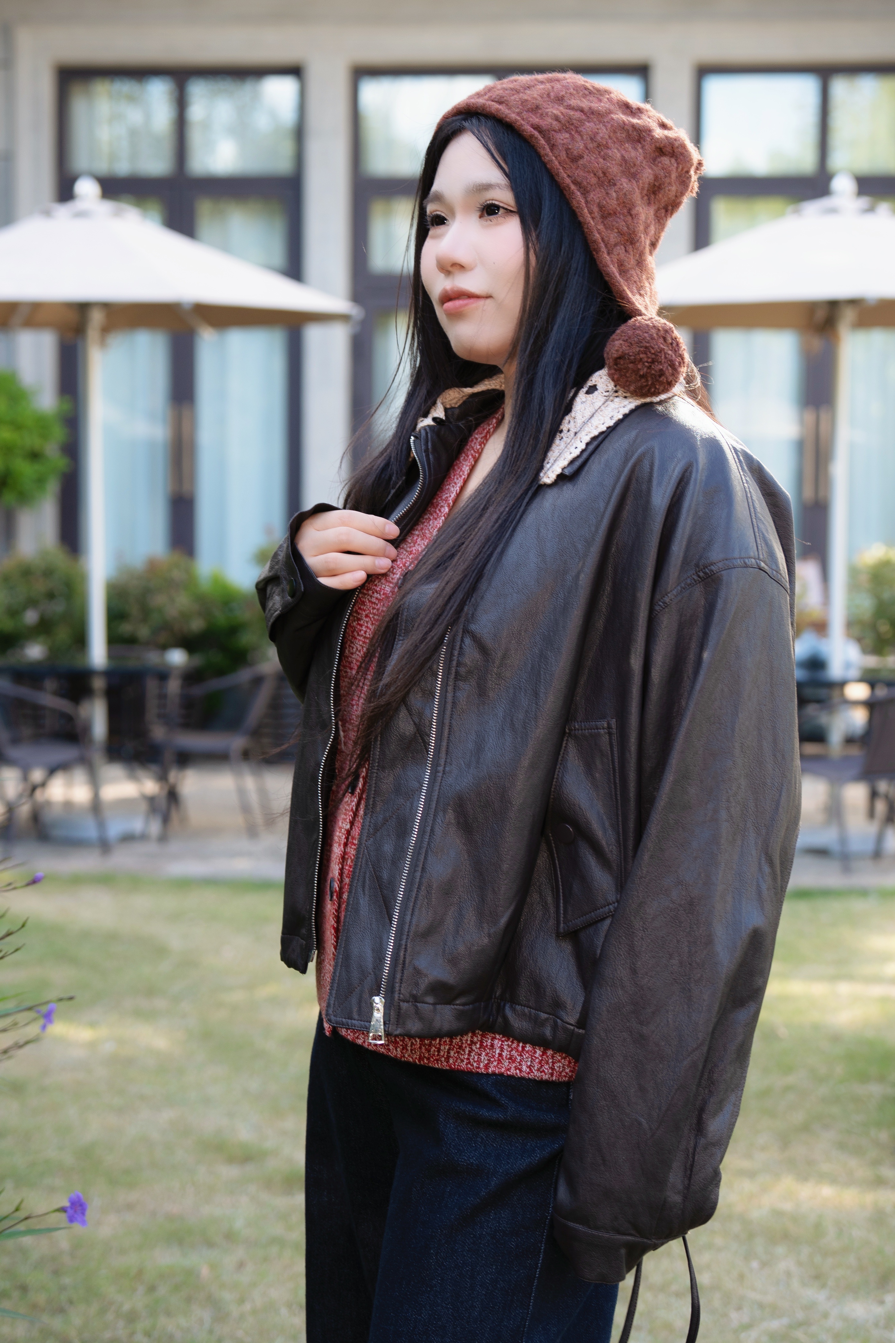 一周发货【可拆卸领口 钩织花边领皮衣夹克】深咖色,拉链款,穿脱方便~花姐朋友出口俄罗斯款货源,高性价比款,环保蛋白皮,质感满分,光泽度佳~