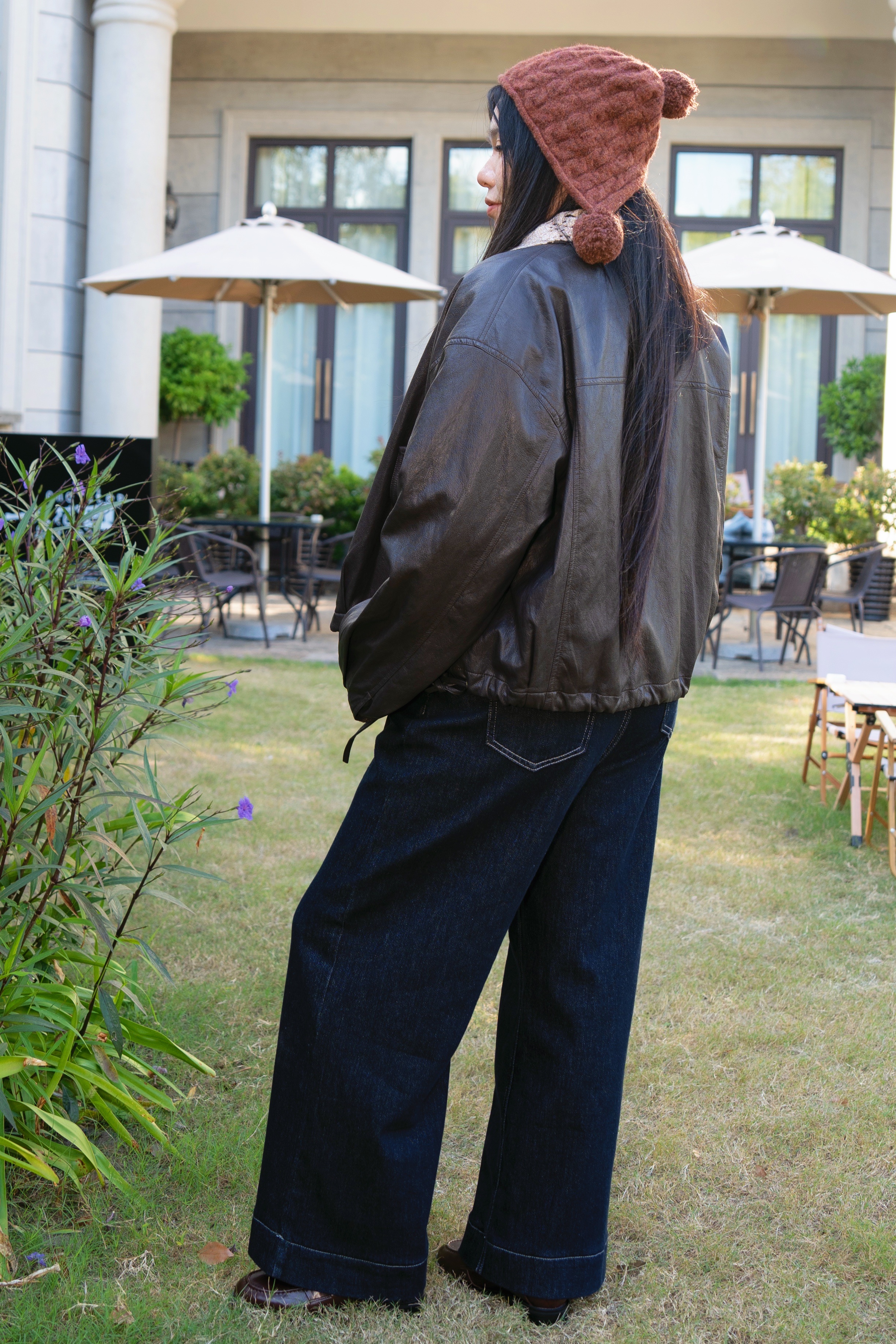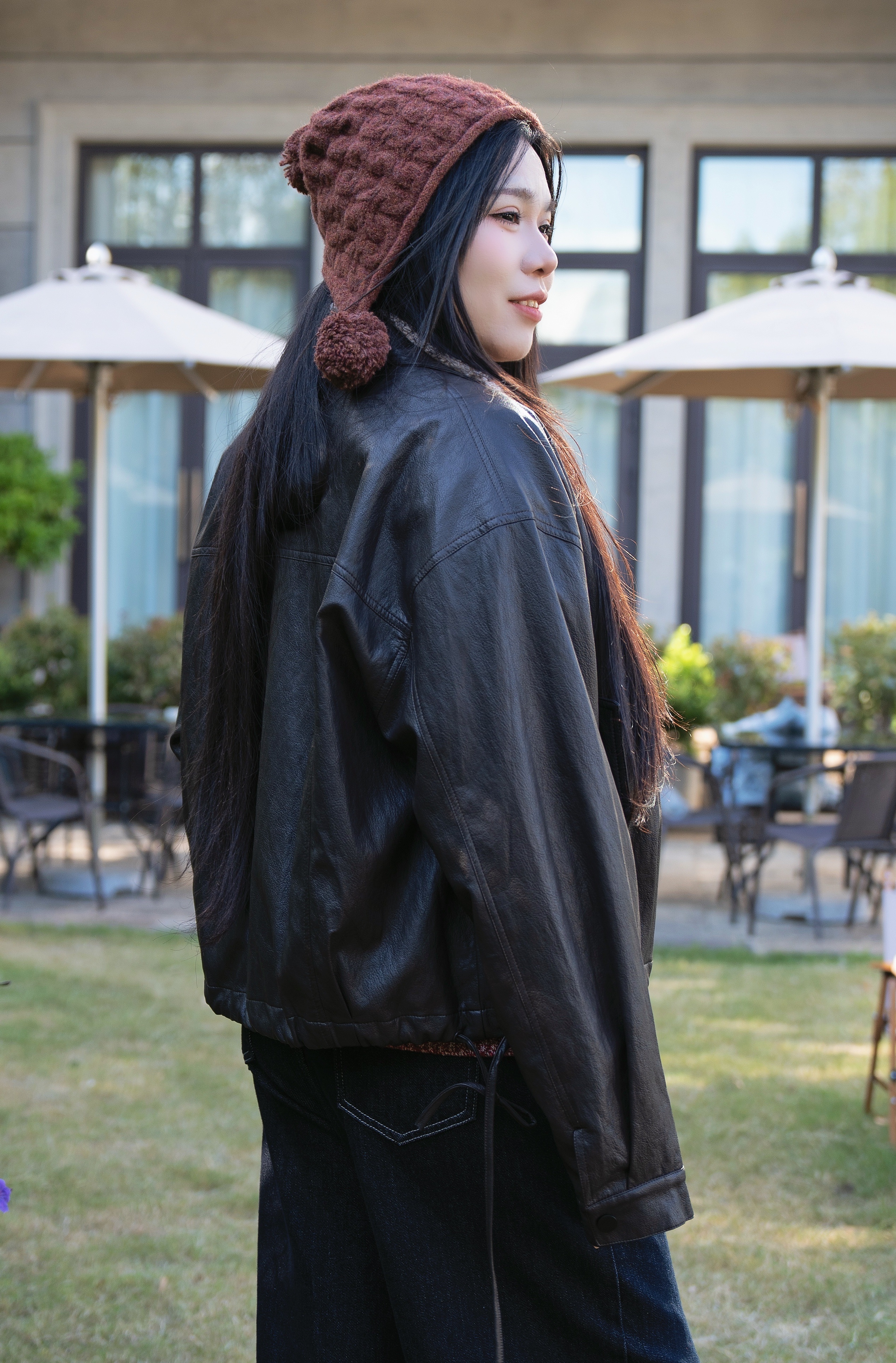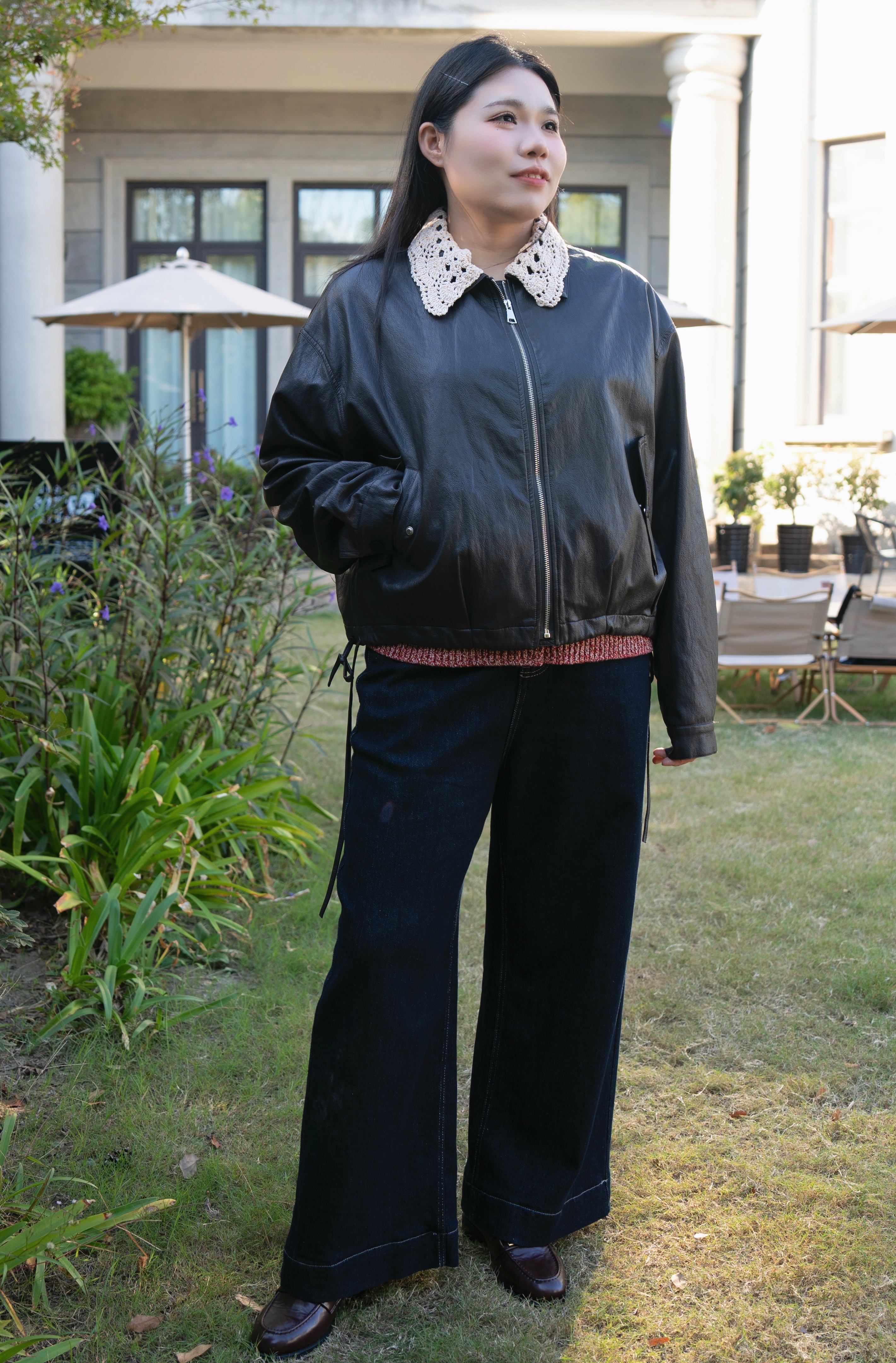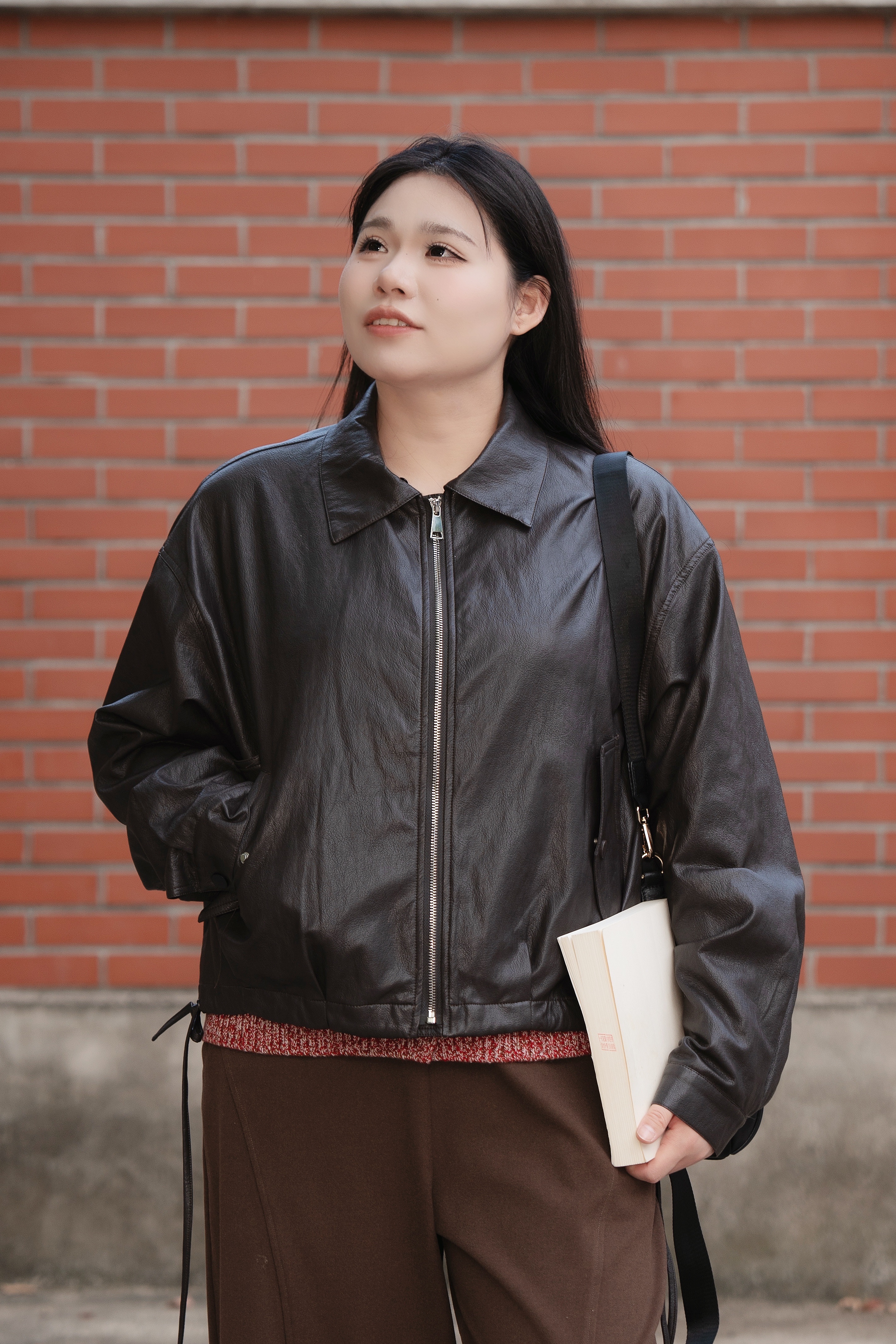 一周发货【可拆卸领口 钩织花边领皮衣夹克】深咖色,拉链款,穿脱方便~花姐朋友出口俄罗斯款货源,高性价比款,环保蛋白皮,质感满分,光泽度佳~