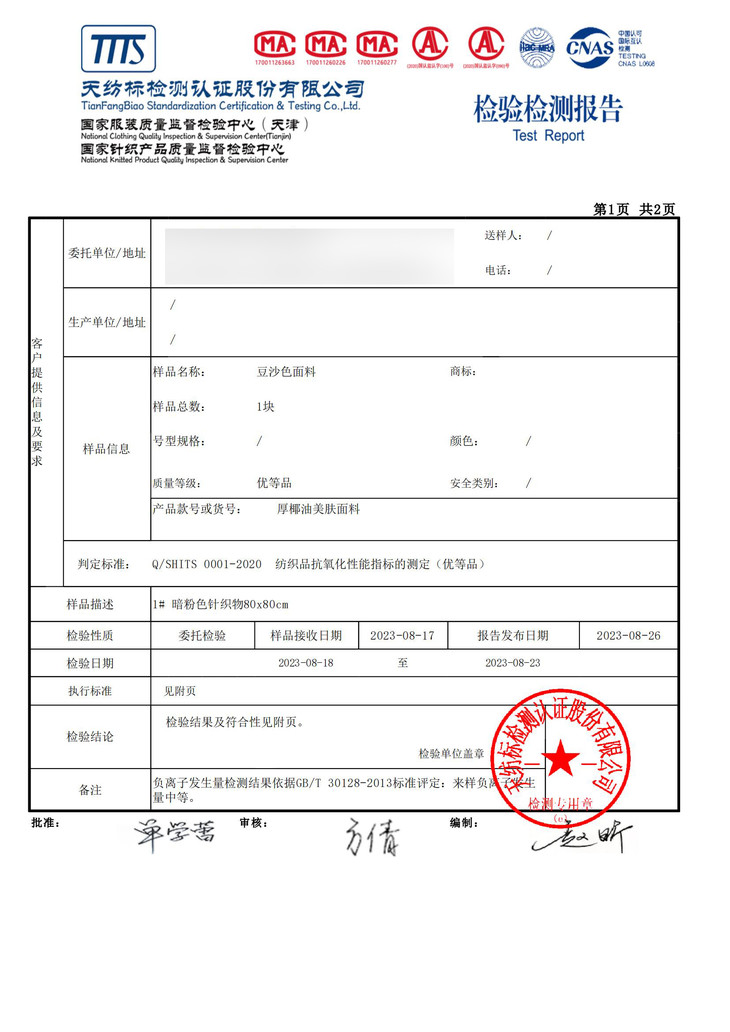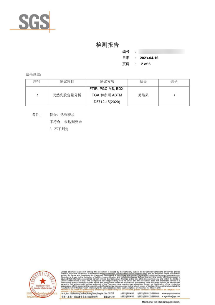 💜检测报告--乳胶薄垫内芯含量检测报告💜