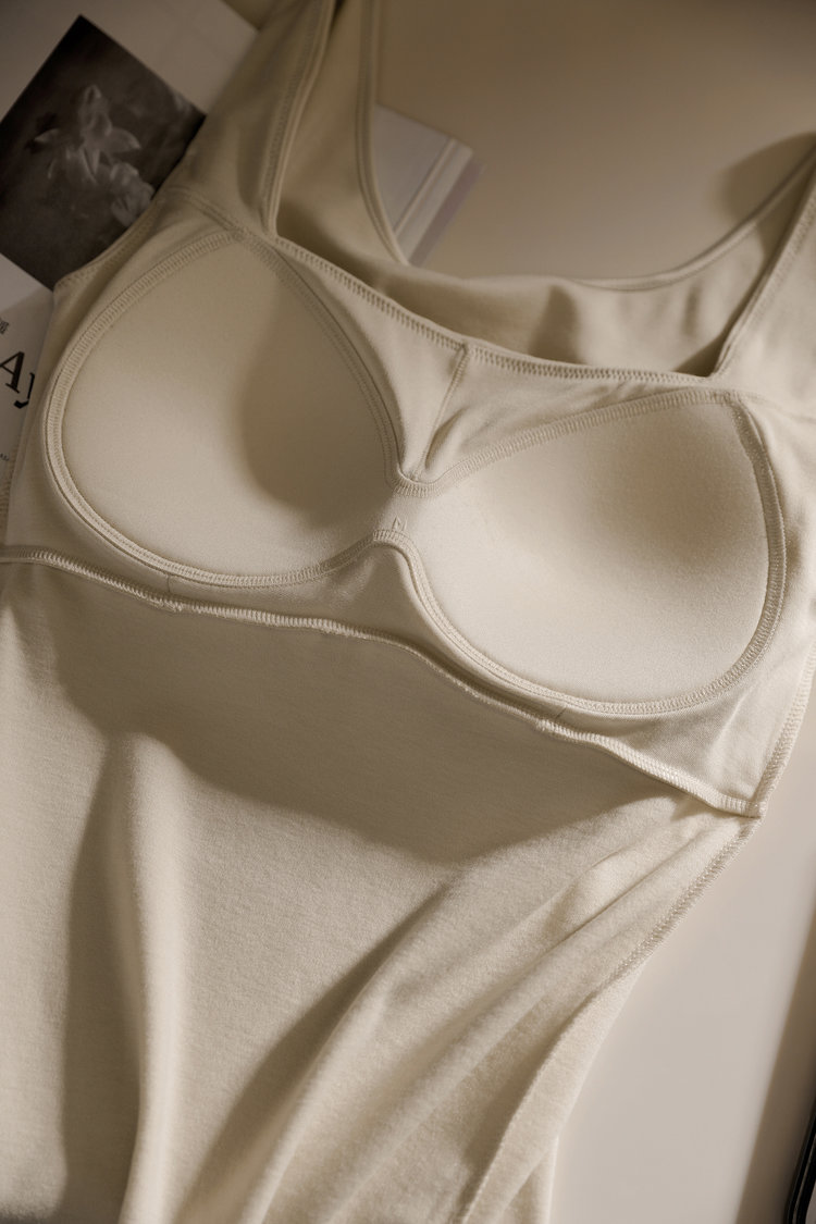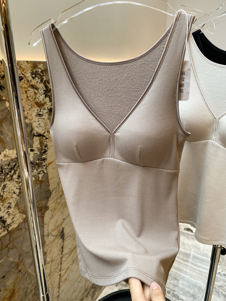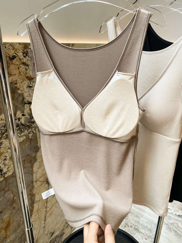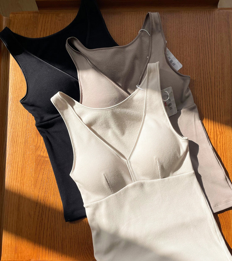 官网折合人民币650➕💰【华家同款椰油精华肌底背心、罗纹插垫真丝背心】美雅碧椰油精华锁温发热✅加入莱卡纤维,柔软超弹,舒适不紧绷,修饰斜方肌+遮副乳✅三合一免穿文胸无痕一体,外穿内搭都可~去标发货