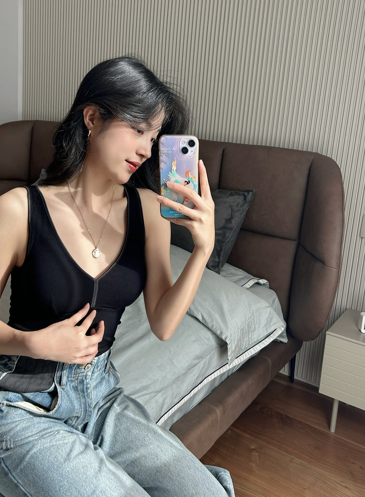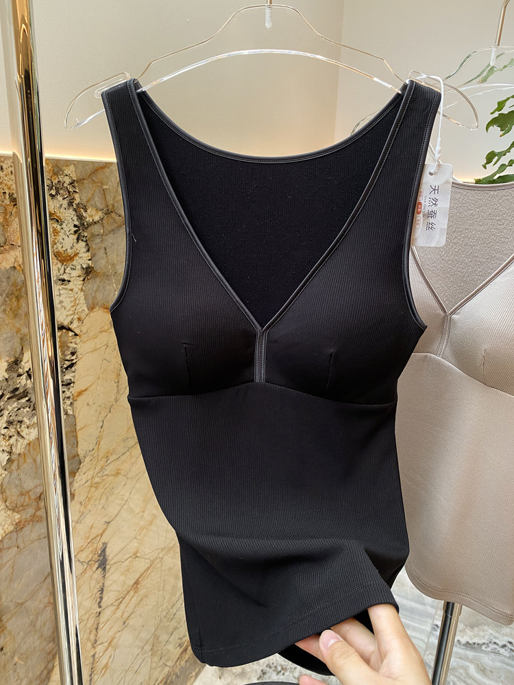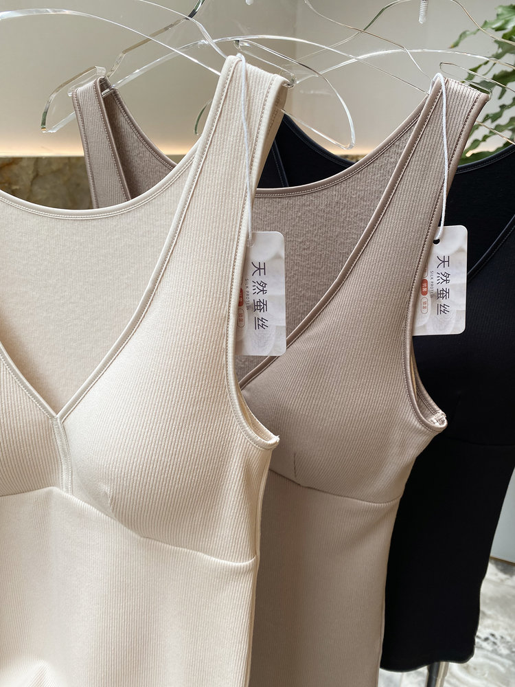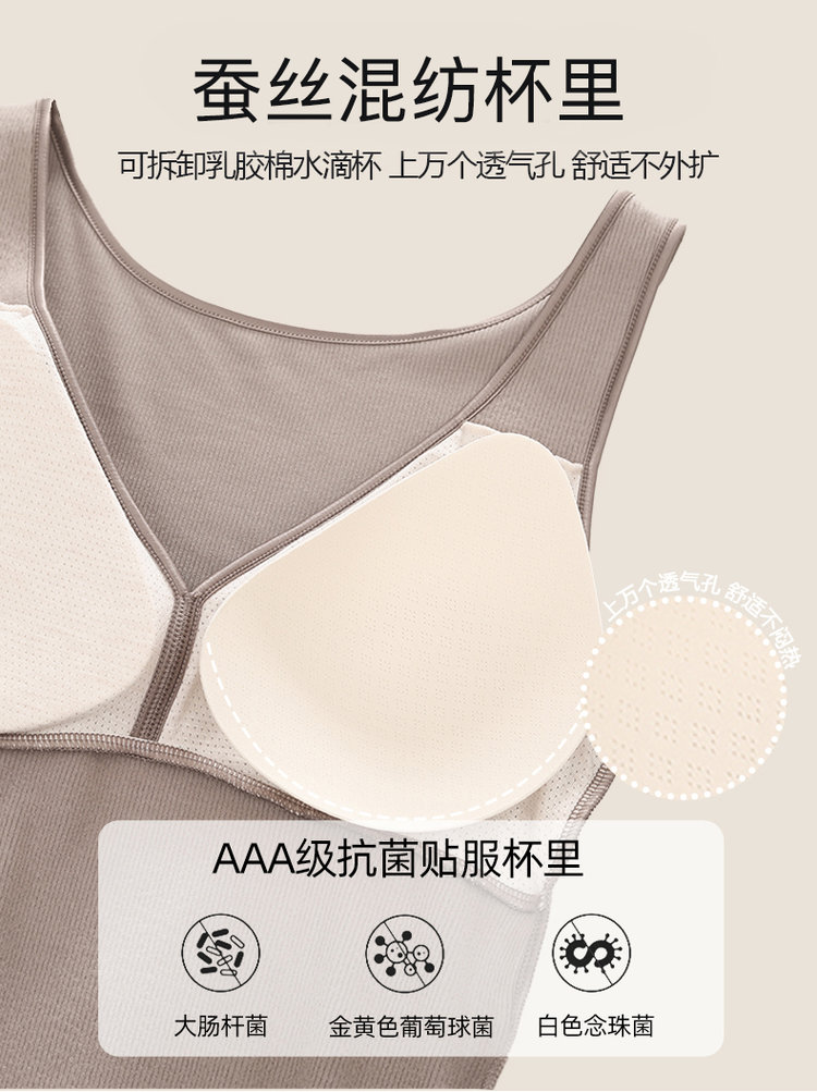 【品名】椰油精华肌底背心/罗纹插垫真丝背心