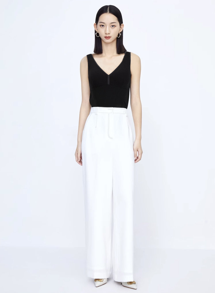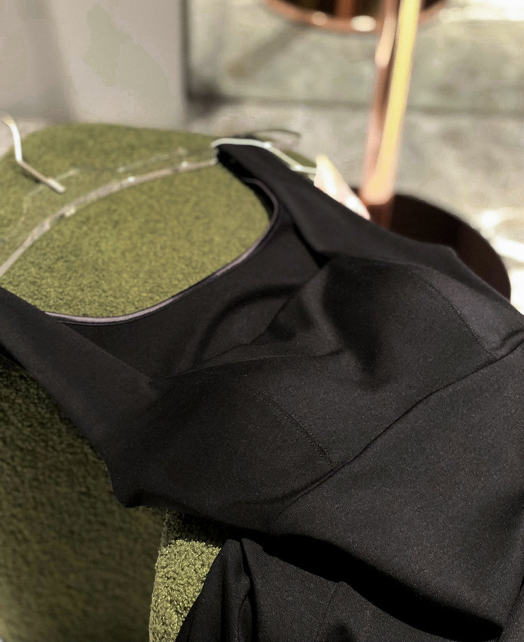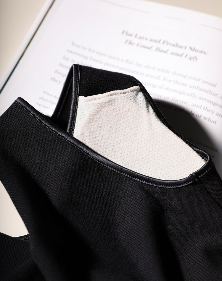大V领加上弹力色丁包边 拉长颈部线条 更精致😍
