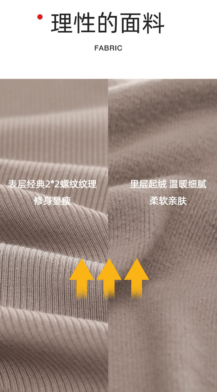 1、经典2*2螺纹纹理,贴肤磨毛处理,更柔软亲肤;竖条纹修身显瘦,长款保暖又百搭;