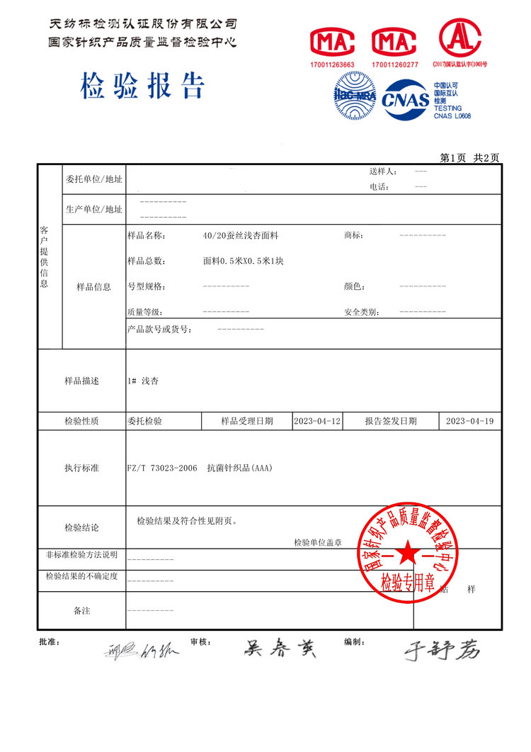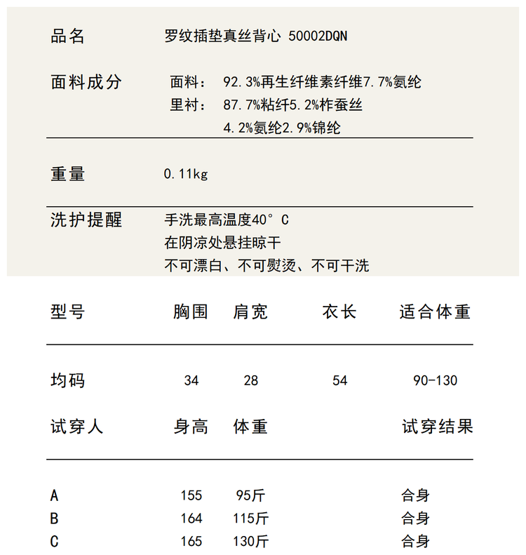 杯里:87.7%粘纤 5.2%柞蚕丝 4.2%氨纶 2.9%