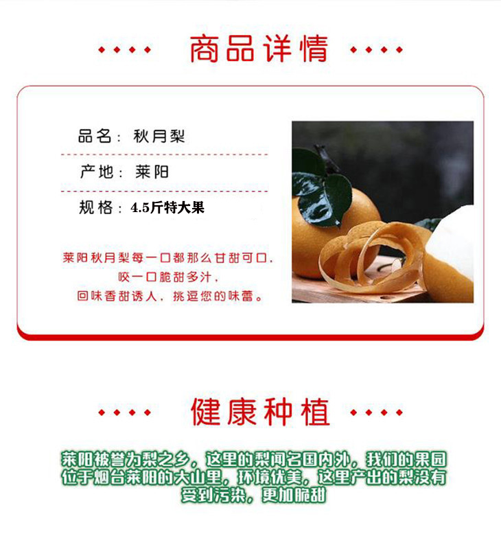 【产品规格】秋月梨4.5斤特大果(4-6个);秋月梨精品特大果8斤礼盒装(6-8个)