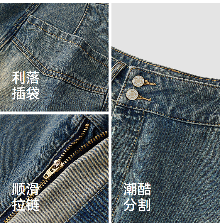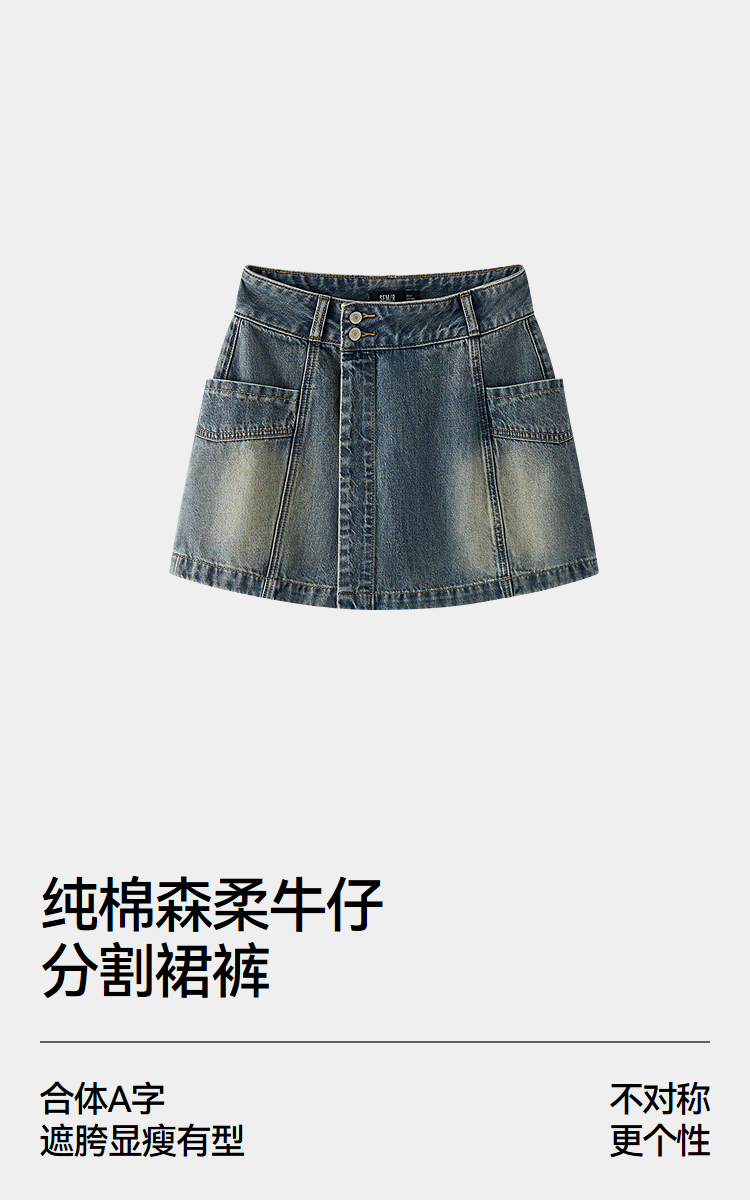 森柔|森马牛仔裤女夏季纯棉分割短裤不对称潮酷个性辣妹显瘦裙裤