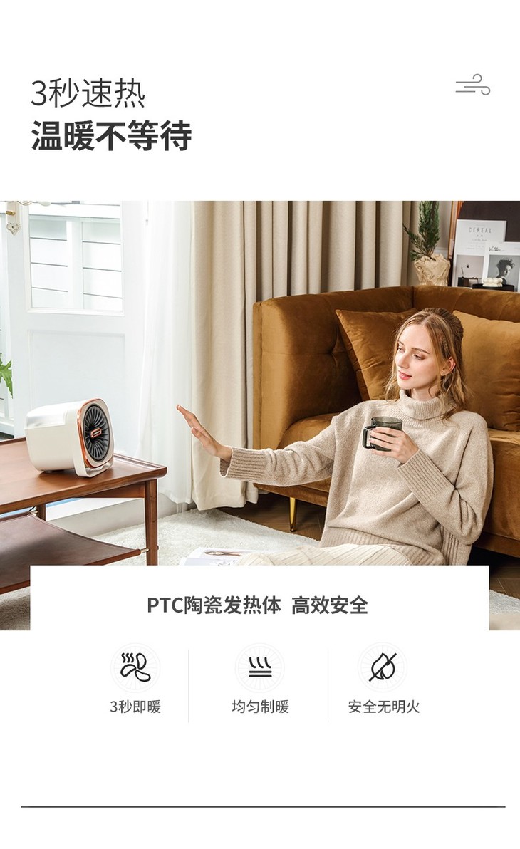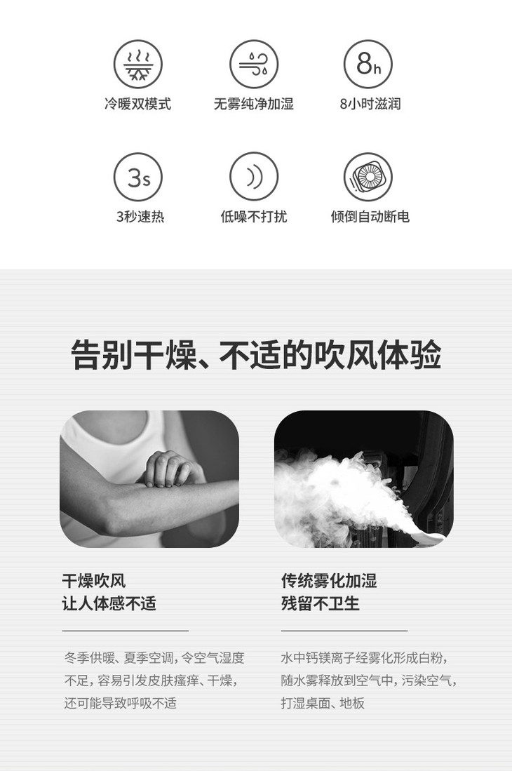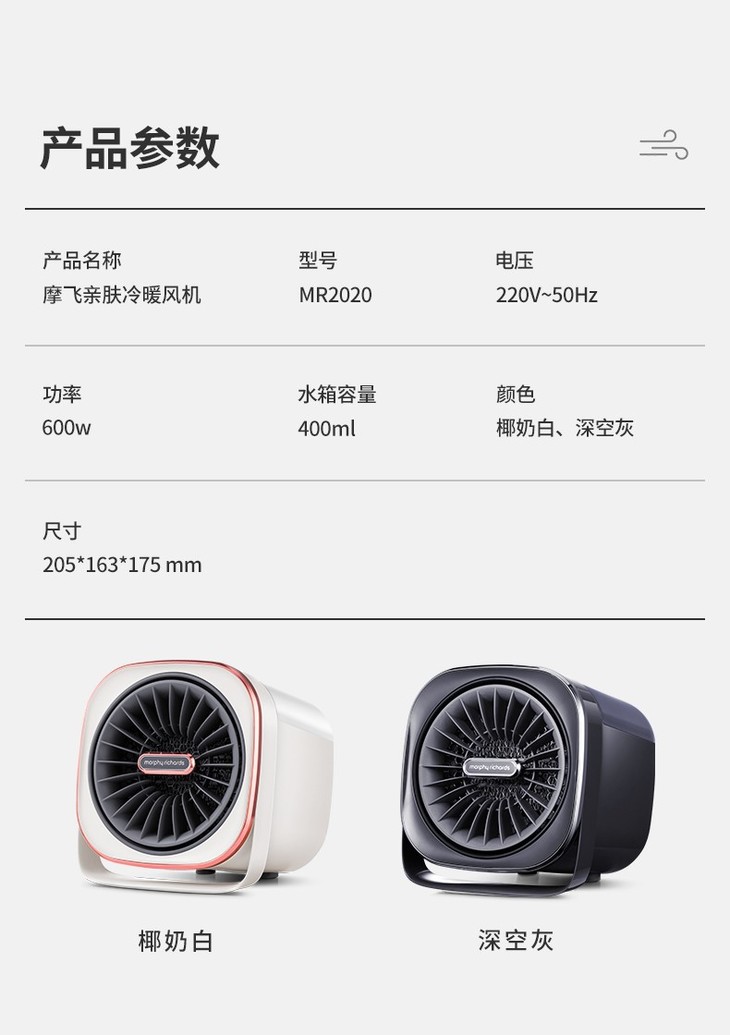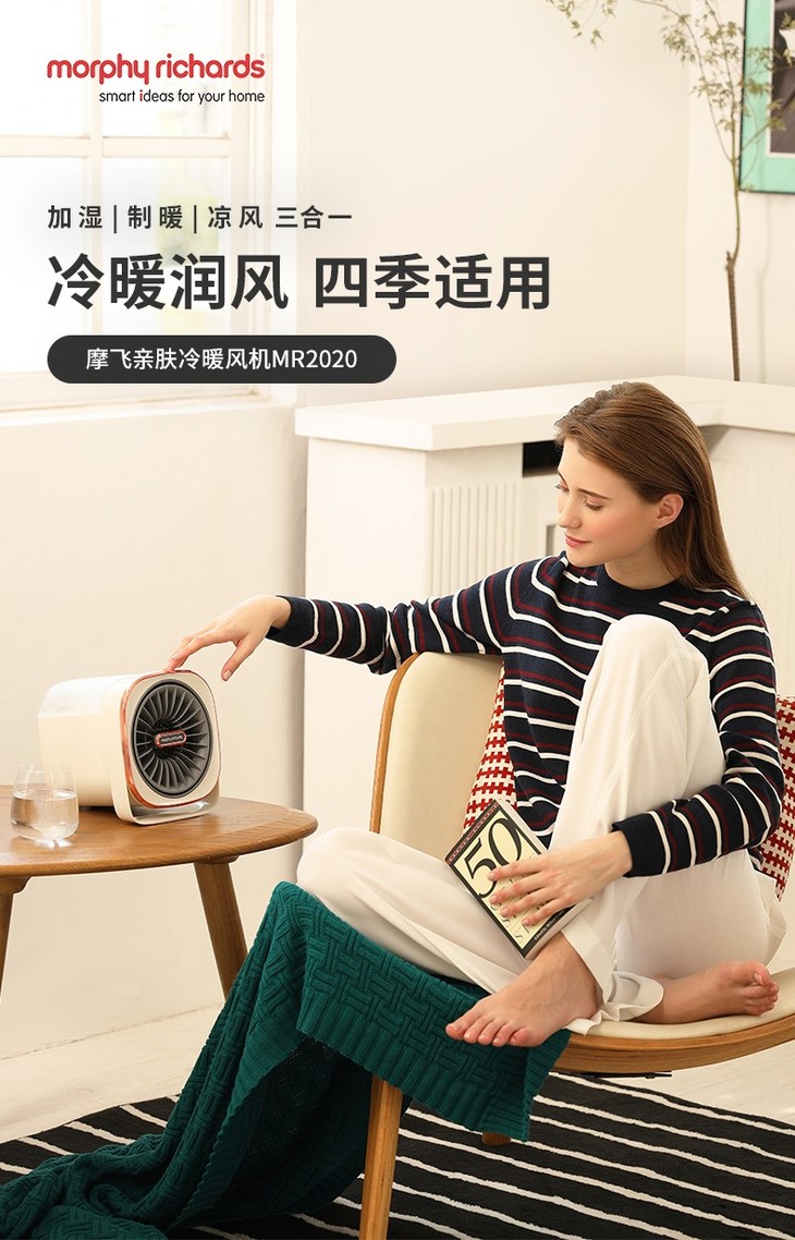 摩飞电器亲肤冷暖风机暖风机电取暖器热风凉风制暖加湿器家用小型迷你MR2020