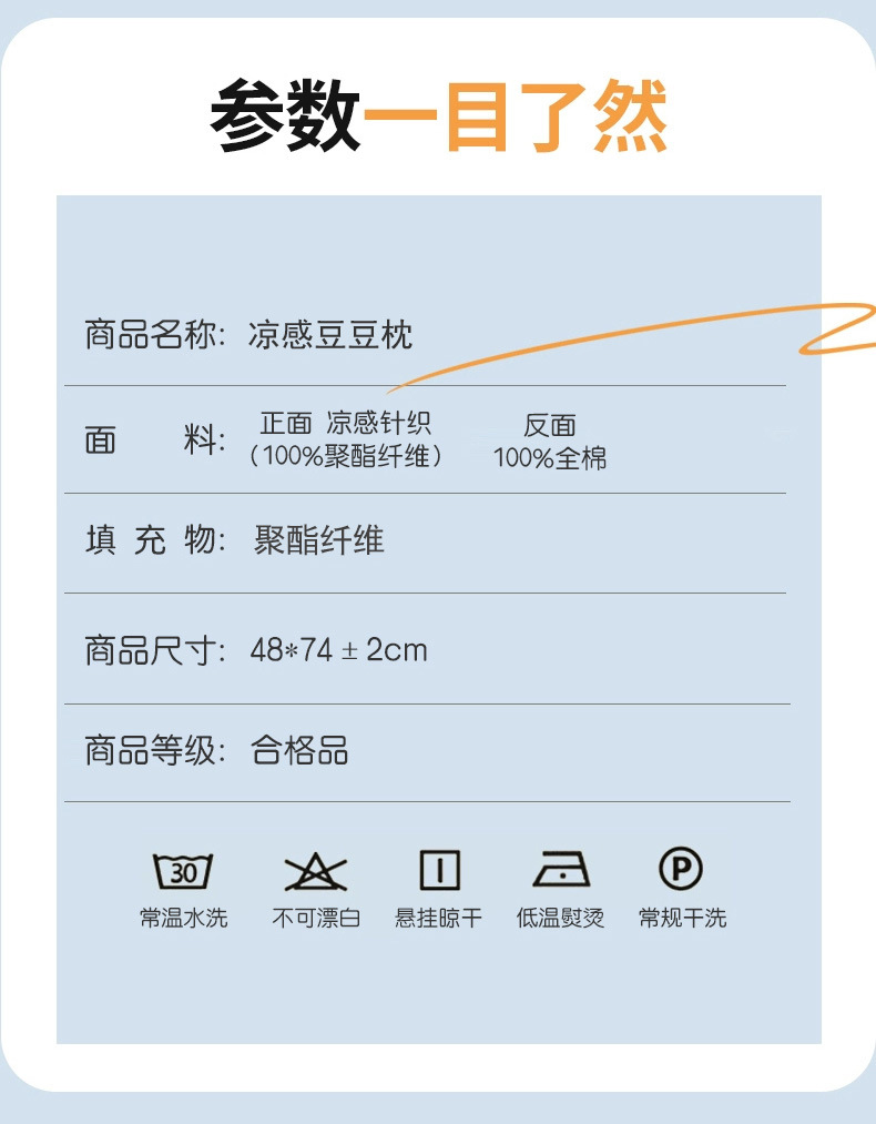 材质:正面 凉感针织(100%聚酯纤维) 反面100%全棉 填充物: 聚酯纤维