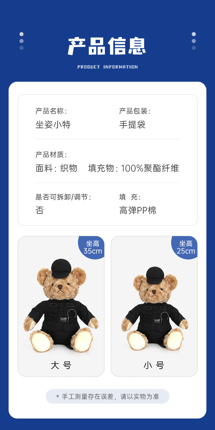 【坐姿熊小特】毛绒公仔玩具儿童毛绒小熊玩偶布娃娃送礼礼品礼物