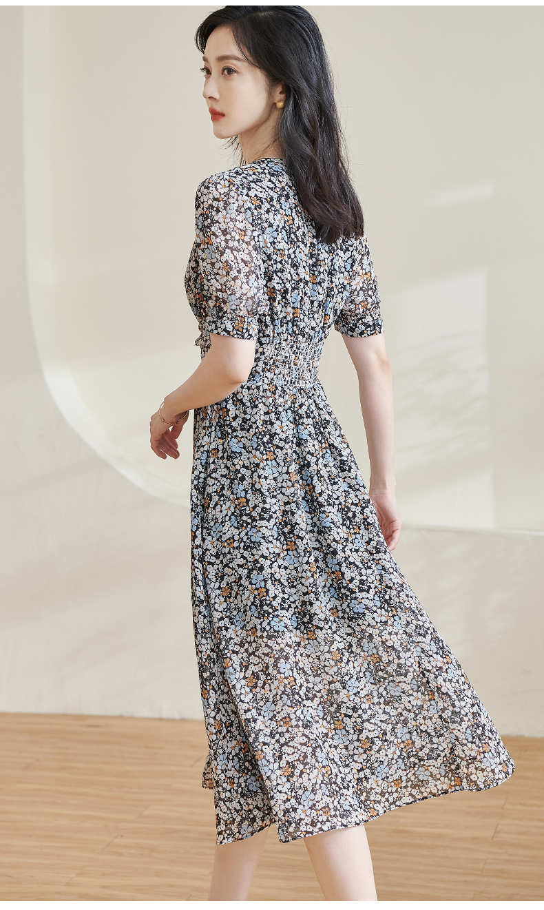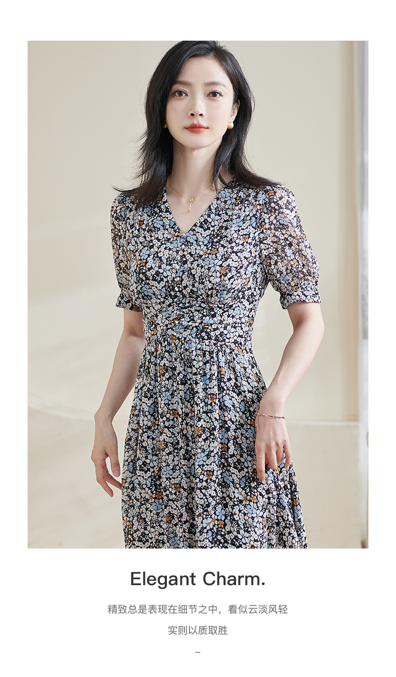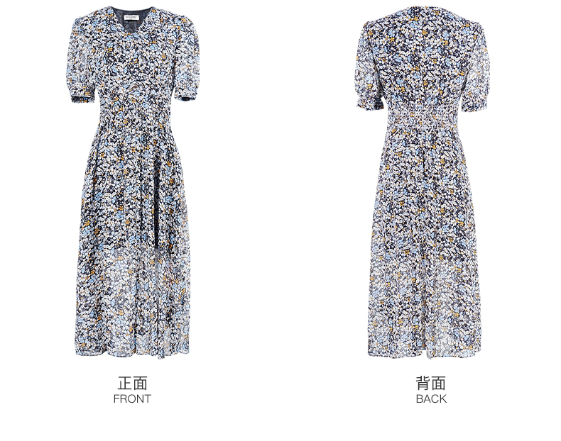 剩S/M/L/XL 米思阳2025夏季新款知性优雅气质连衣裙碎花设计泡泡袖A字裙1032