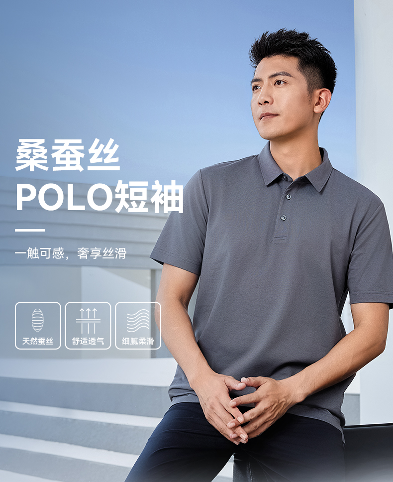 十如仕100%新疆棉吸湿速干微肌理提花镶边短袖POLO-P22-01