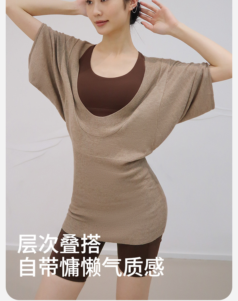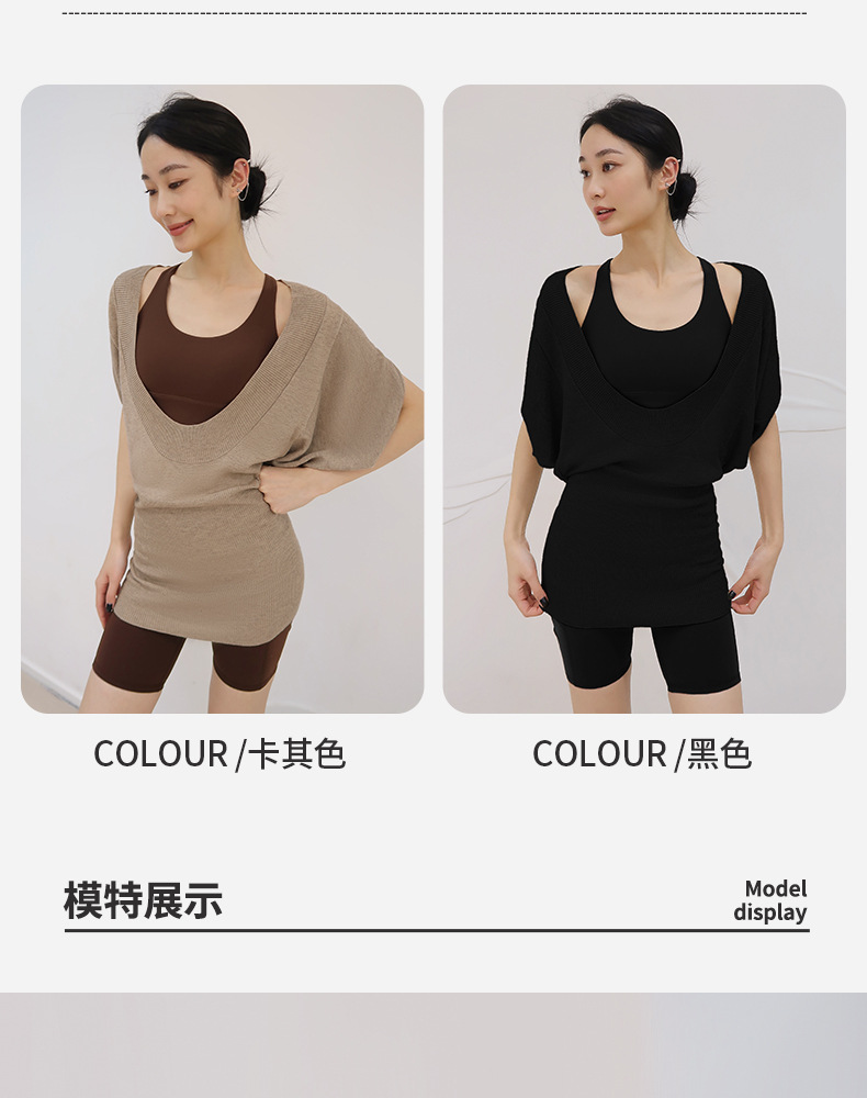 美愫中长款瑜伽罩衫宽松修身普拉提女运动弹力遮臀蝙蝠袖春秋上衣