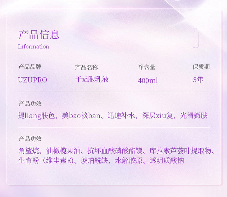 日本 UZUpro 逆龄爽肤水/乳液/面霜(500ml / 400ml / 50ml)