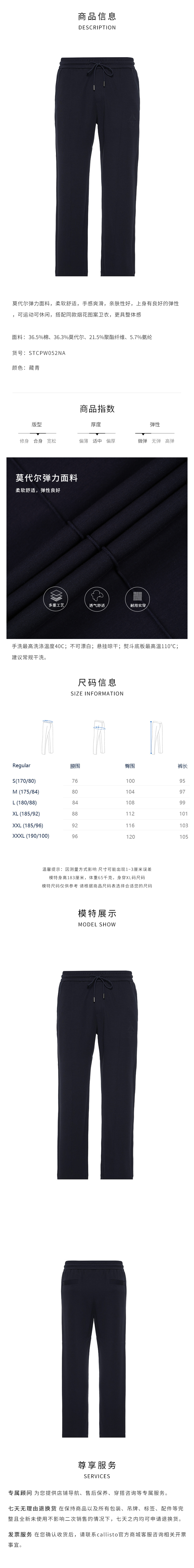 callisto藏青莫代尔弹力休闲裤 STCPW052C