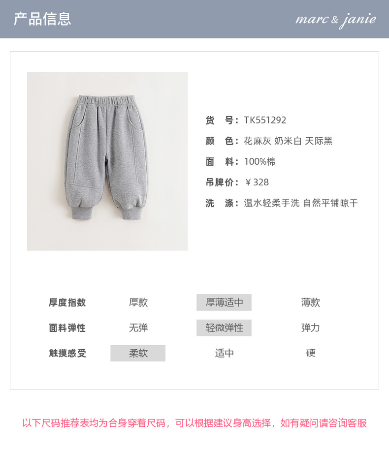 马克珍妮男童柔软有型宽松灯笼裤2025年秋装新款551292