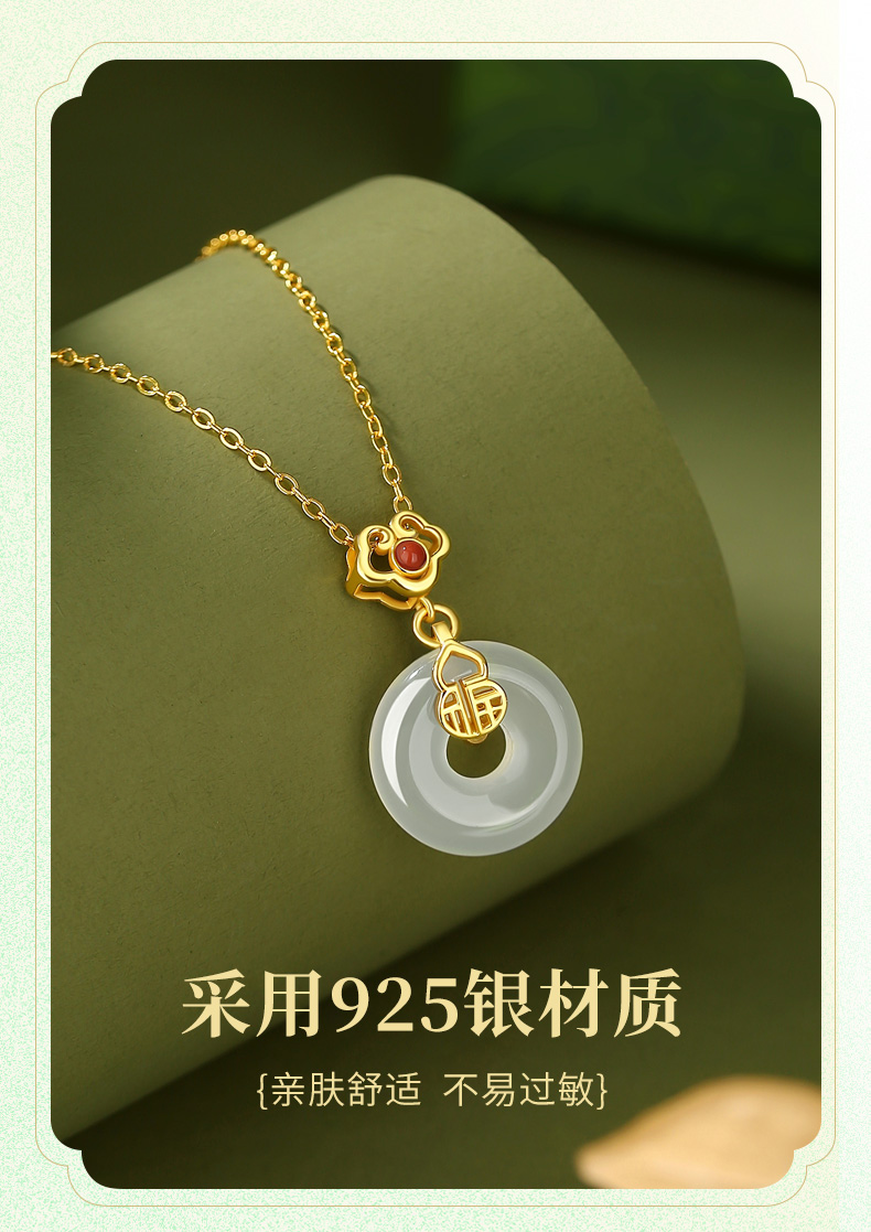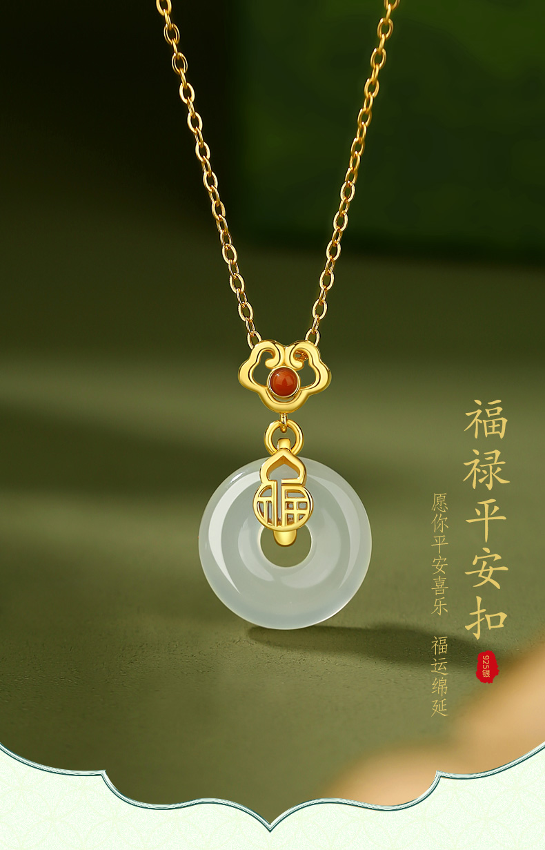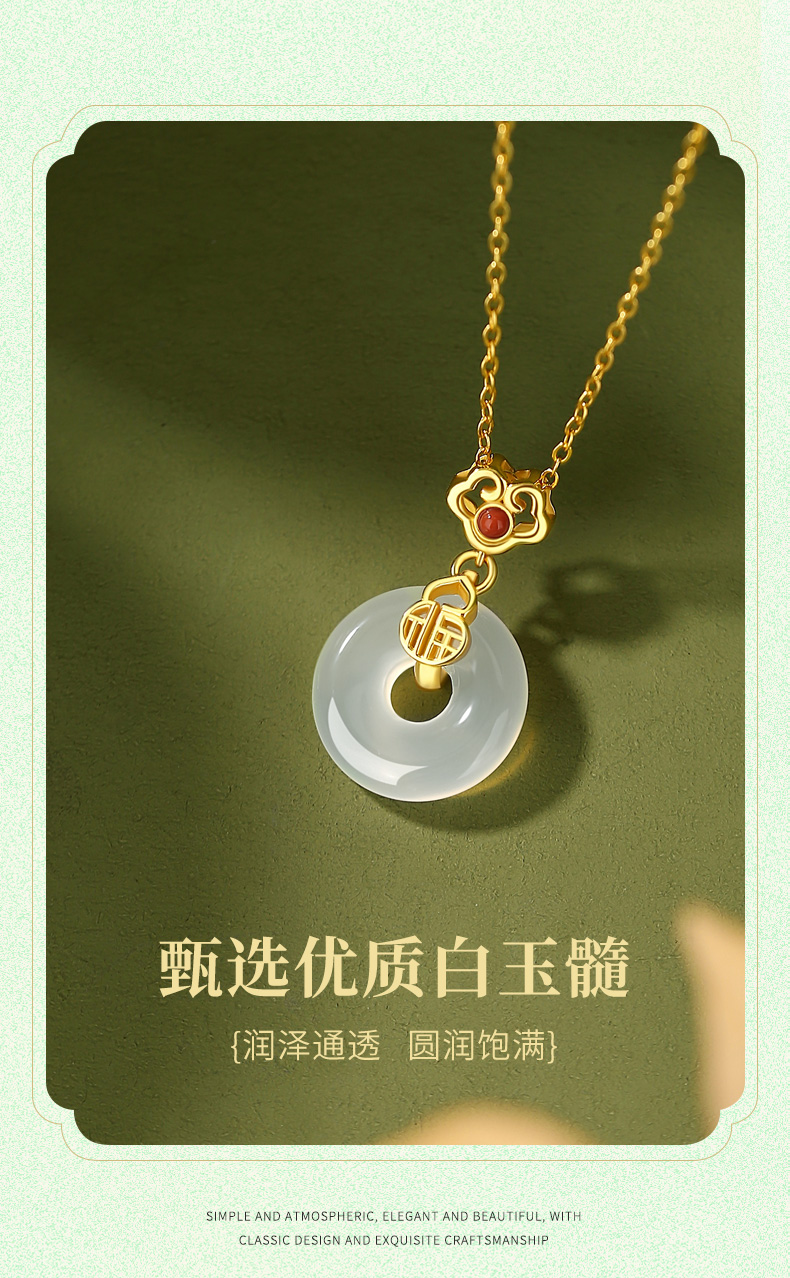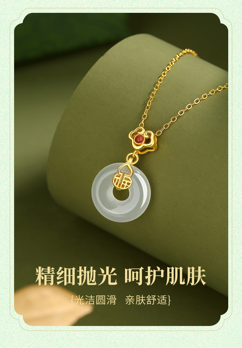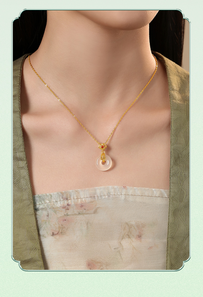 【福气平安】卡蒂罗/KADER 网红爆款 如意福牌玉髓项链 新中式小众锁骨链福禄平安扣吊坠 妈妈礼盒#好运 蛇年贺岁礼
