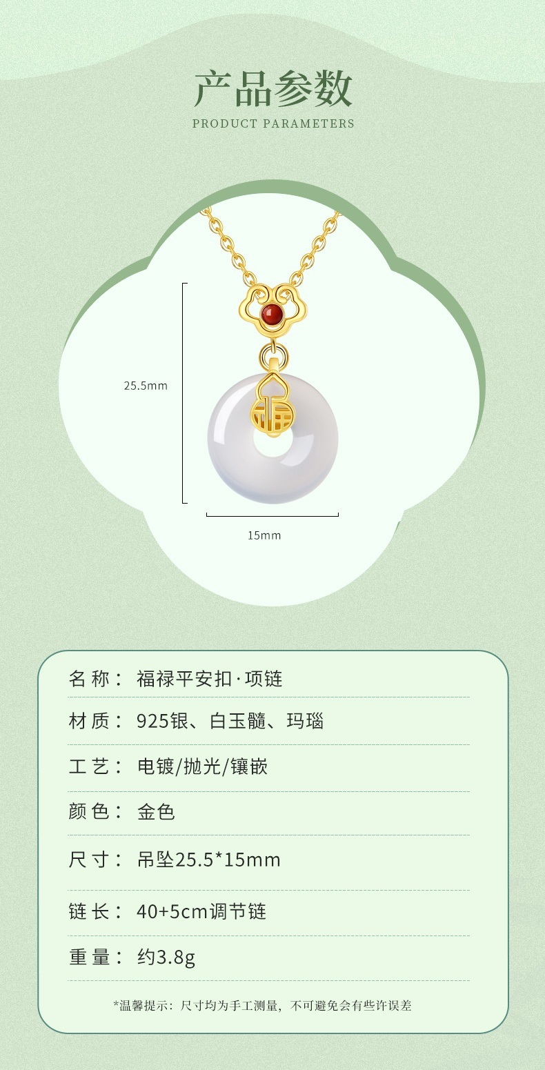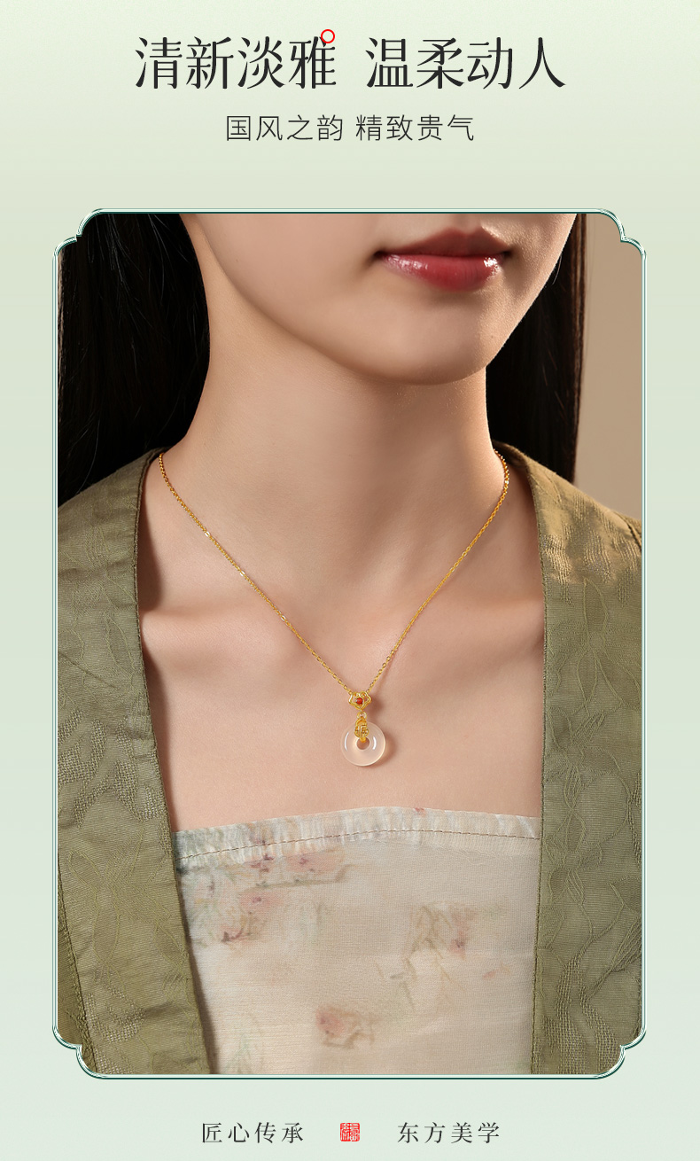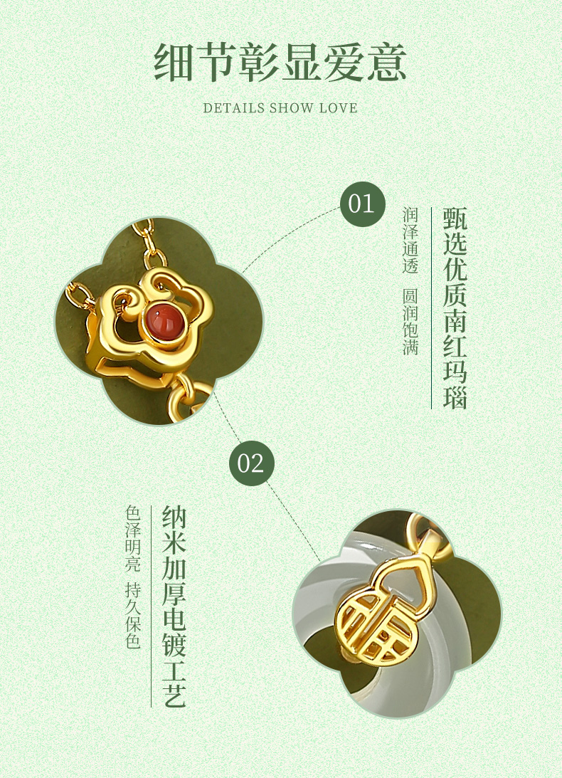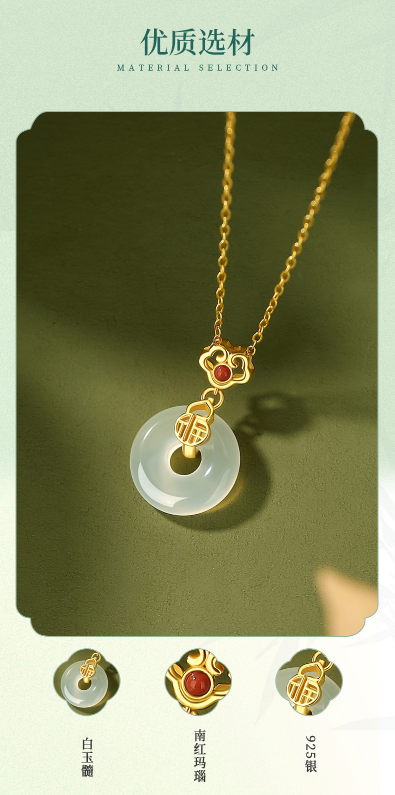 【福气平安】卡蒂罗/KADER 网红爆款 如意福牌玉髓项链 新中式小众锁骨链福禄平安扣吊坠 妈妈礼盒#好运 蛇年贺岁礼