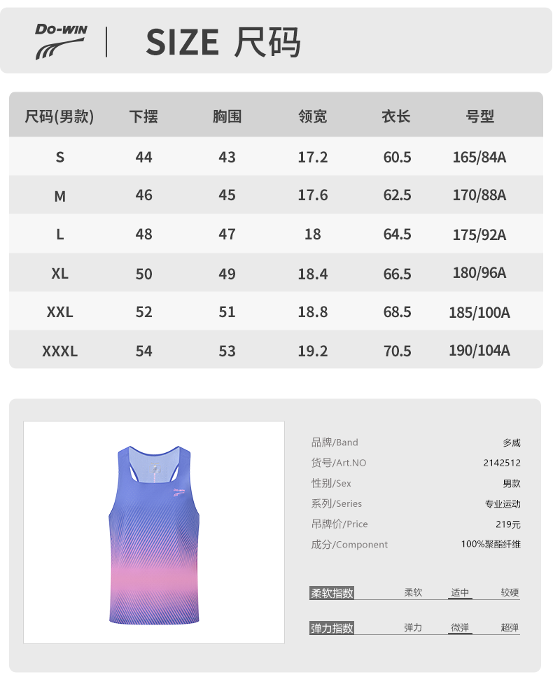 多威新款速干排汗渐变色男款跑步背心2142512
