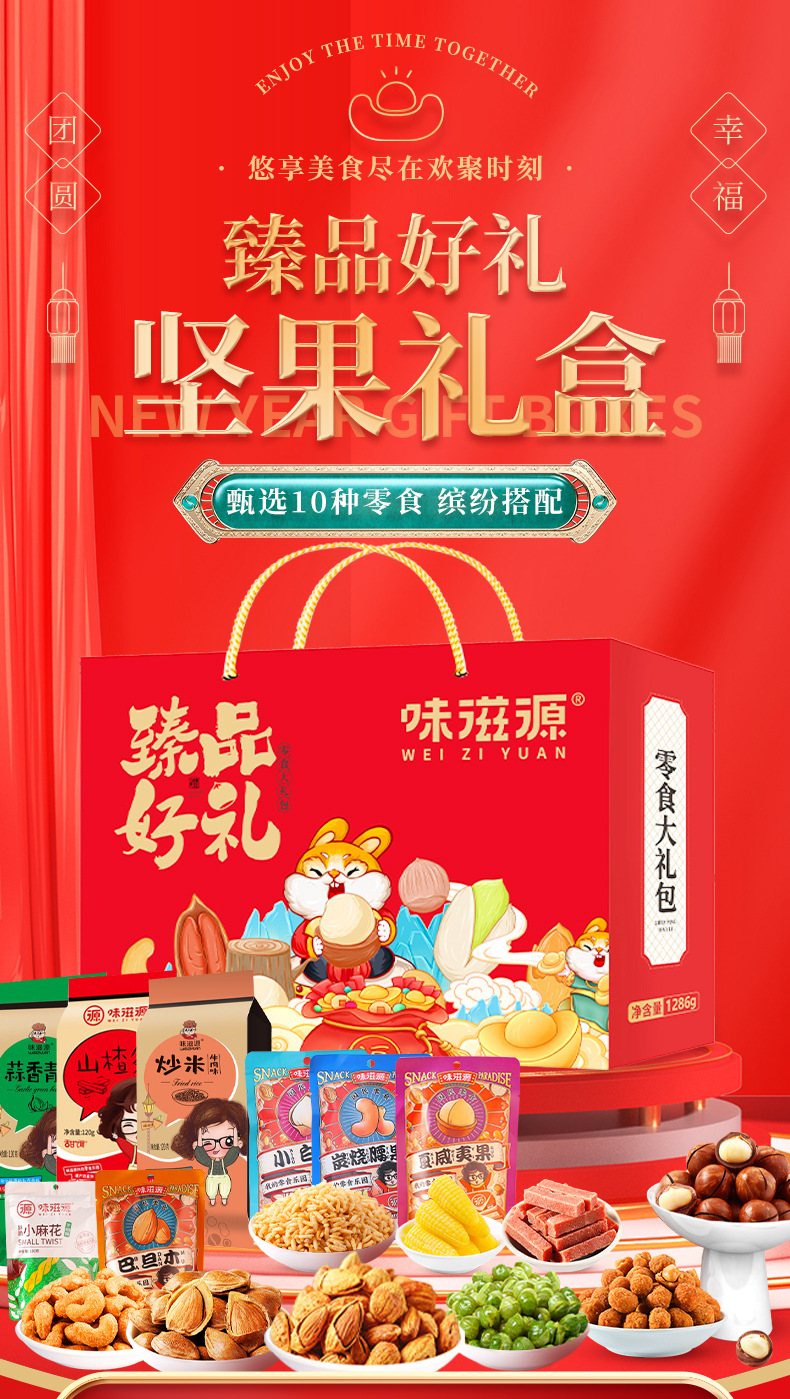 【觅食严选!年货坚果礼盒套装】夏威夷果 巴旦木 腰果 小白杏 小麻花 炒米 山楂条 蒜香青豆 多味花生 玉米软糖 混合坚果臻品好礼春节年货福利