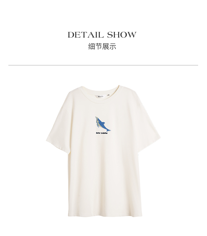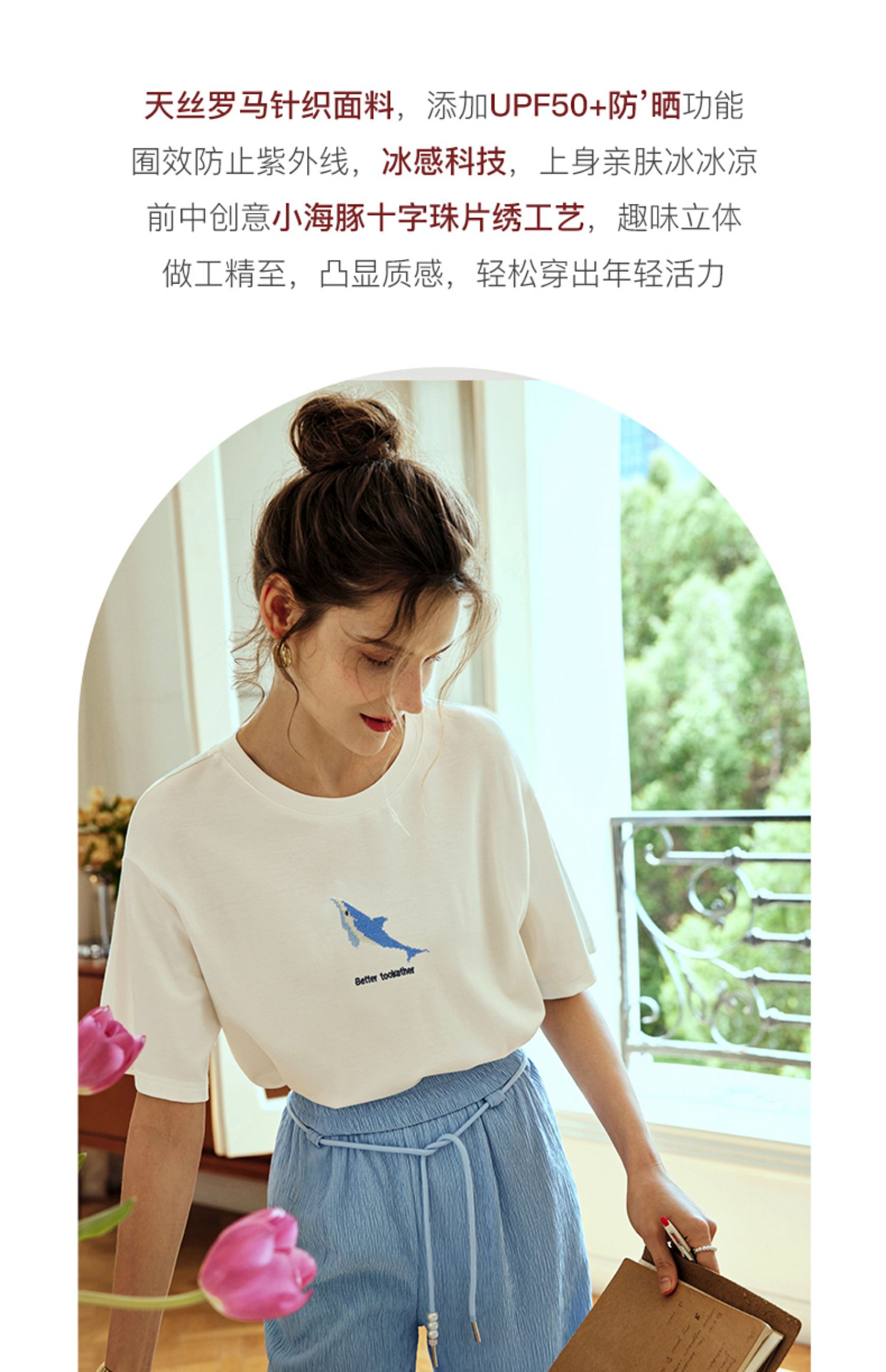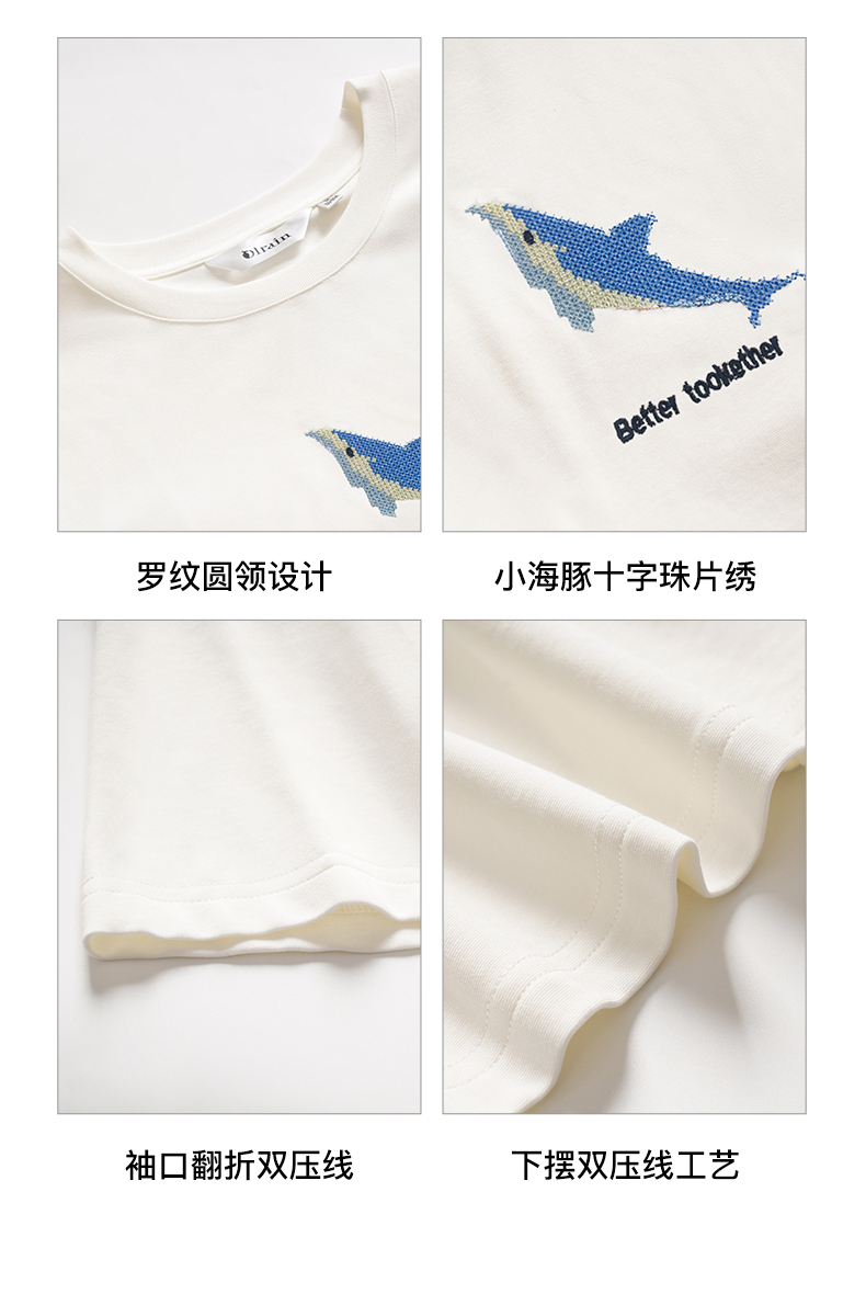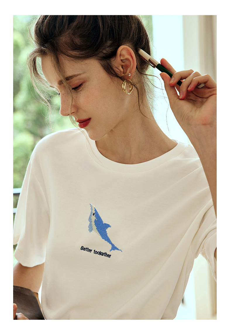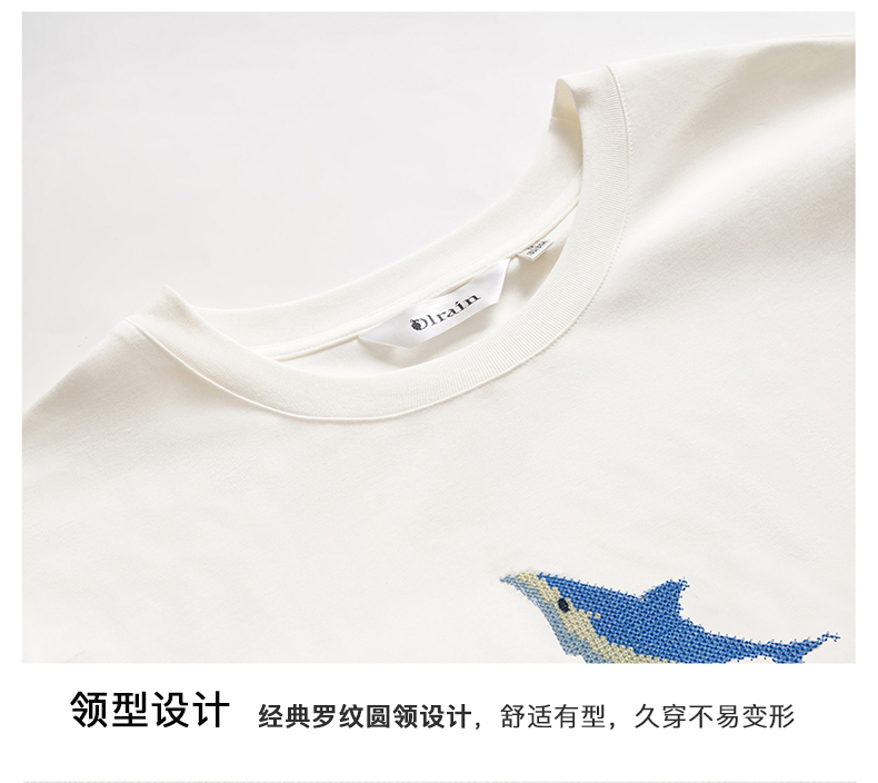 OLrain欧芮儿白色T恤女早春2024新款简约百搭小海豚刺绣短袖上衣
