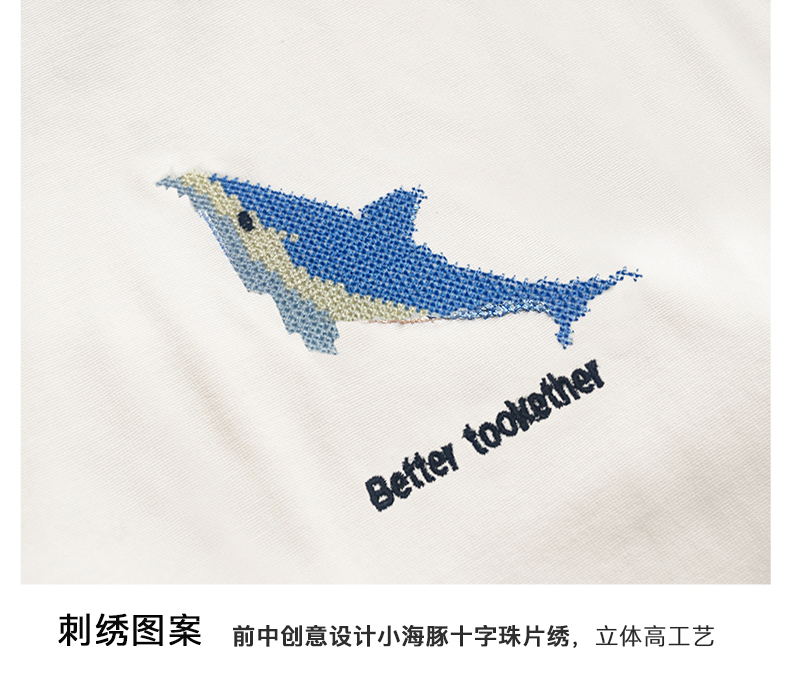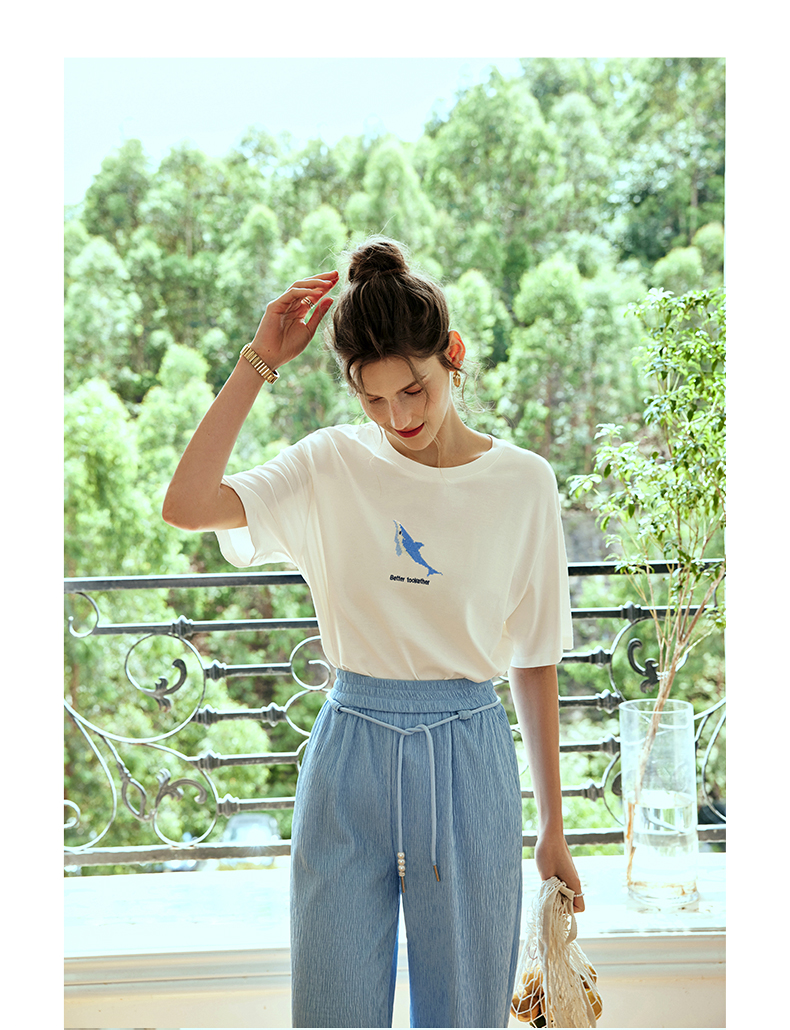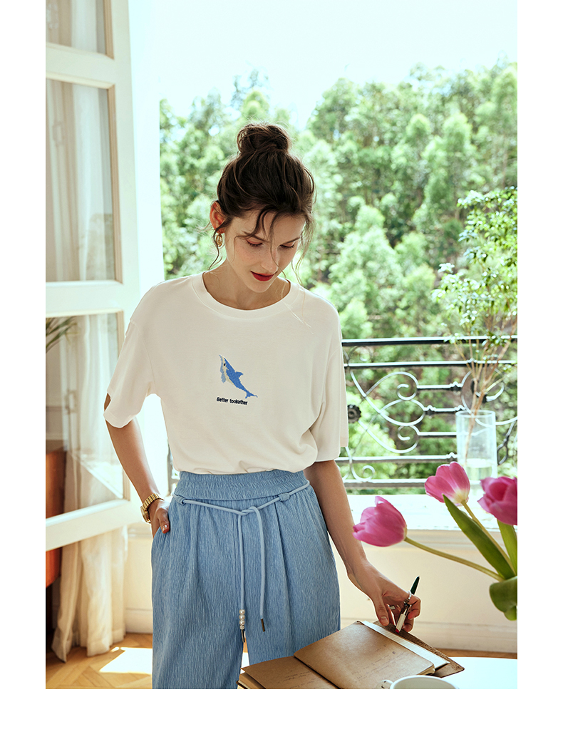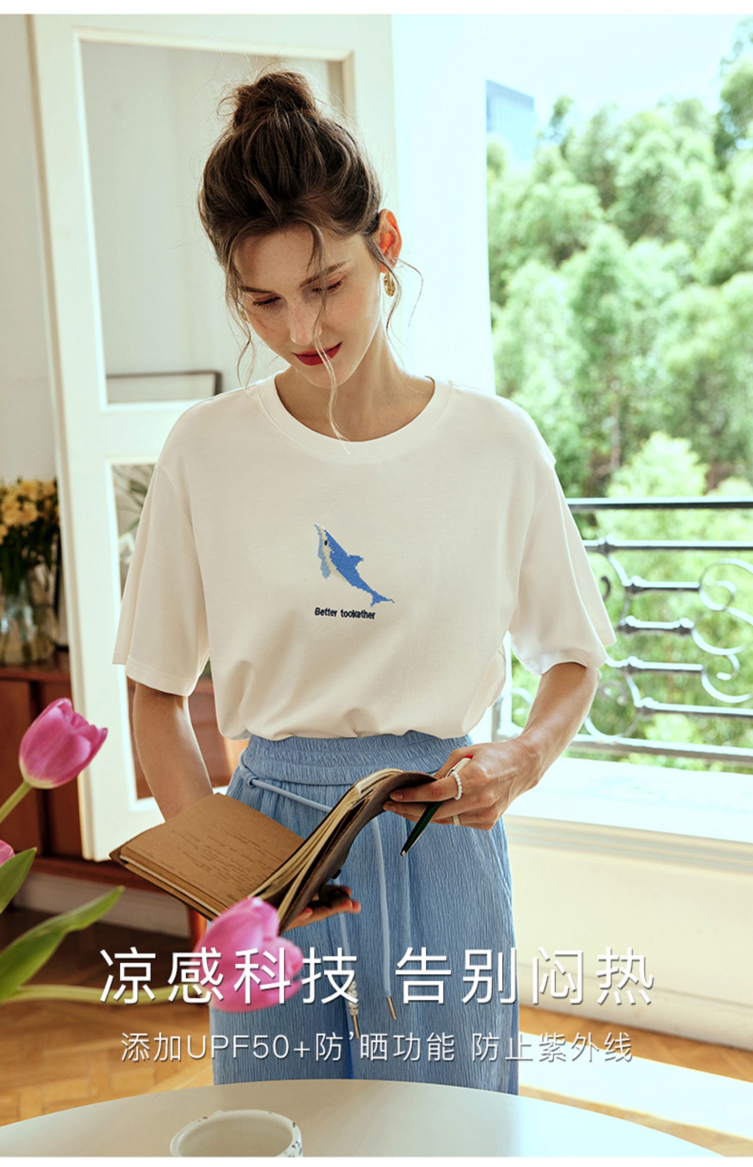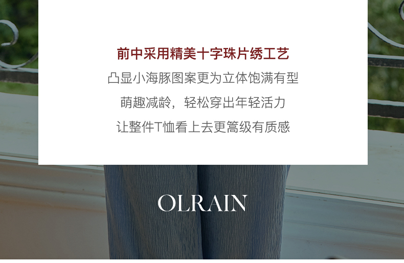 OLrain欧芮儿白色T恤女早春2024新款简约百搭小海豚刺绣短袖上衣