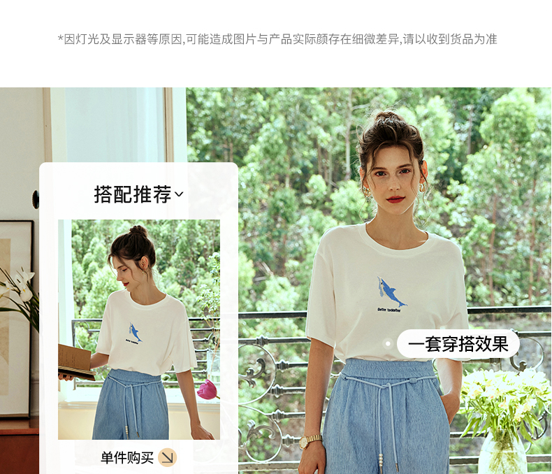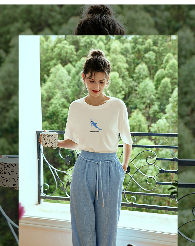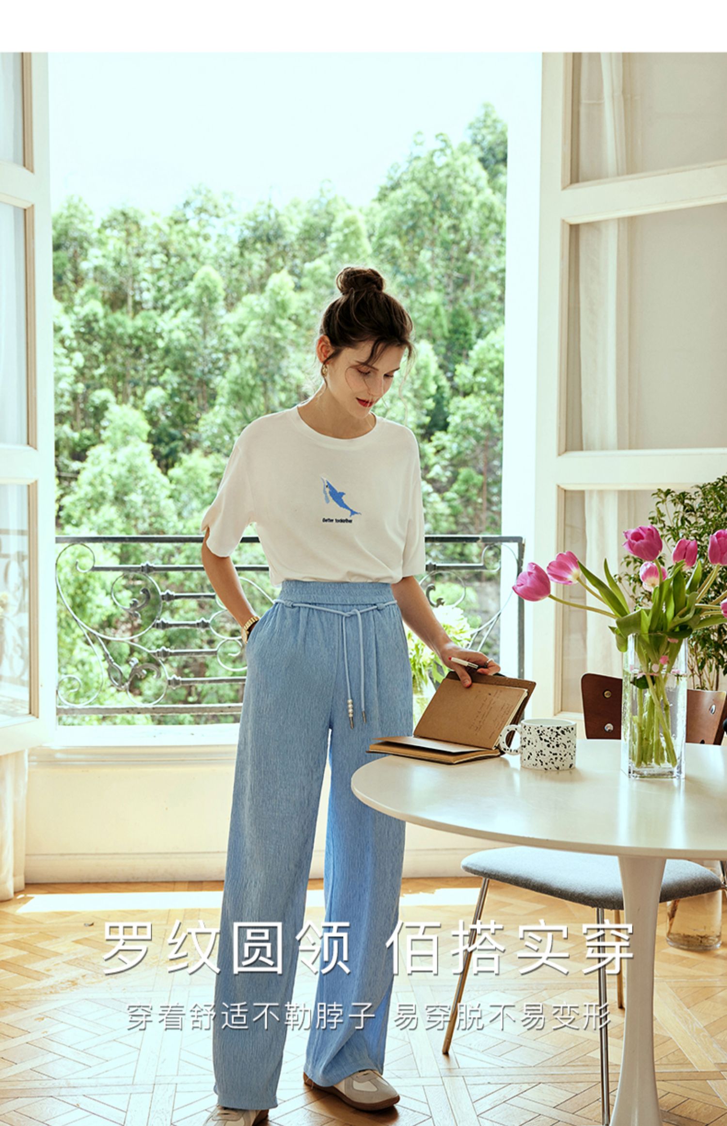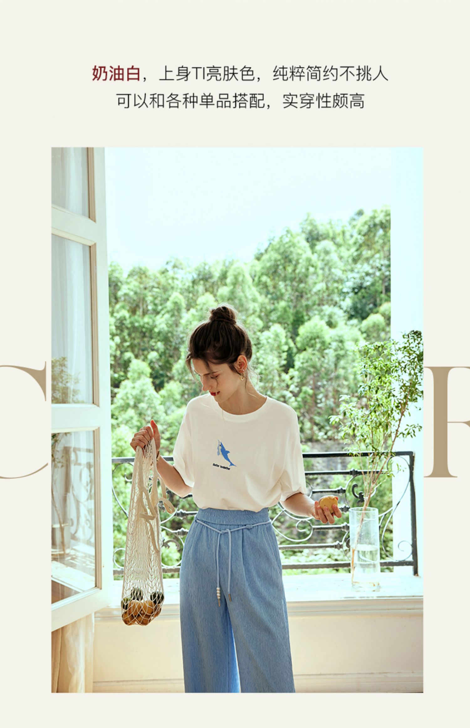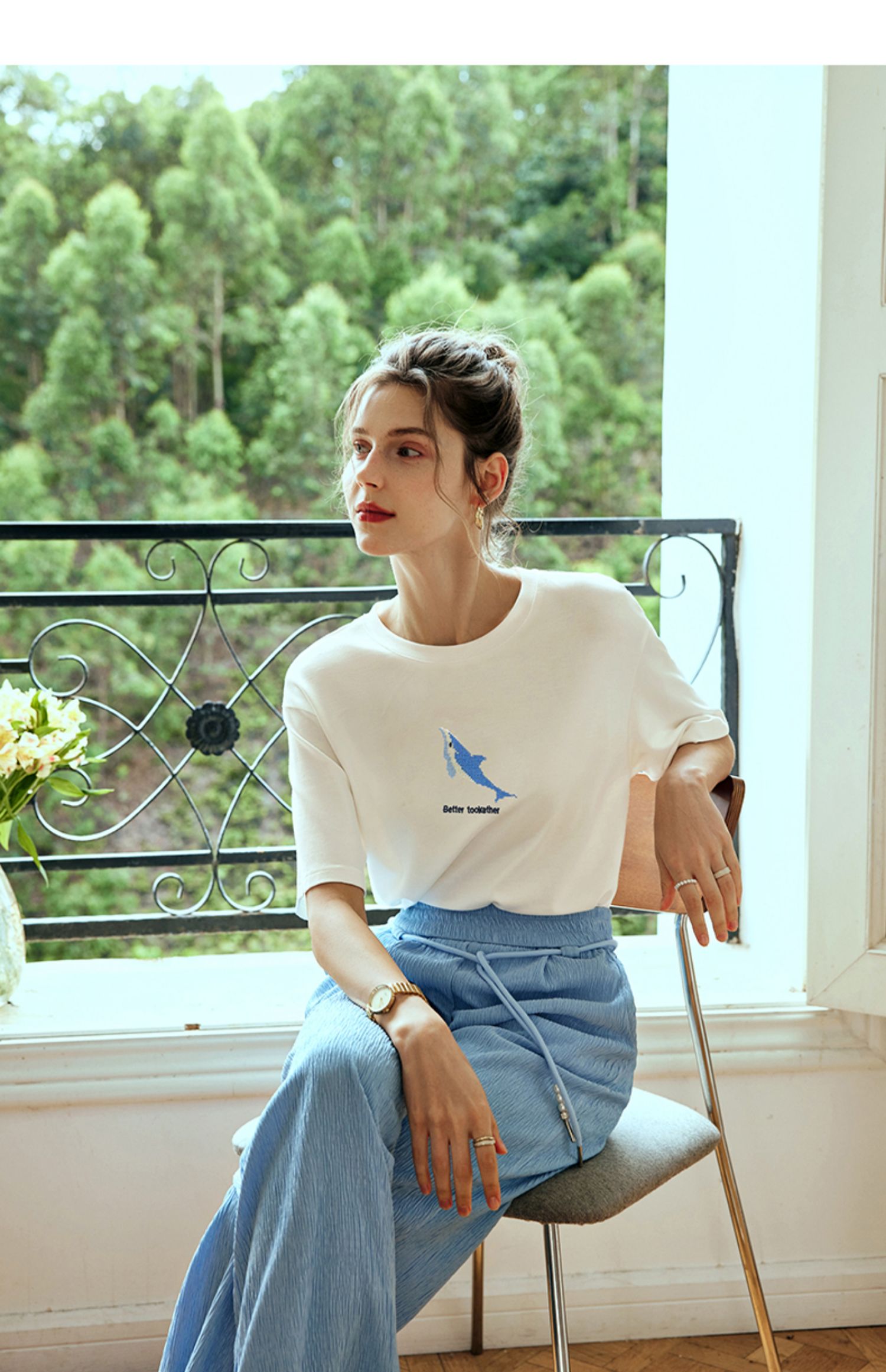 OLrain欧芮儿白色T恤女早春2024新款简约百搭小海豚刺绣短袖上衣