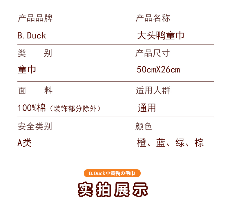 B.Duck小黄鸭大头鸭儿童毛巾50*26cm 592