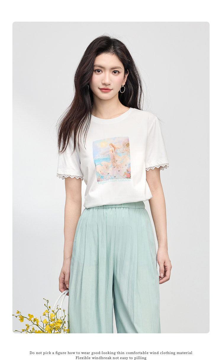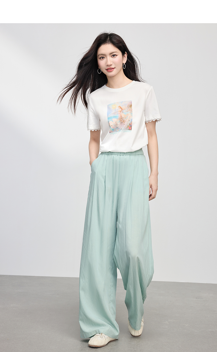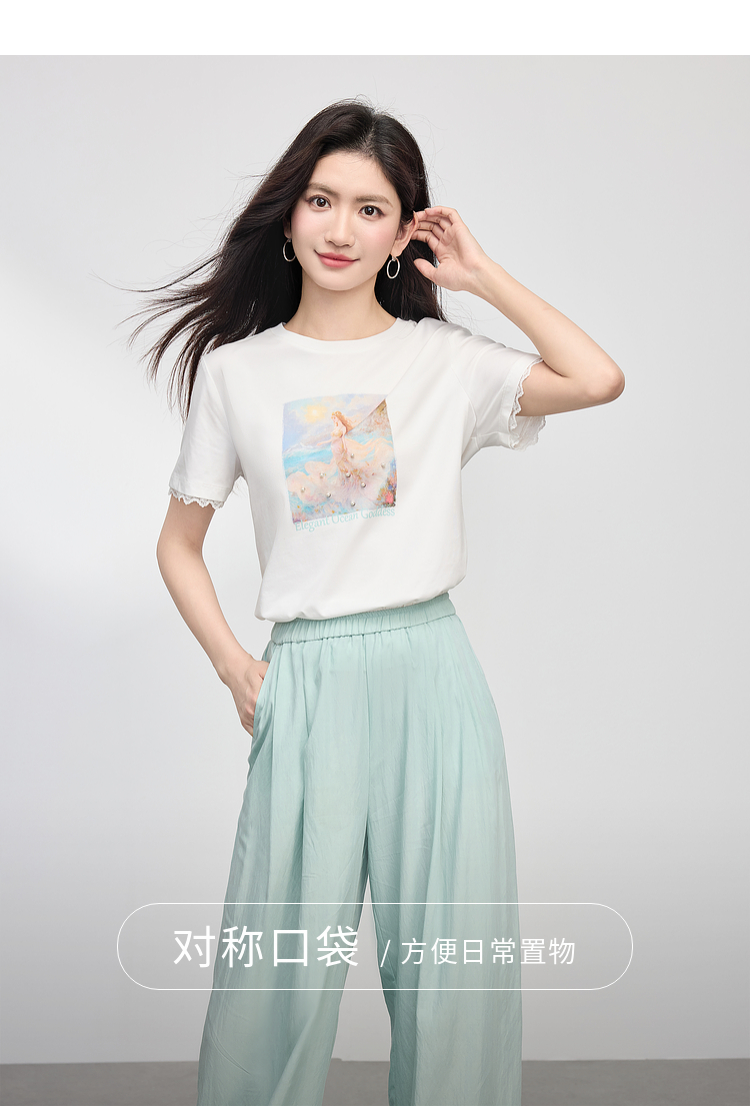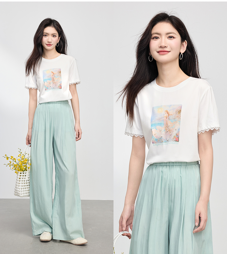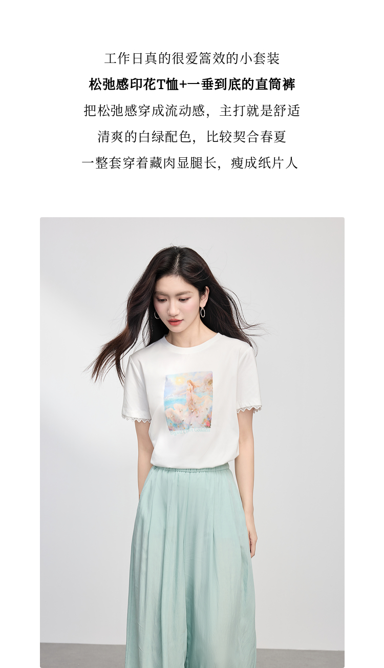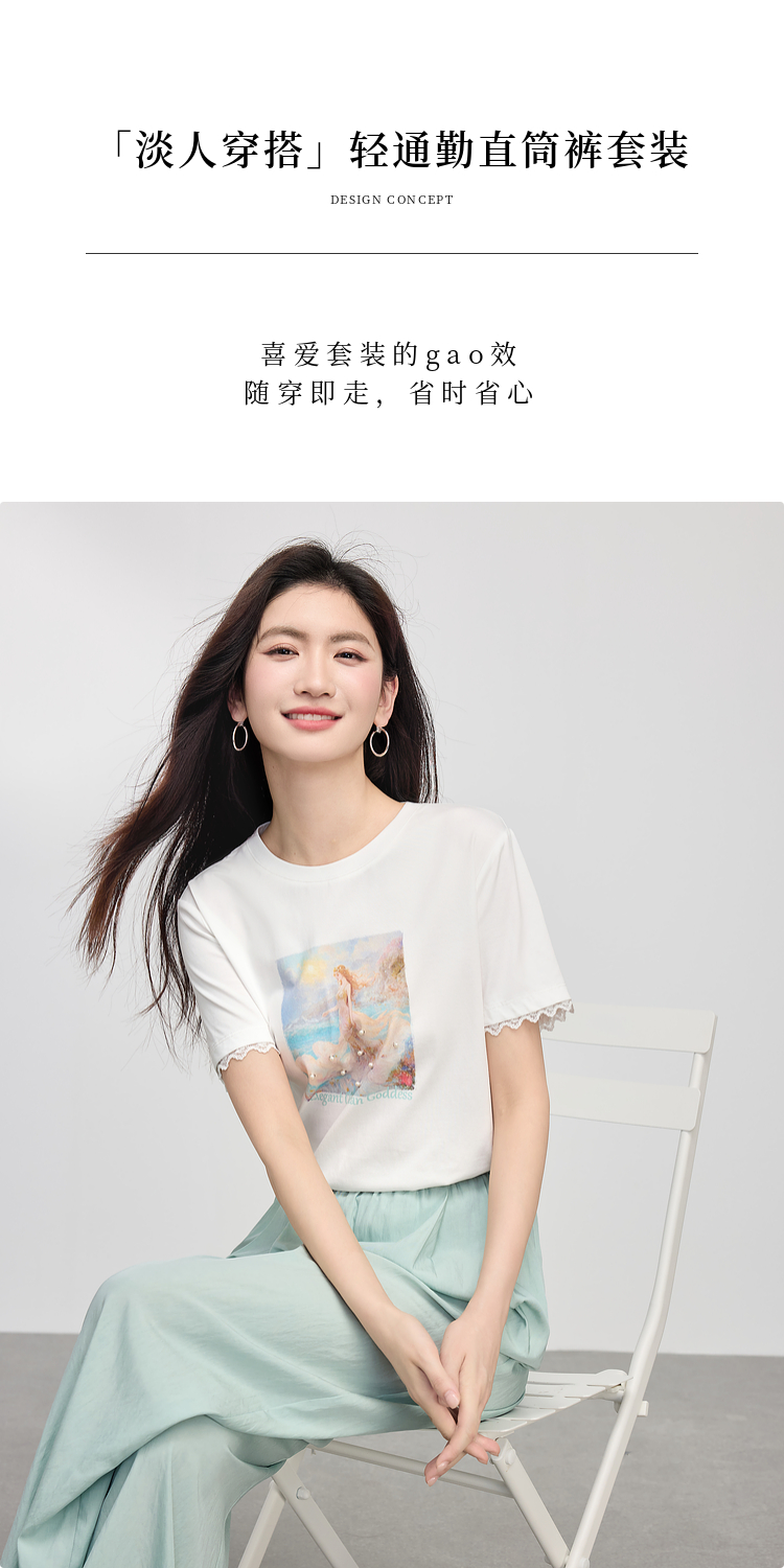 【专属特价】熙世界淡人穿搭夏日通勤套装女新款休闲印花T恤薄款阔腿裤两件套
