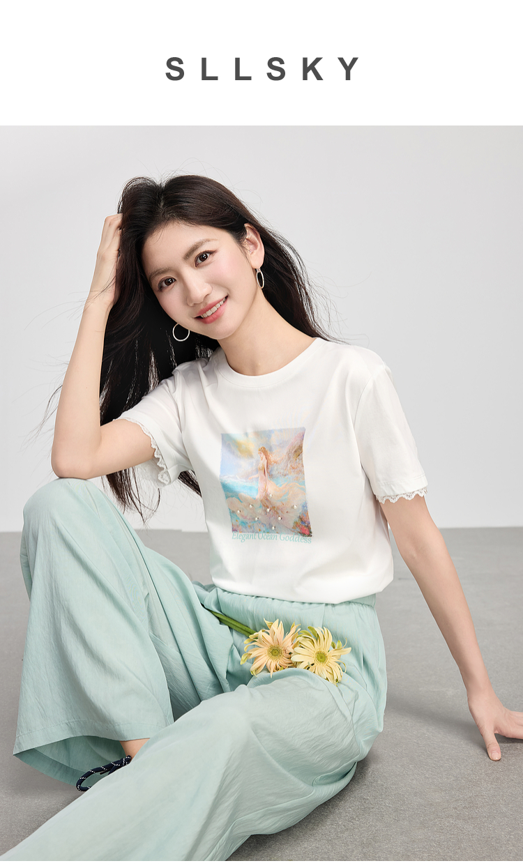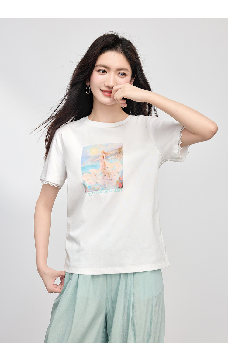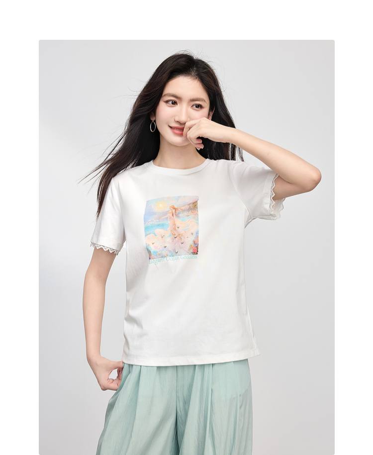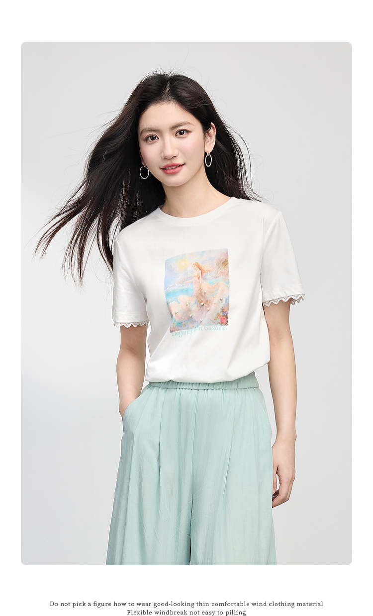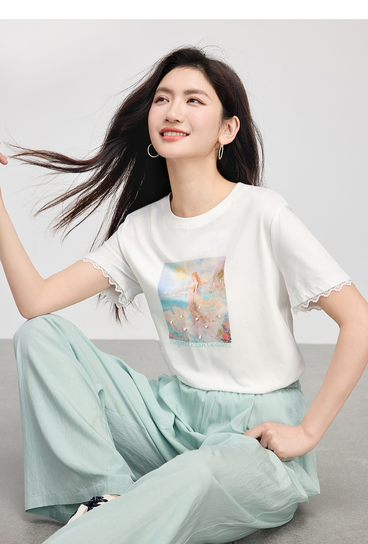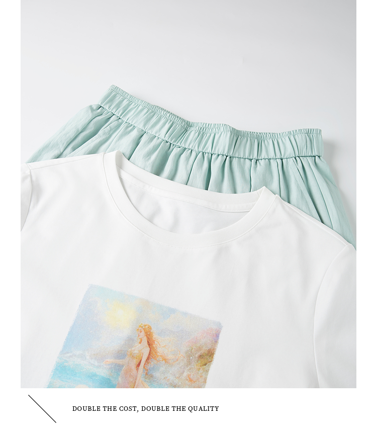 【专属特价】熙世界淡人穿搭夏日通勤套装女新款休闲印花T恤薄款阔腿裤两件套