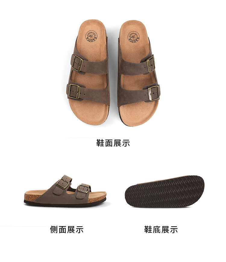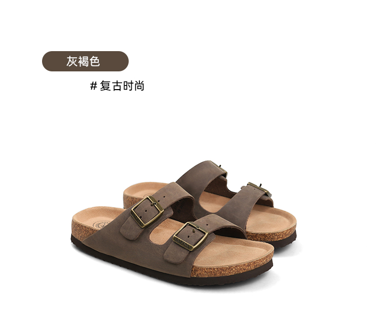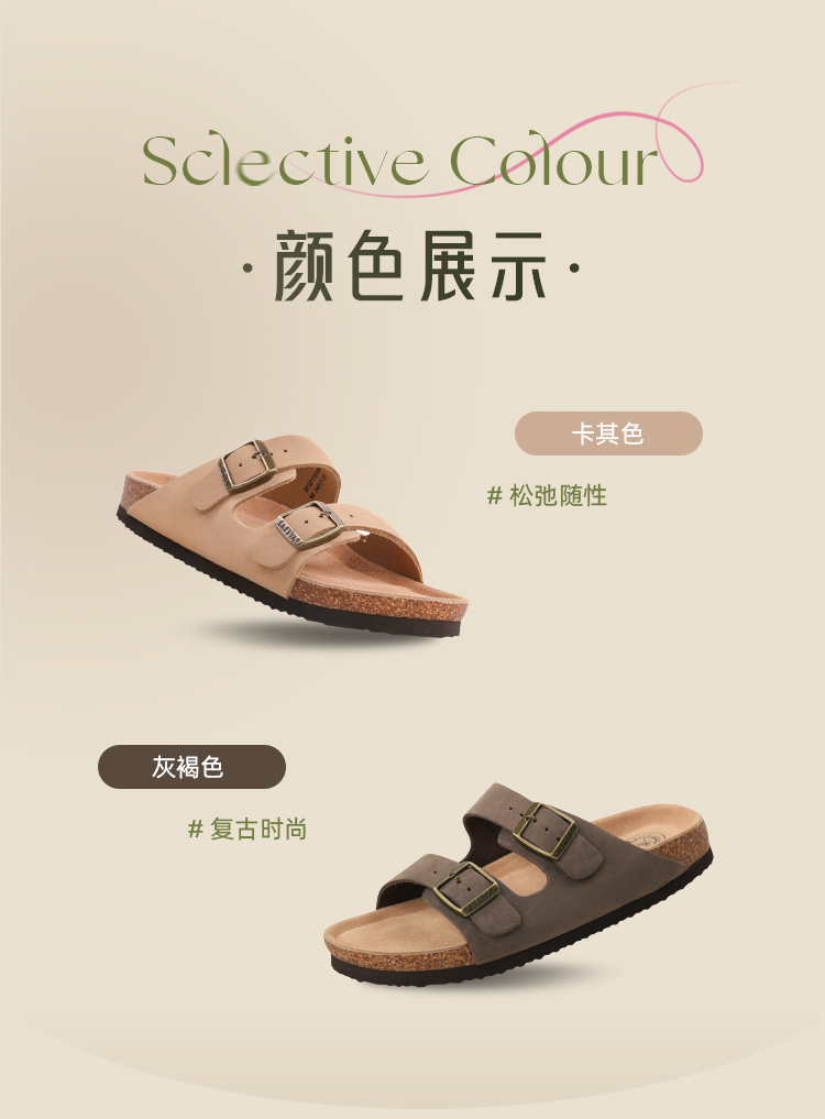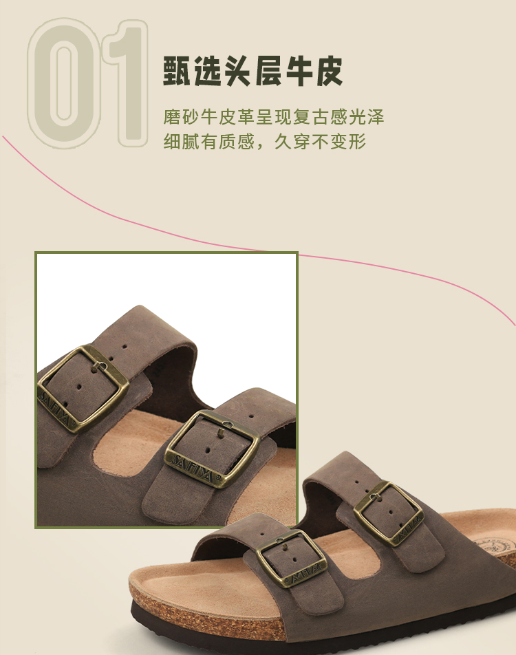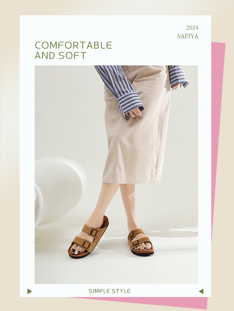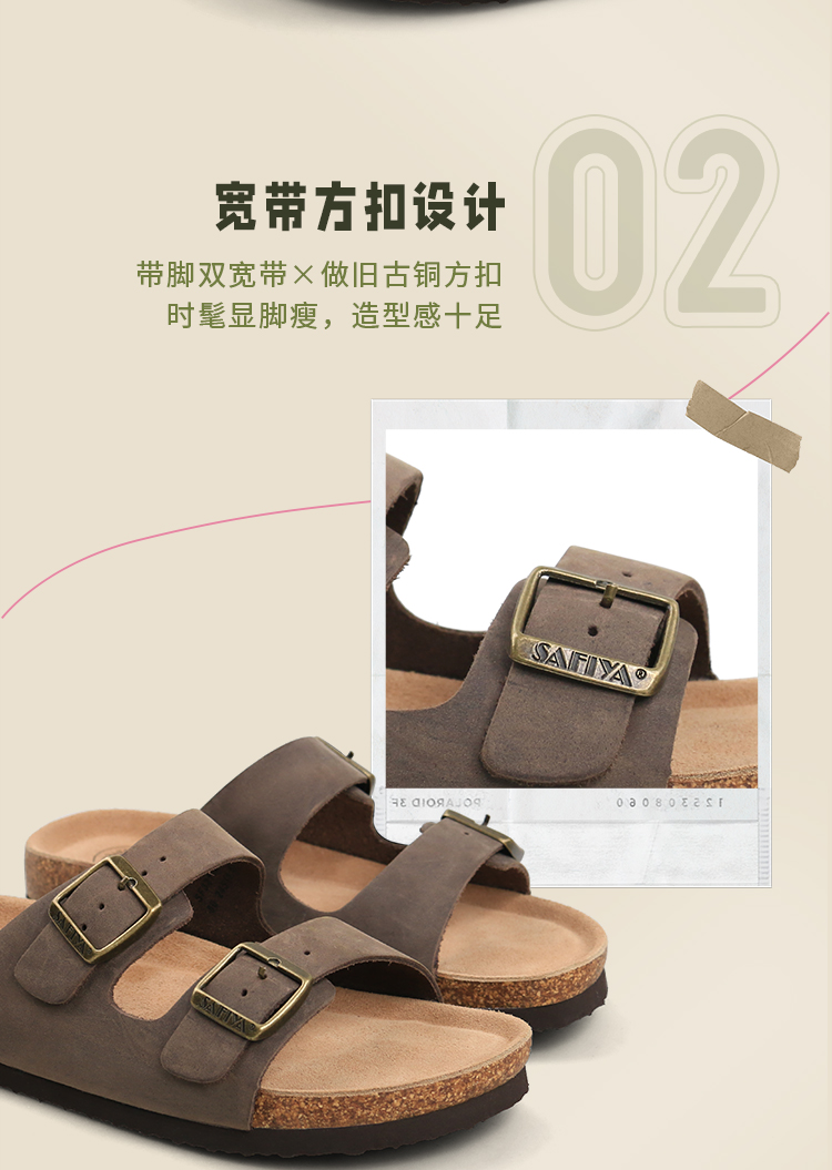 Safiya/索菲娅2024夏季皮带扣休闲外穿勃肯鞋软木沙滩拖鞋 SF42110345