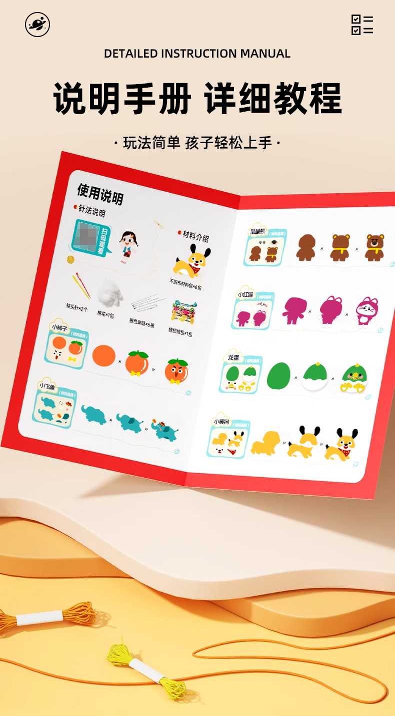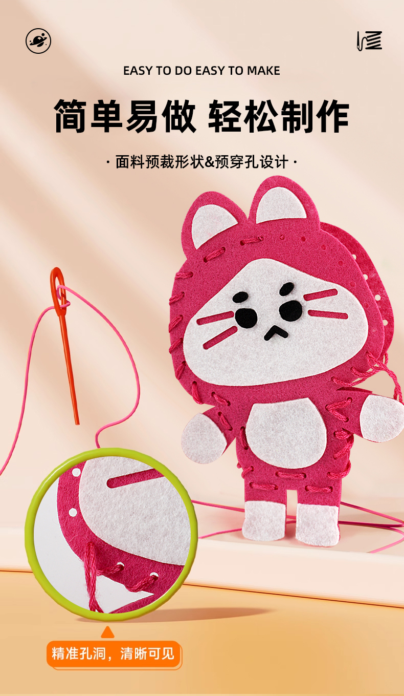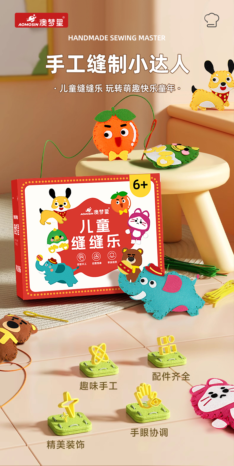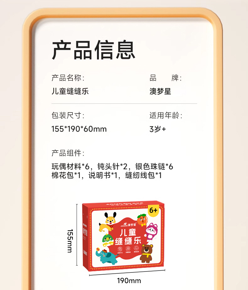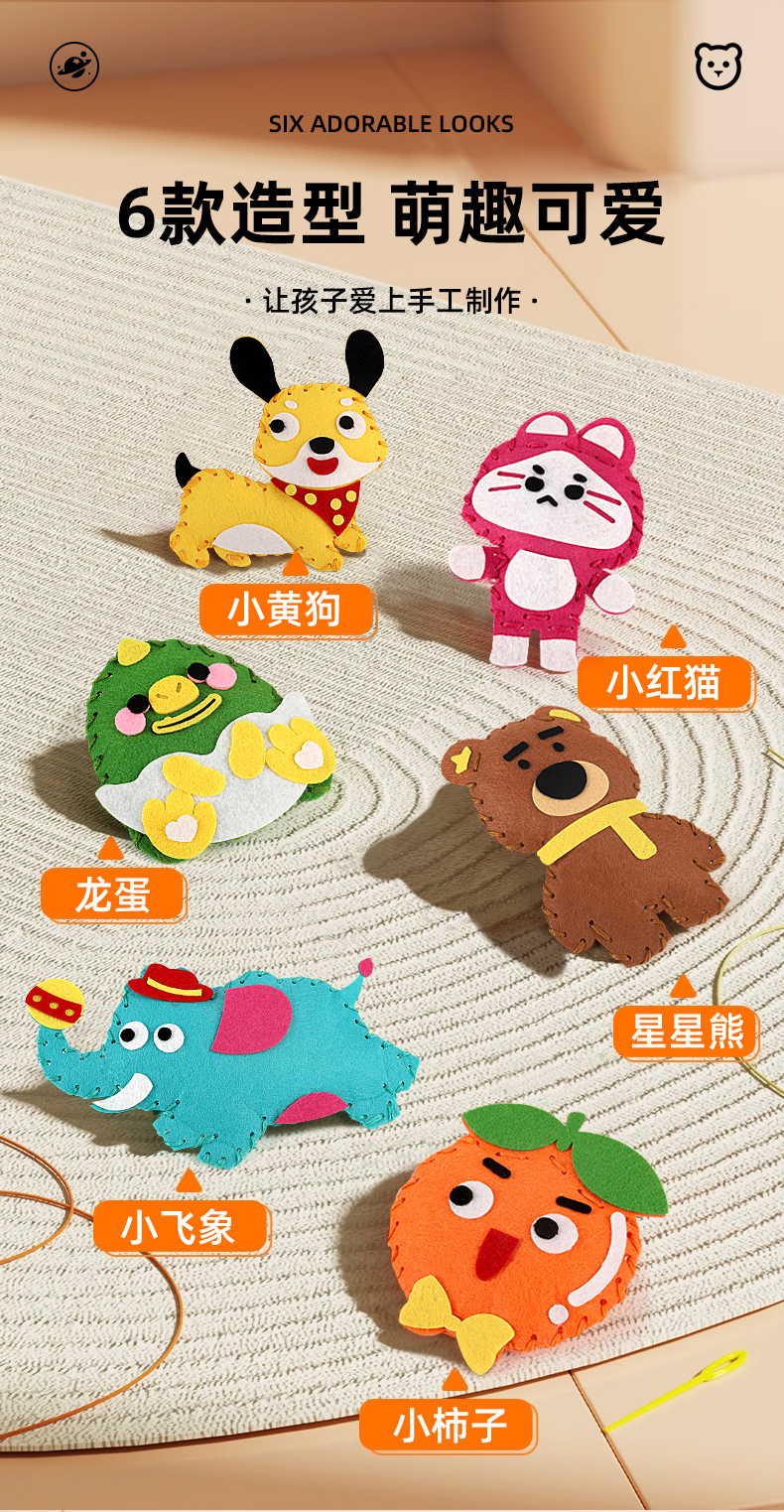 【轻松制作可爱玩偶】儿童DIY手工缝缝乐 6款独立材料包 一步到位 手工缝制小达人 彩盒装 可送礼