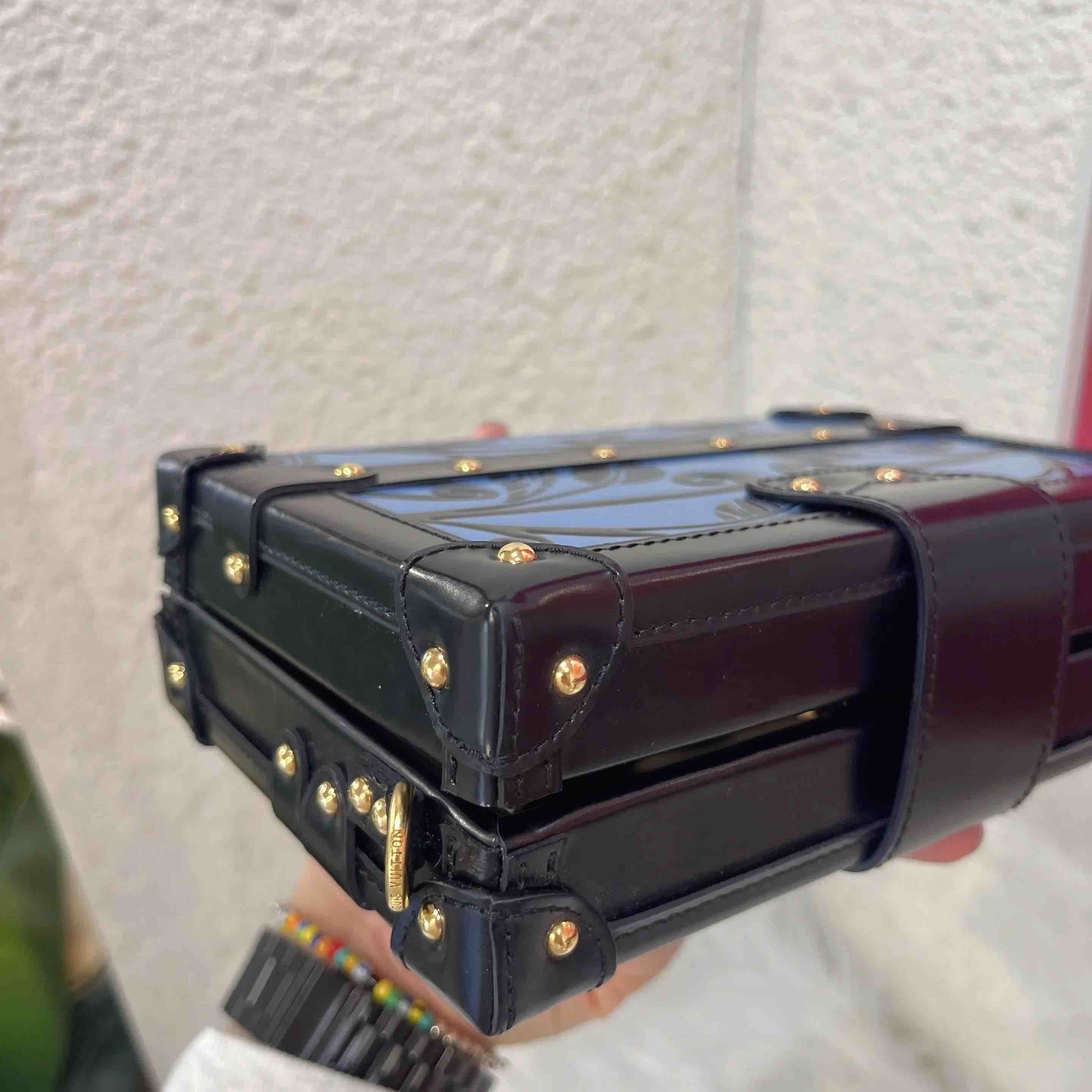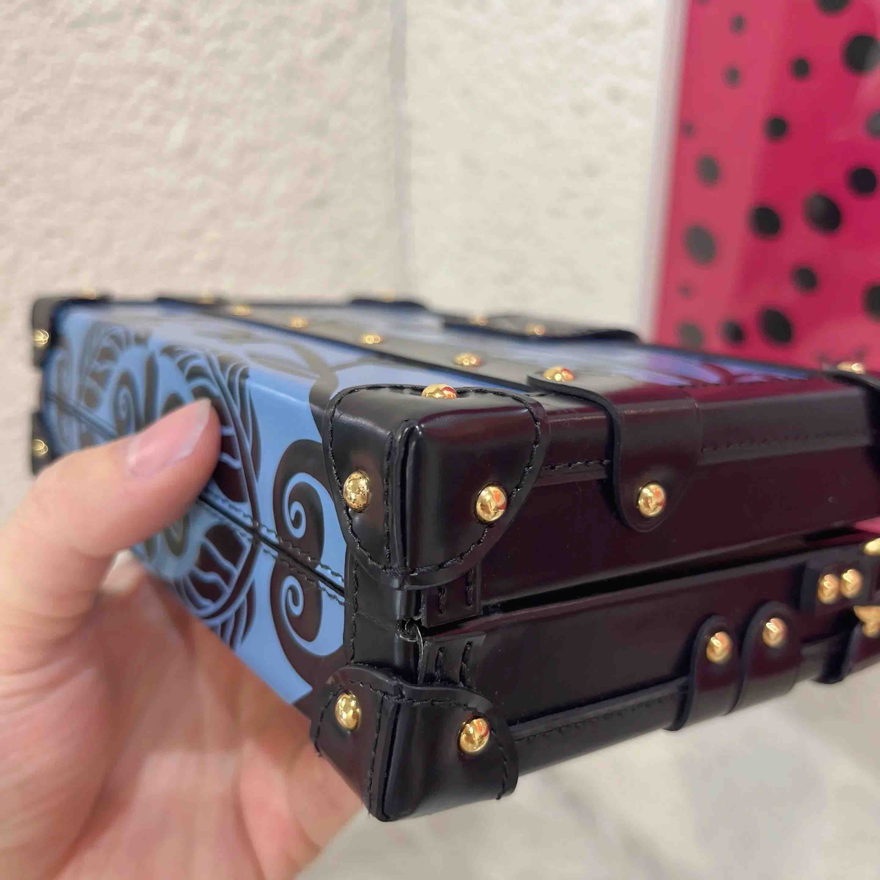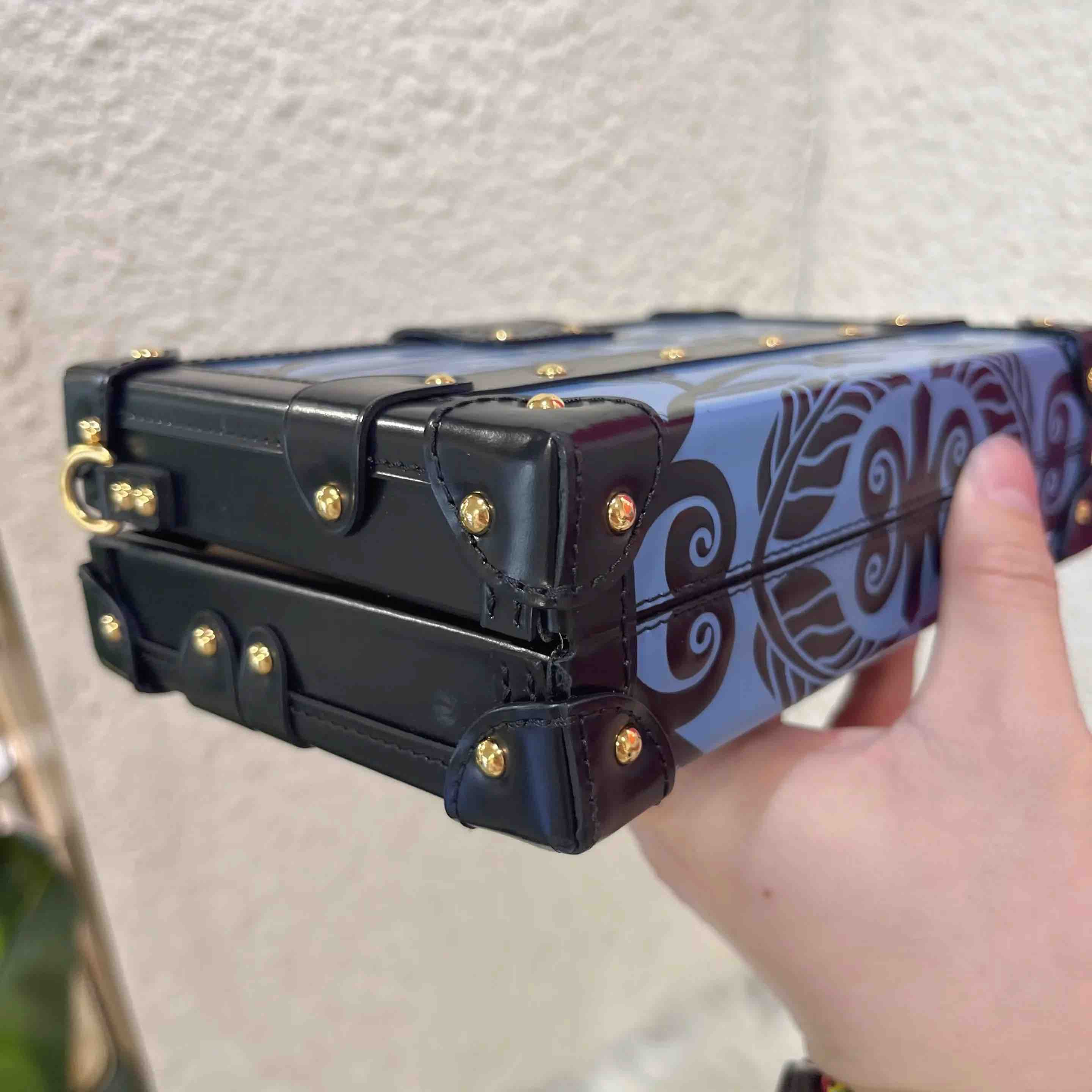 【商品详情】正品二手 Lv petite malle 牛皮 蓝拼黑 花卉印花 金扣 硬盒子🐾 95新 19*12 配件:票 肩带 防尘袋。边角正常使用感。LV限量款蓝色花卉盒子包 优雅复古