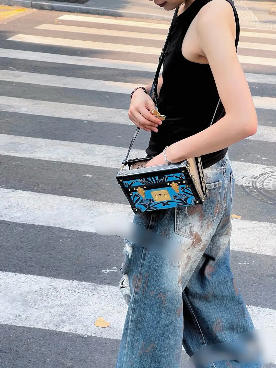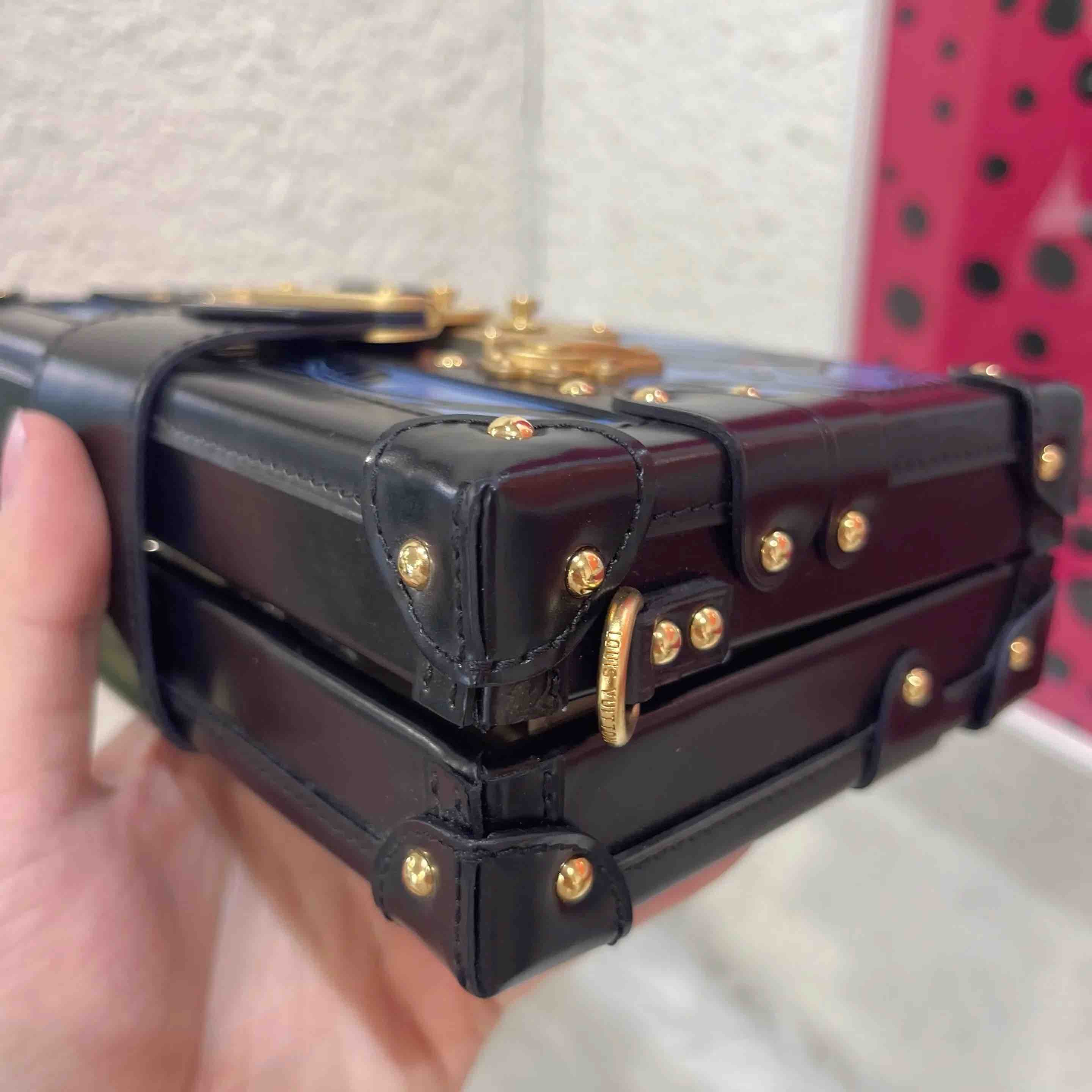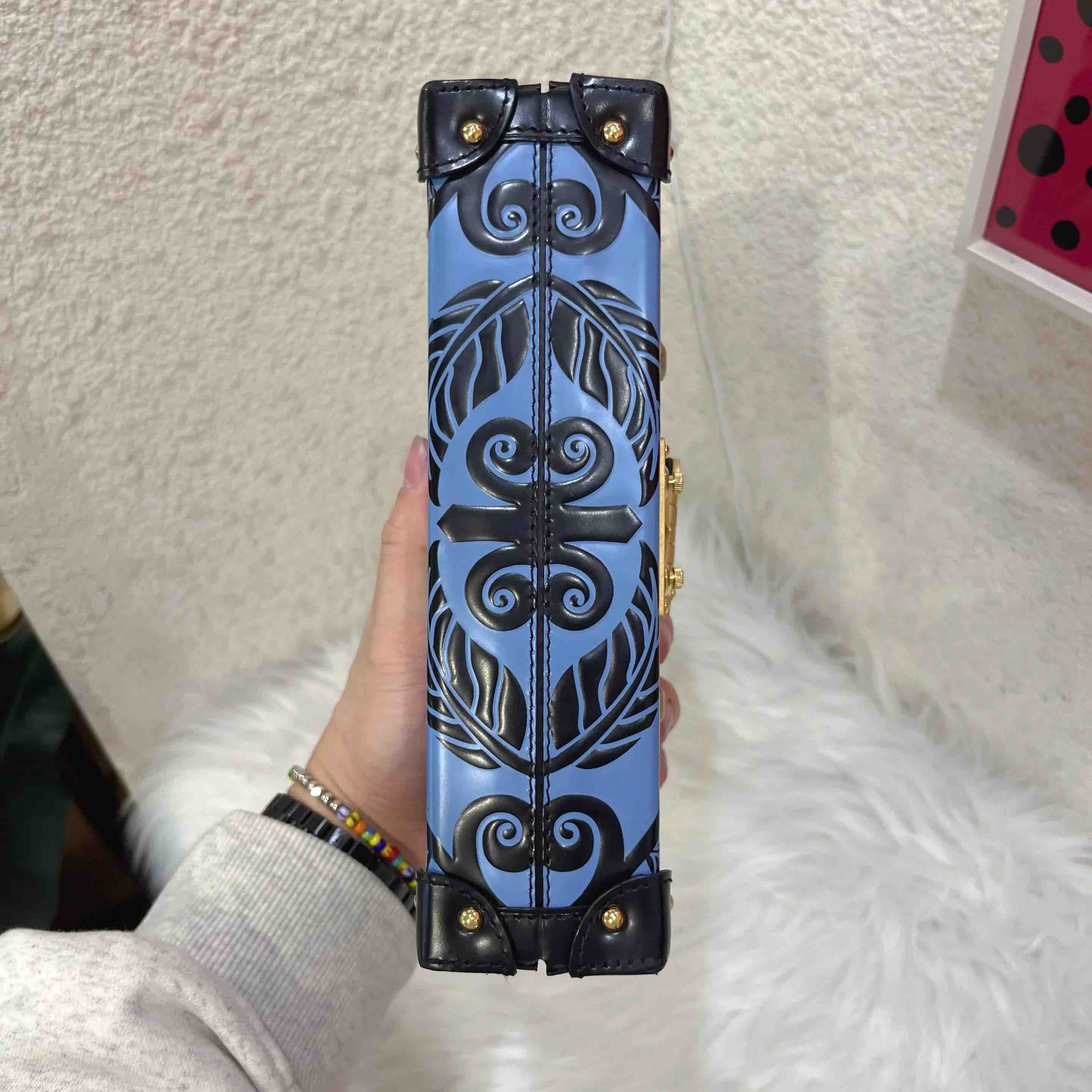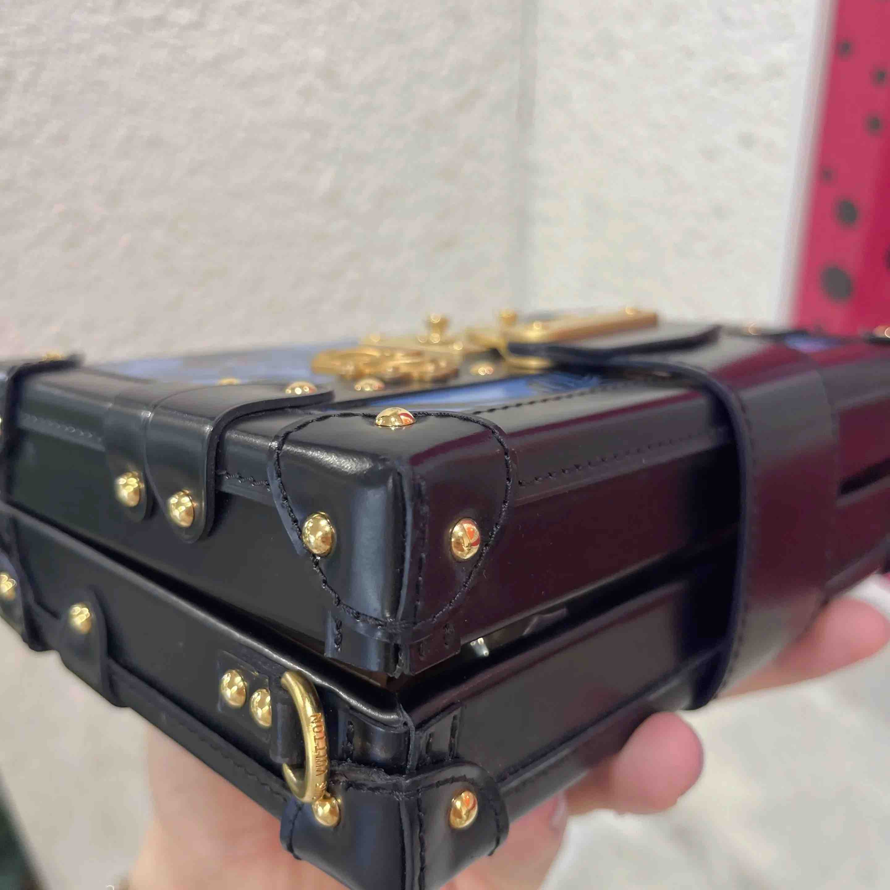【商品详情】正品二手 Lv petite malle 牛皮 蓝拼黑 花卉印花 金扣 硬盒子🐾 95新 19*12 配件:票 肩带 防尘袋。边角正常使用感。LV限量款蓝色花卉盒子包 优雅复古