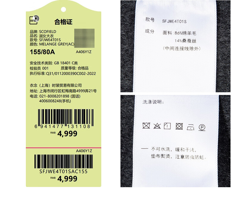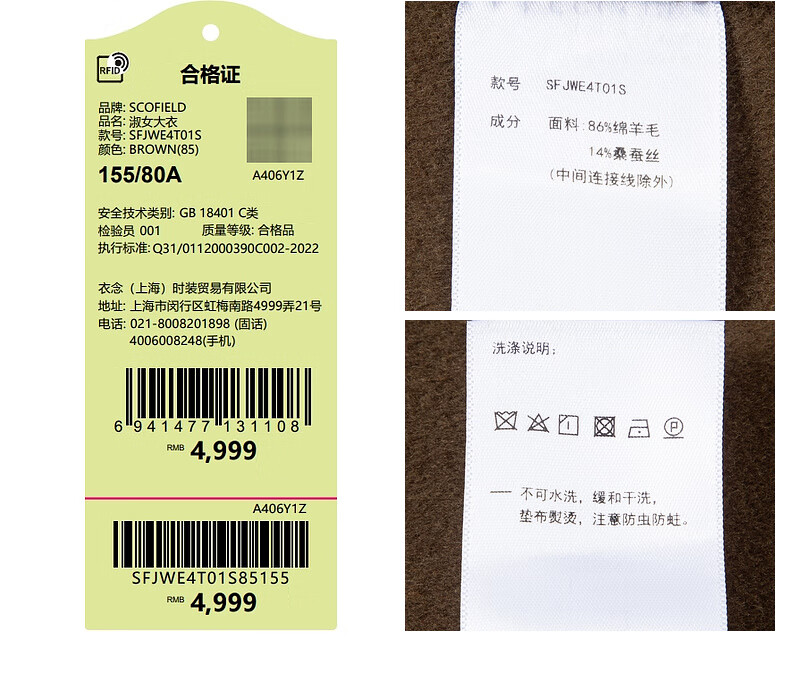 SCOFIELD【羊毛真丝】翻领双面呢毛呢大衣外套2024秋冬新款SFJWE4T01S