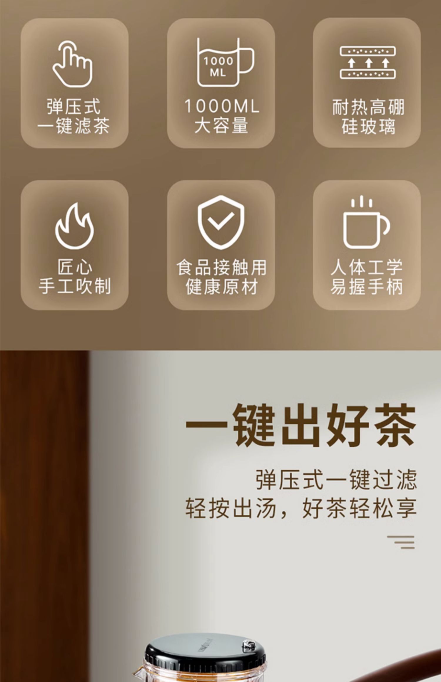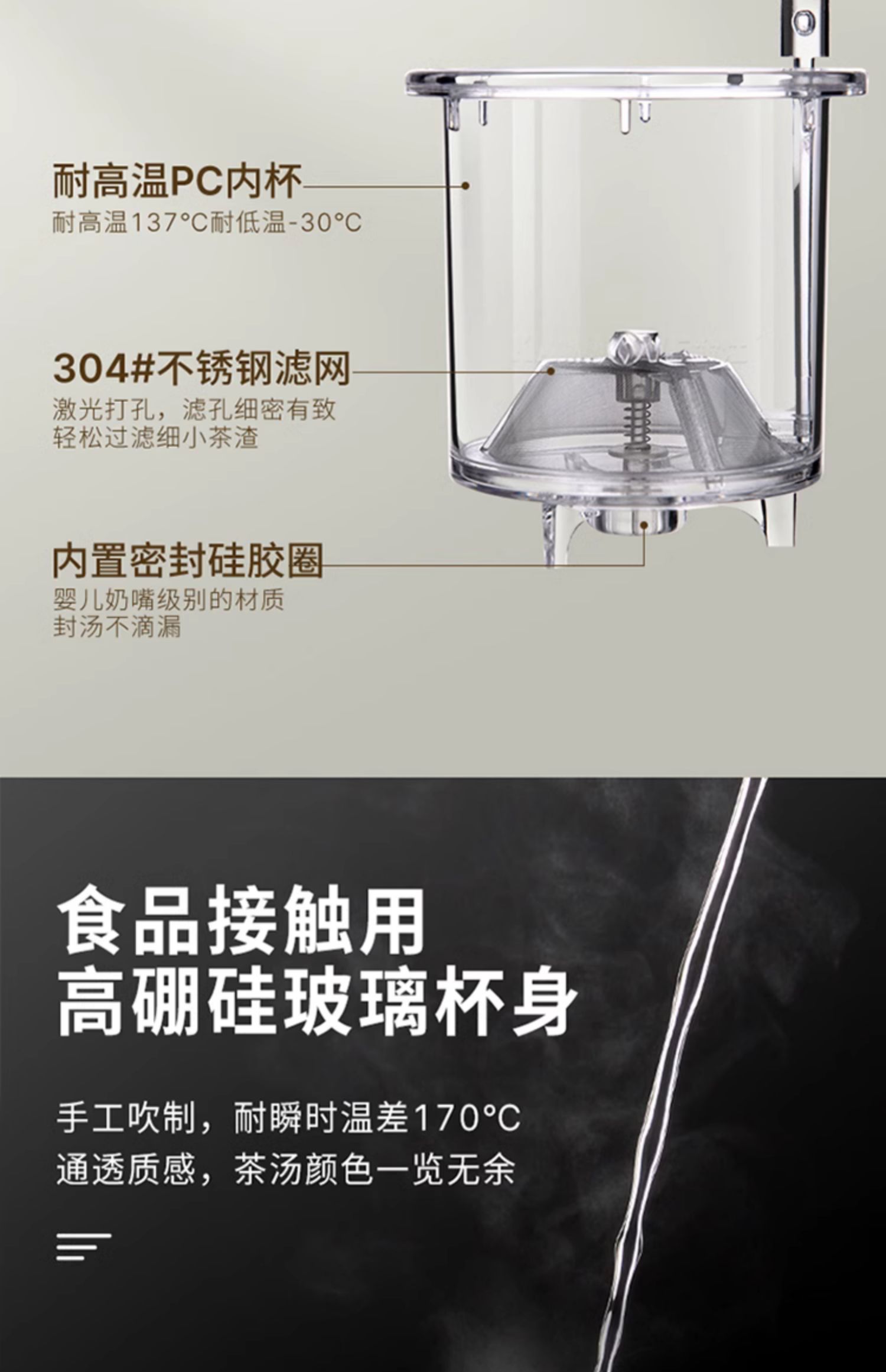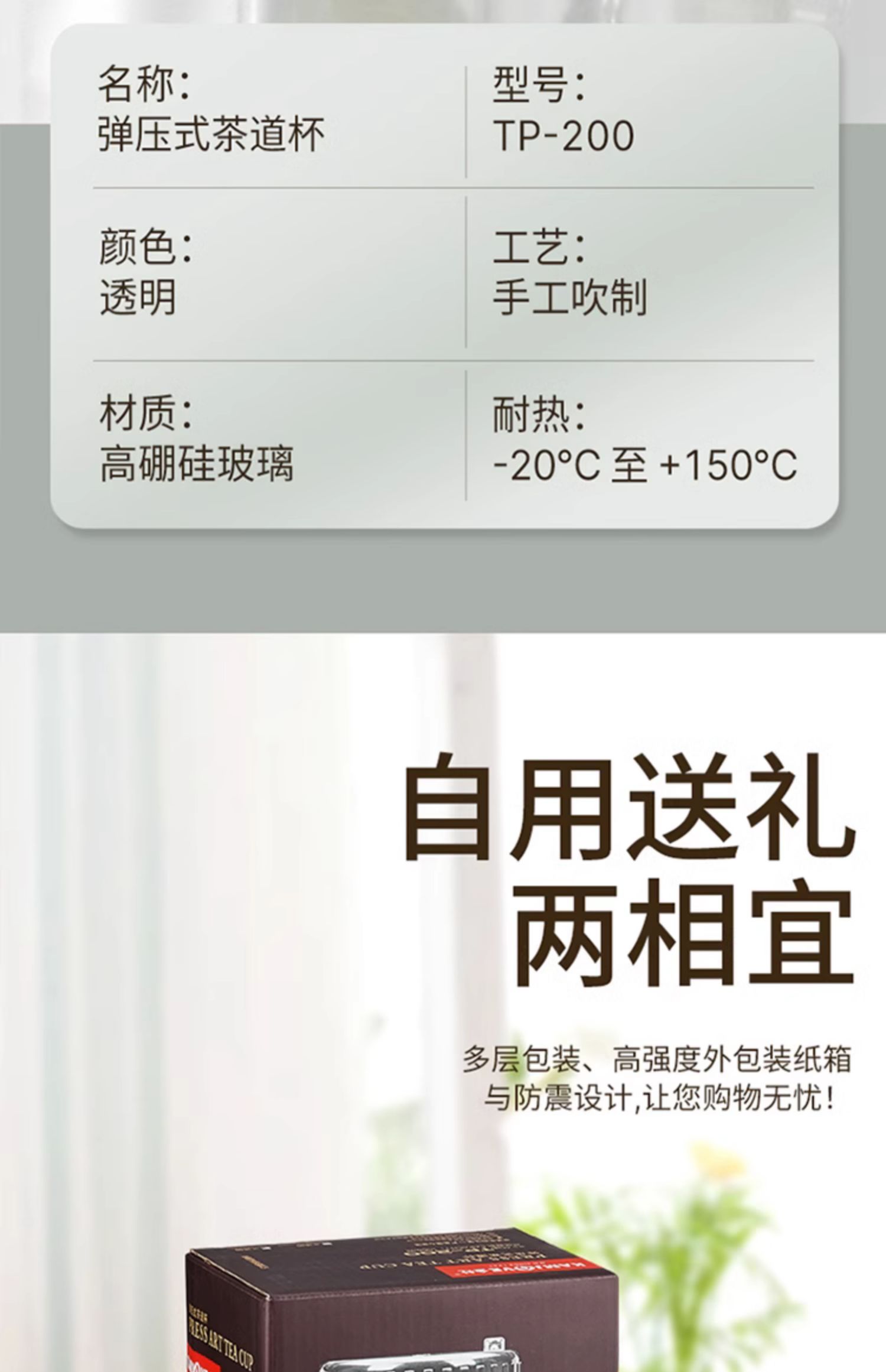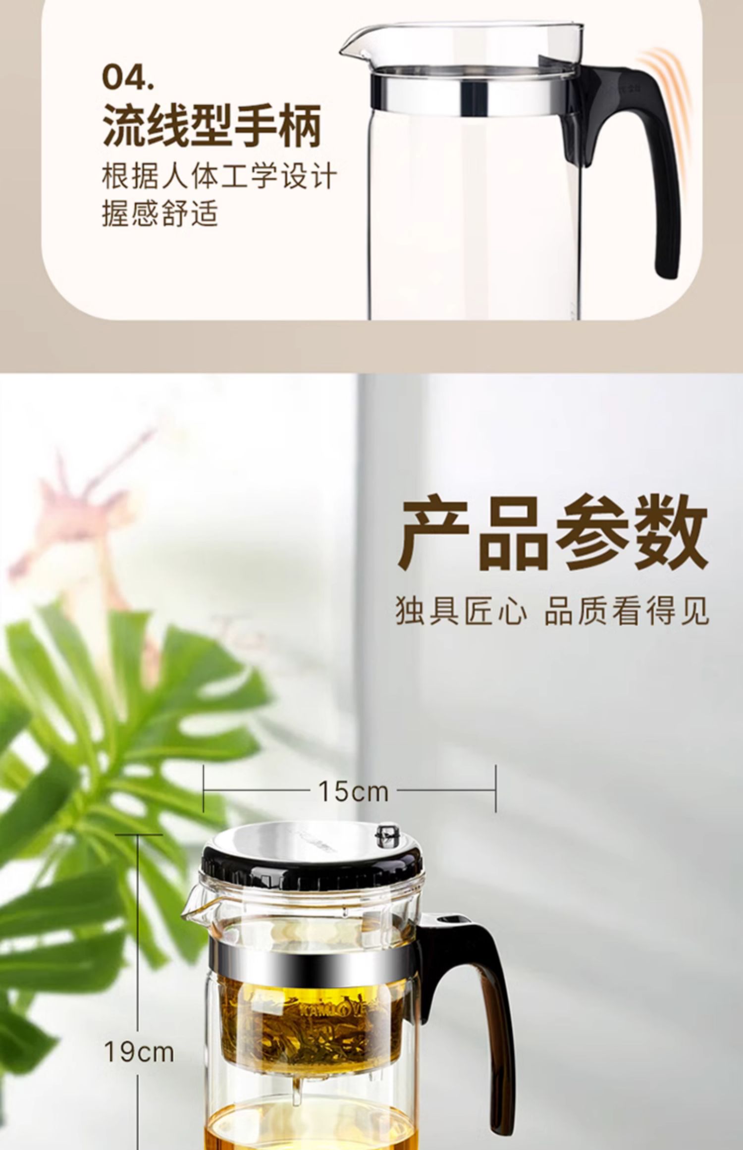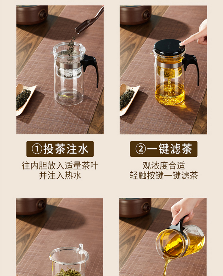 金灶杯TP-200飘逸大容量耐热玻璃茶壶过滤泡茶壶冲茶器
